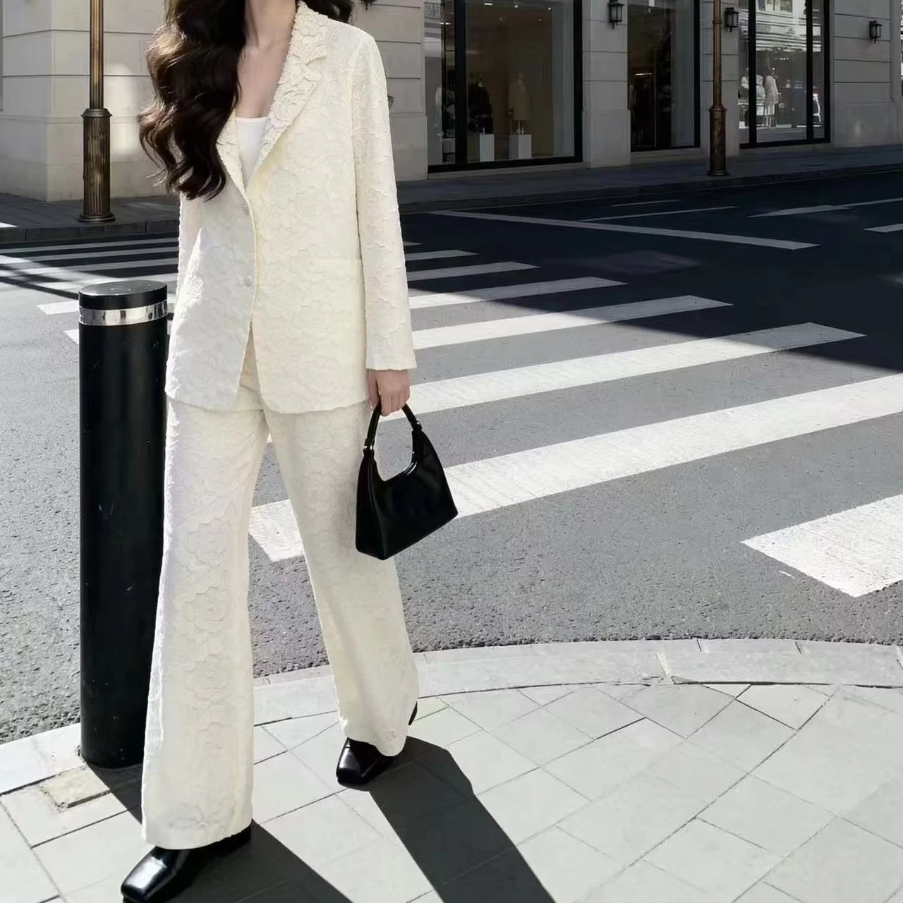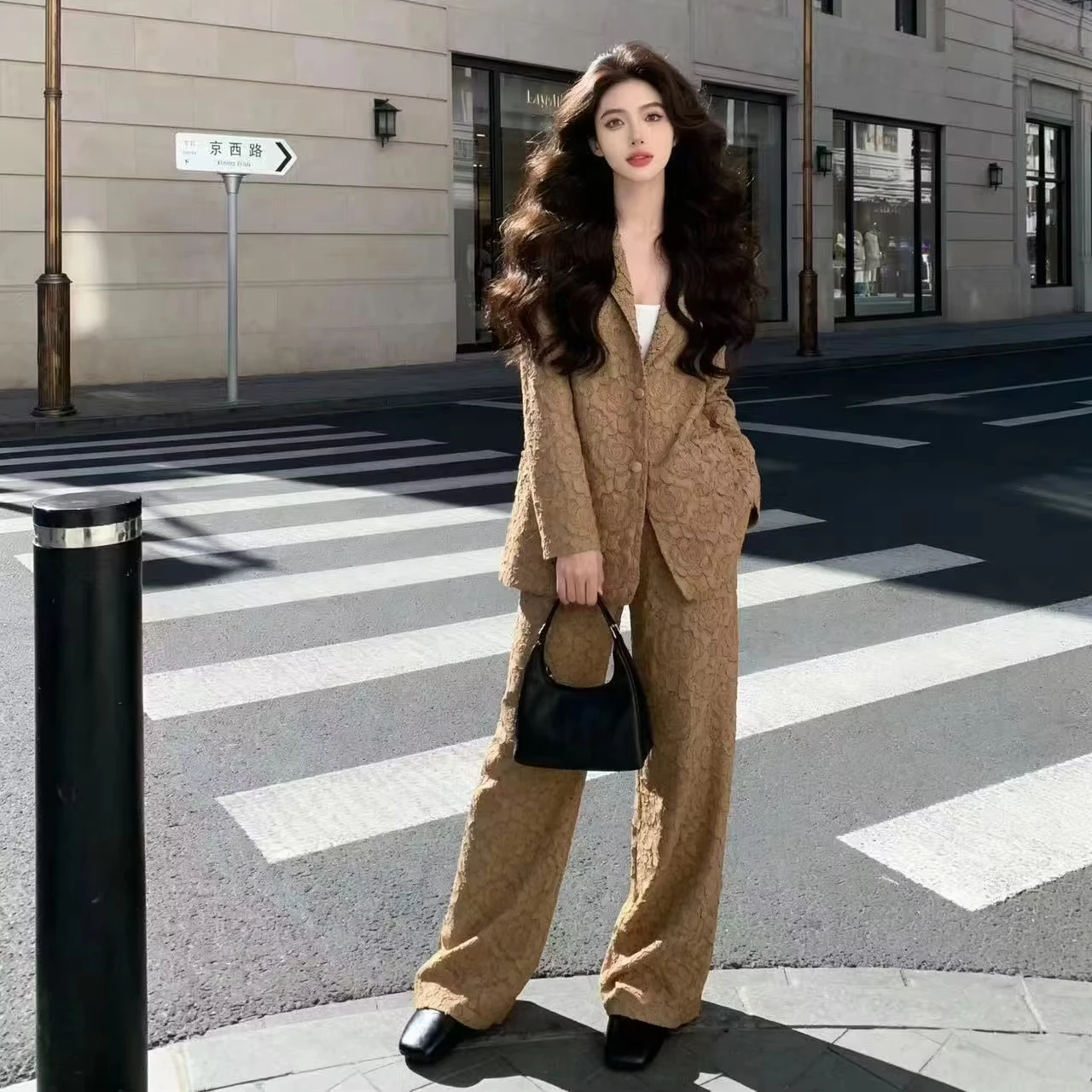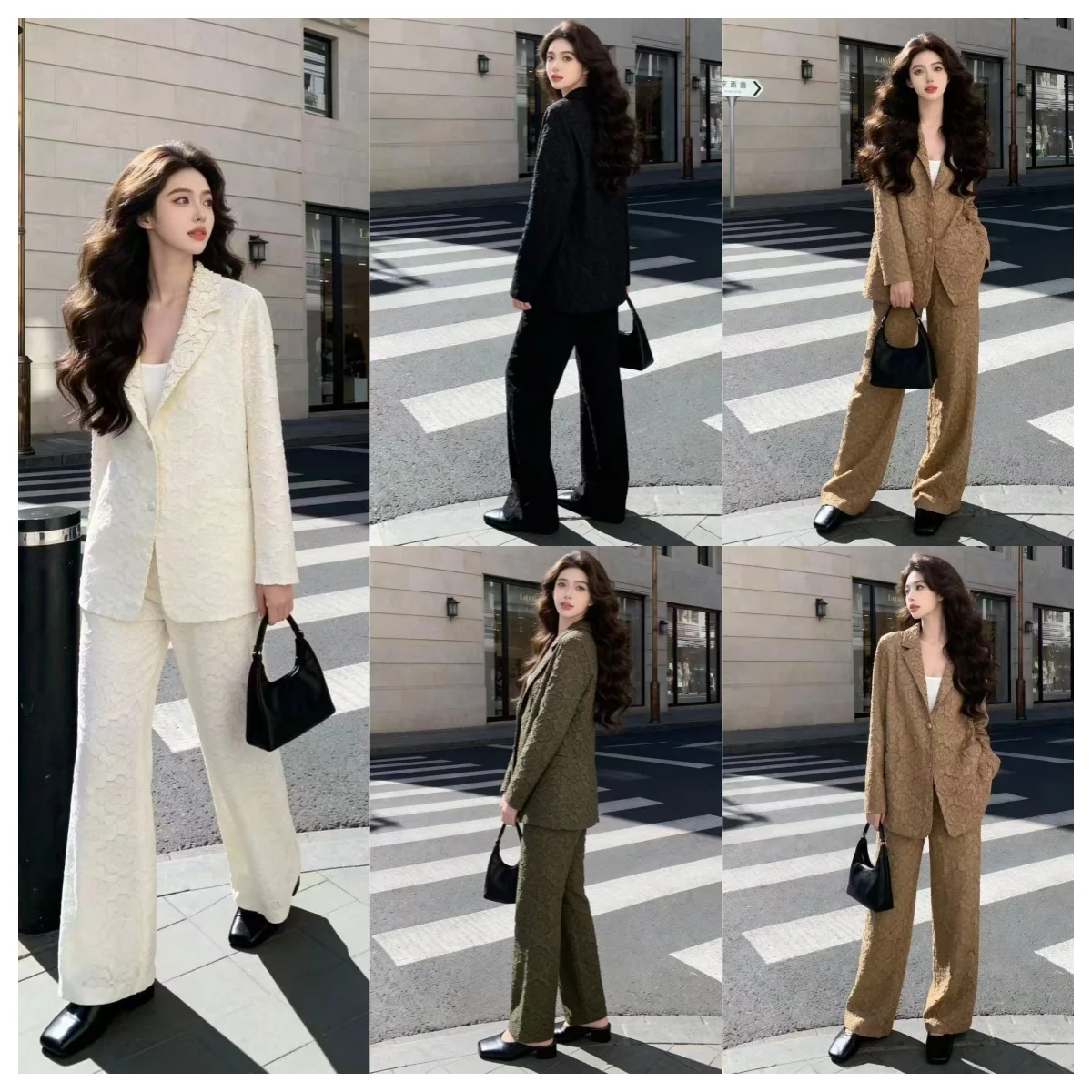 2026 Spring New Embossed Blazer & Wrinkle Wide Leg Pants Suit - Factory Direct Manufacturer