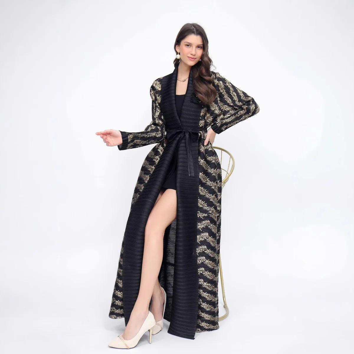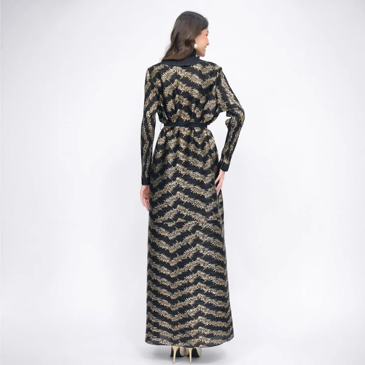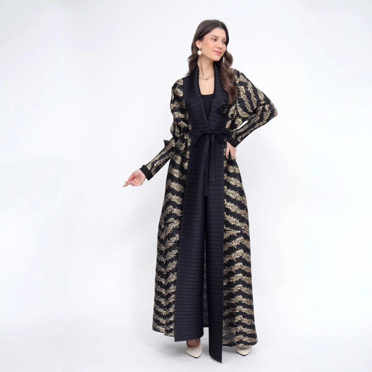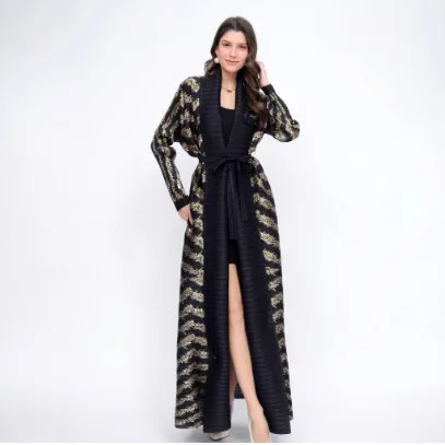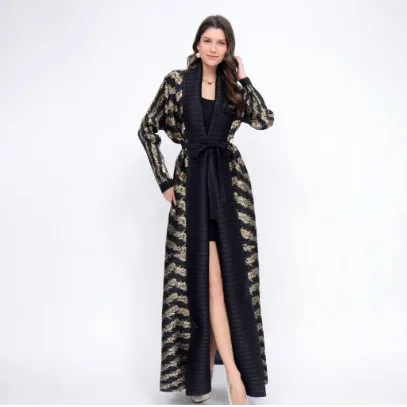 2025 Islamic Women's Pleated Stripe Stitching Long Windbreaker Fashion Joker Slim Coat Traditional Muslim Clothing Spring