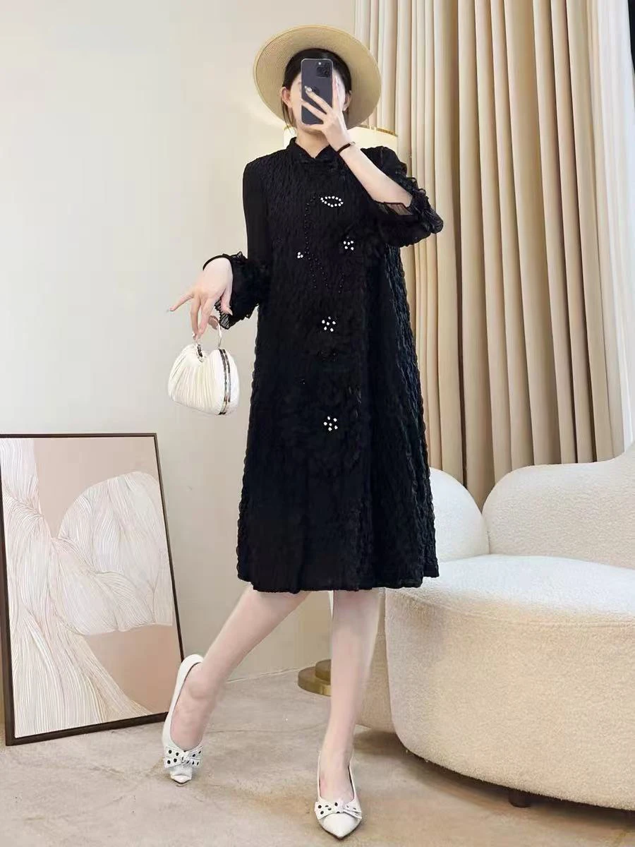 ZYHT 21541 Wholesale Crew Neck High Waist Casual Dresses Elegant Lace Velvet Mermaid Hem Ruched Long Sleeve Dresses for Women