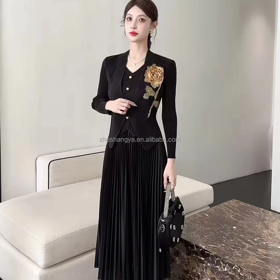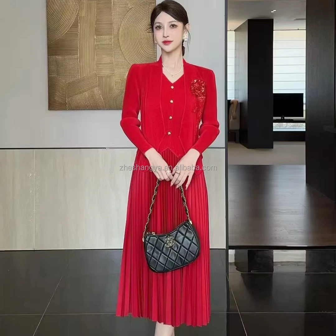 Manufacturer Direct Supply 2025 Spring New Midi-Length Slimming Two-Piece Temperament Dress for Summer Autumn Casual Dresses