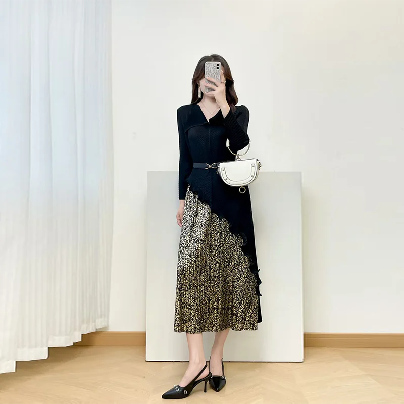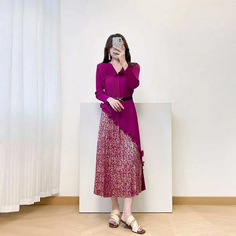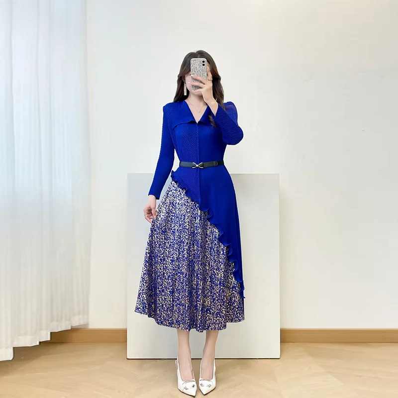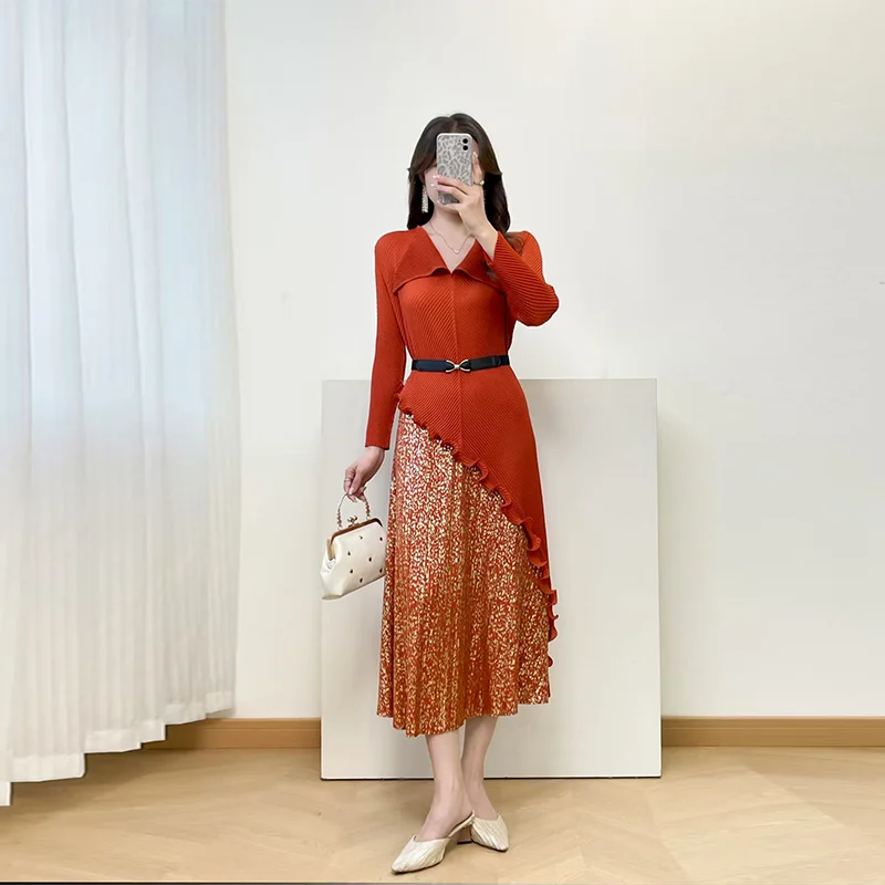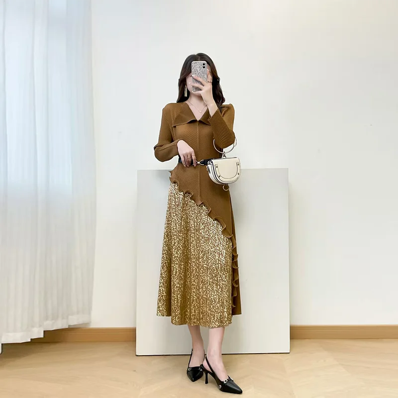 Factory Direct Supply 2025 Autumn New Pleated Retro Lace Waist Decorative Women's Gilded Casual Dress with Wooden Ear