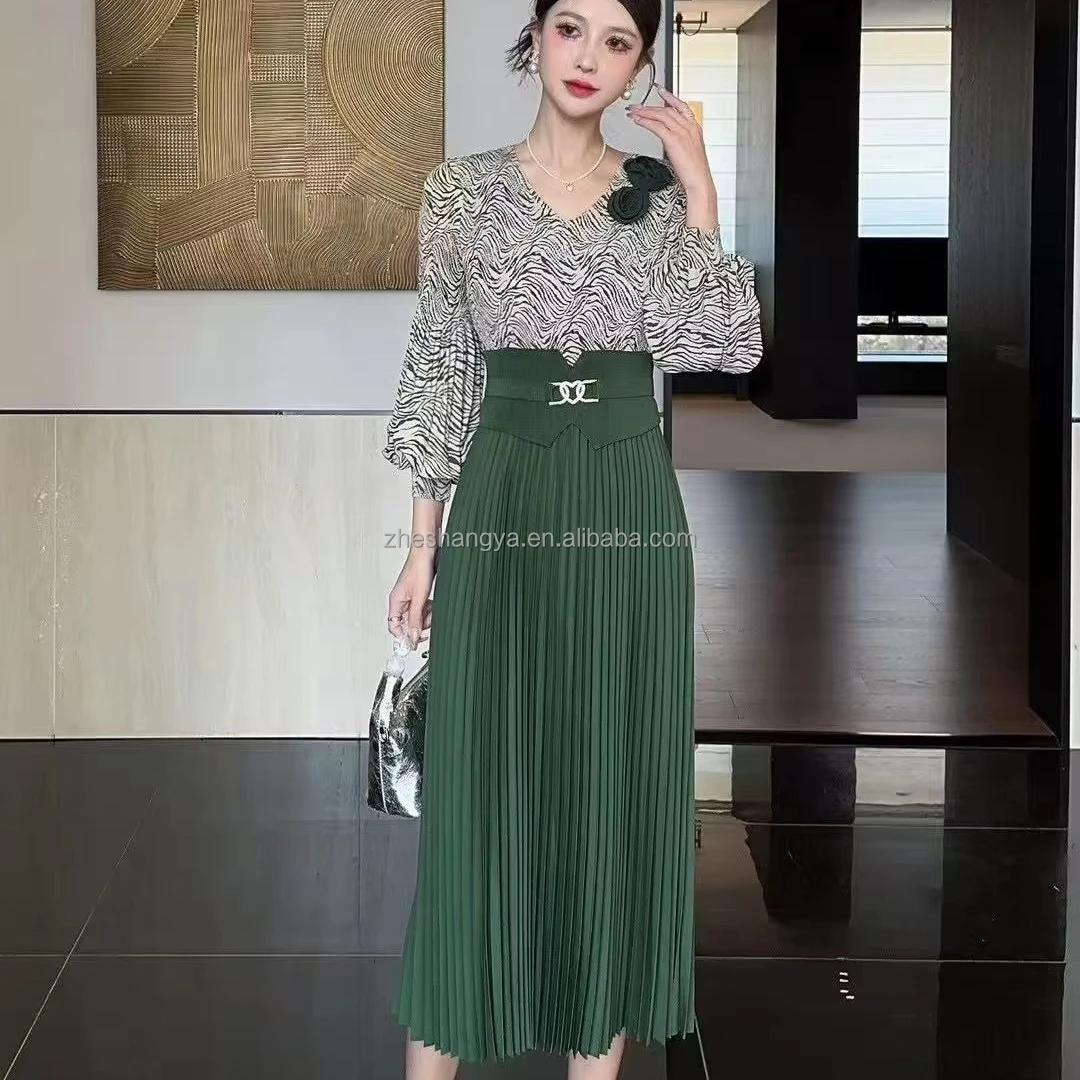 2025 Spring New Miyake Casual Midi Dress for Women Folded Splicing Waist Design with Commuting Style