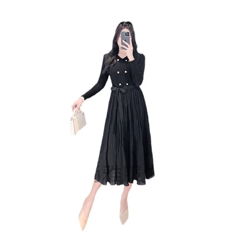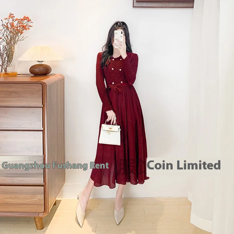 ZYHT 21541 Wholesale Crew Neck High Waist Casual Dresses Elegant Lace Velvet Mermaid Hem Ruched Long Sleeve Dresses for Women
