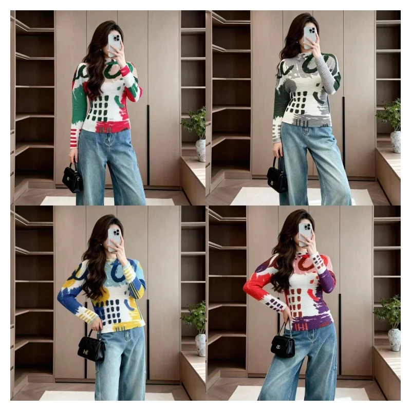 2025 Autumn Winter New Women's Cutout Pattern Top Factory Direct Wholesale Pleated Long Sleeve Chic Fall Winter Blouse