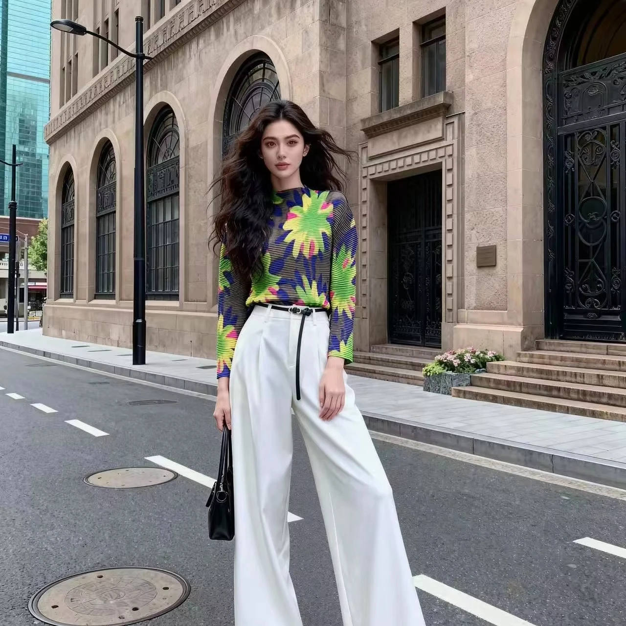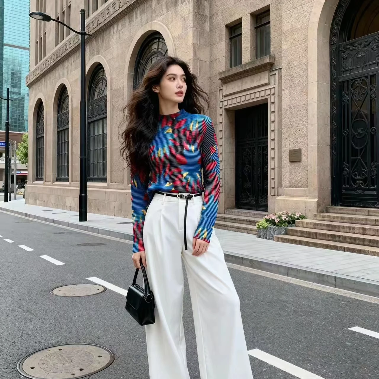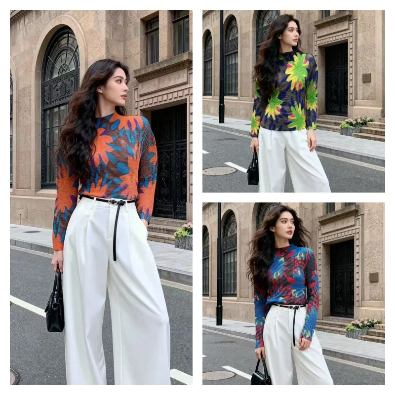 2025 Autumn Winter New Women's Floral Pattern Top Factory Direct Wholesale Pleated Long Sleeve Daily Casual Fall Winter Blouse