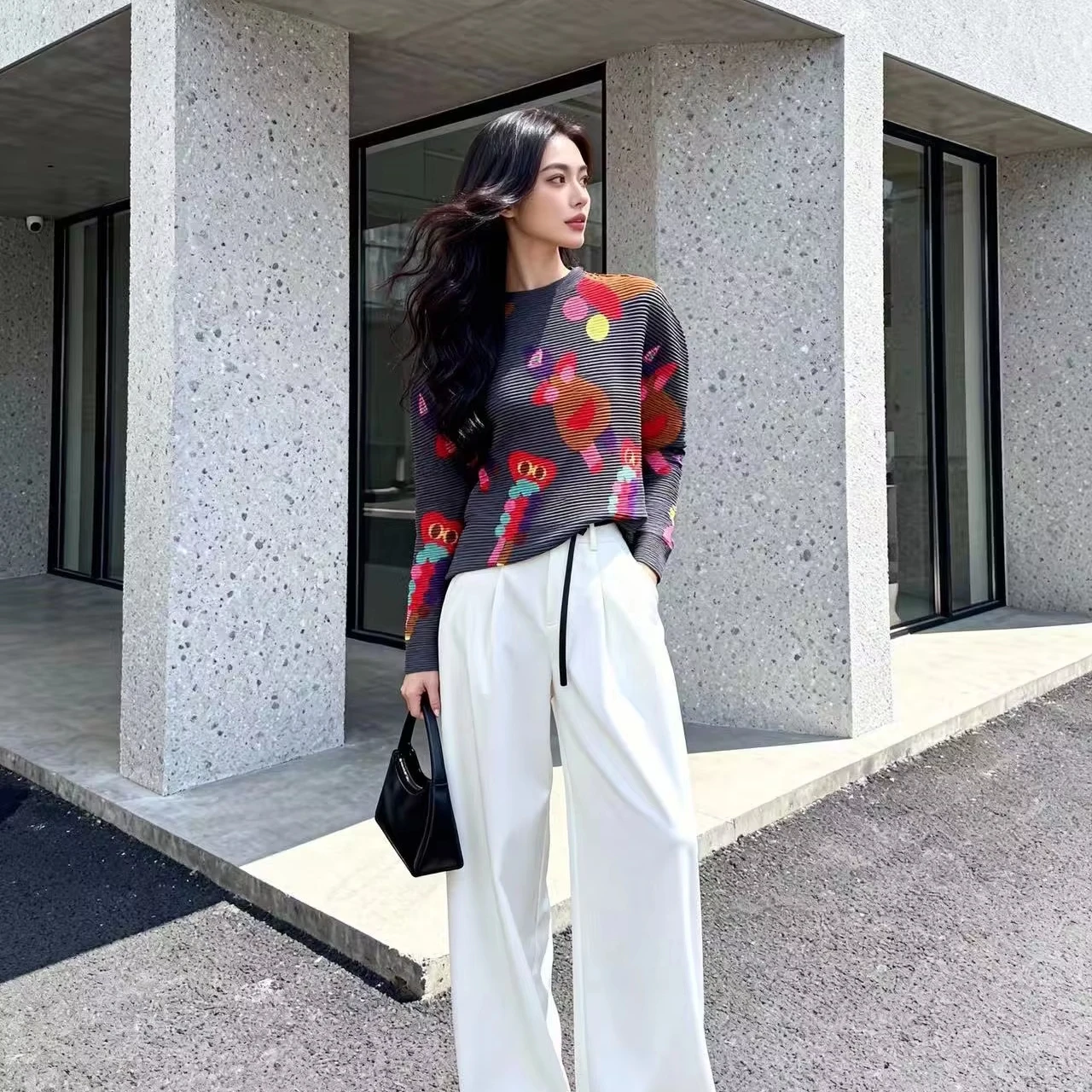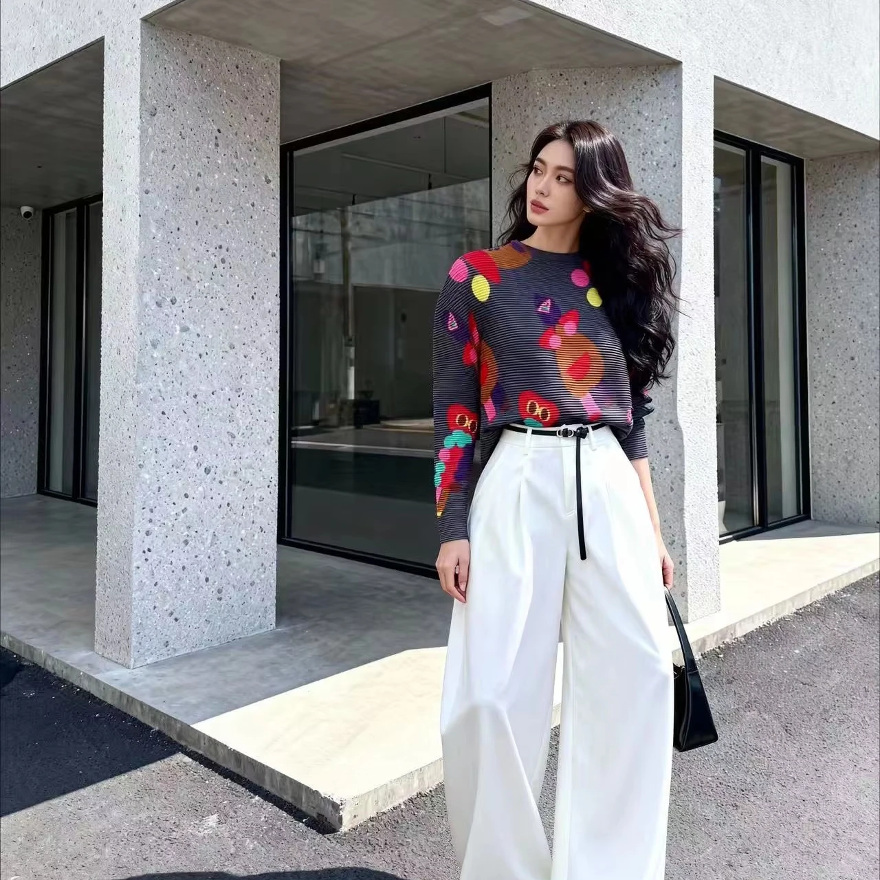 2025 Autumn Winter New Women's Fun Pattern Top Factory Direct Wholesale Pleated Long Sleeve Fashion Daily Fall Winter Blouse