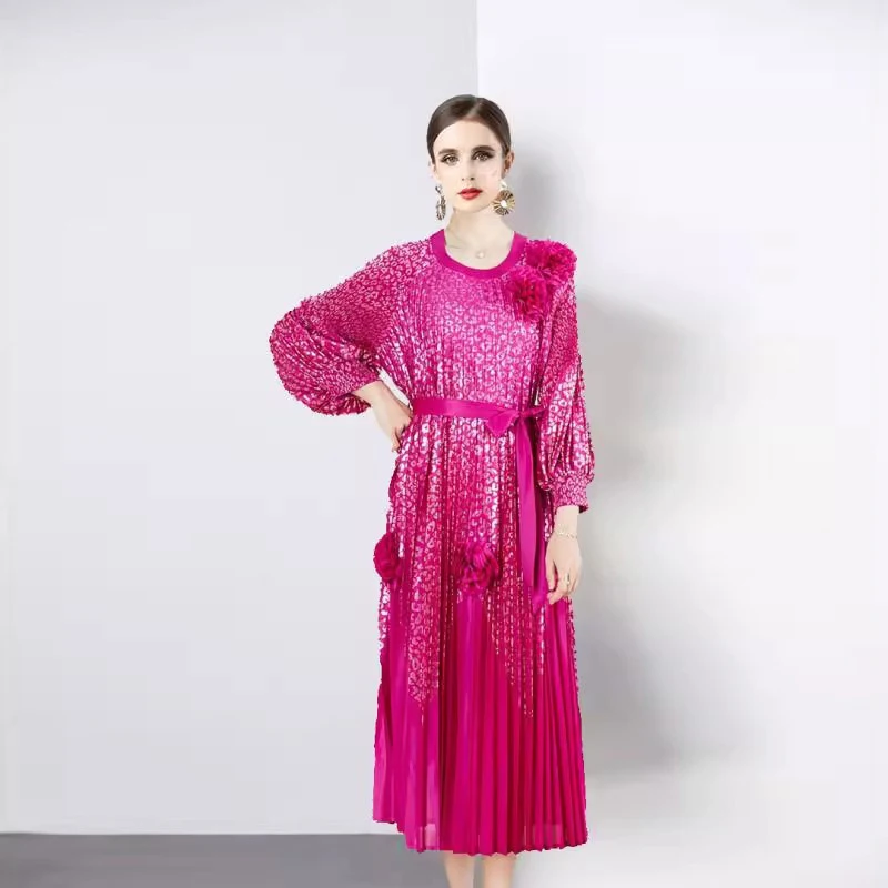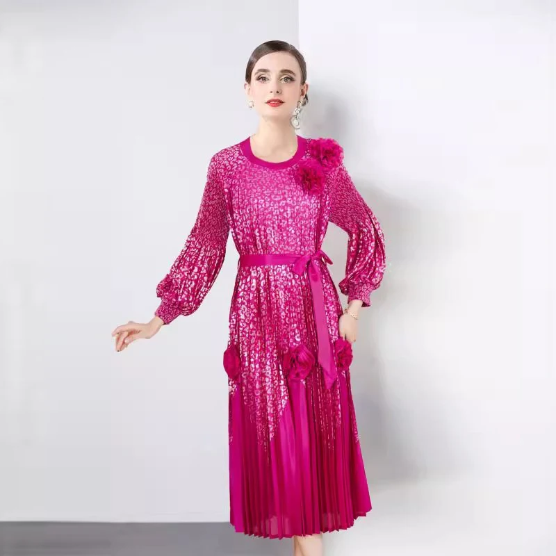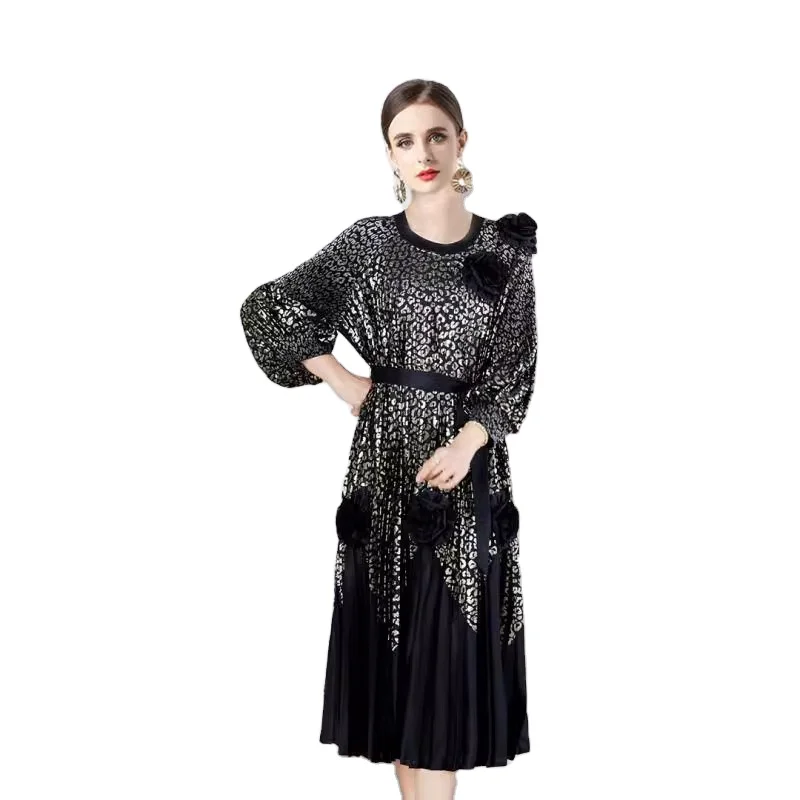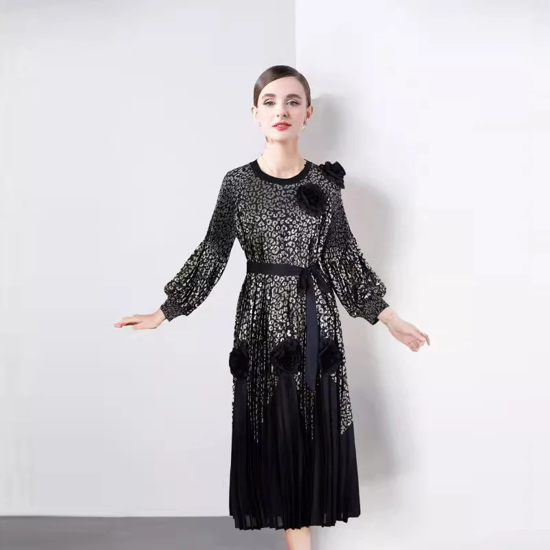 Miyake 2025 Spring and Summer Collection Elegant Joker Slim Waist for Women New Casual Dress with Digital Printing