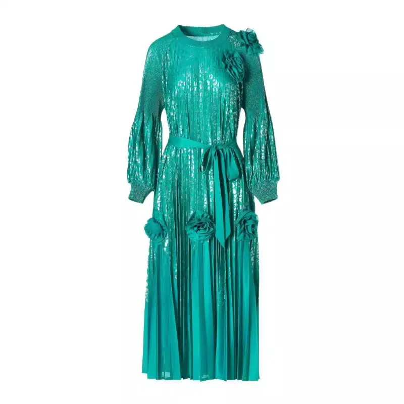ZYHT 73902 Dark Green Blue Long Sleeve Simple Elegant Evening Dress Customize High End Women Clothing Manufacturer