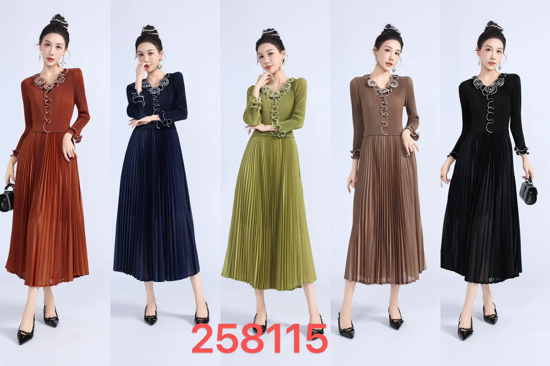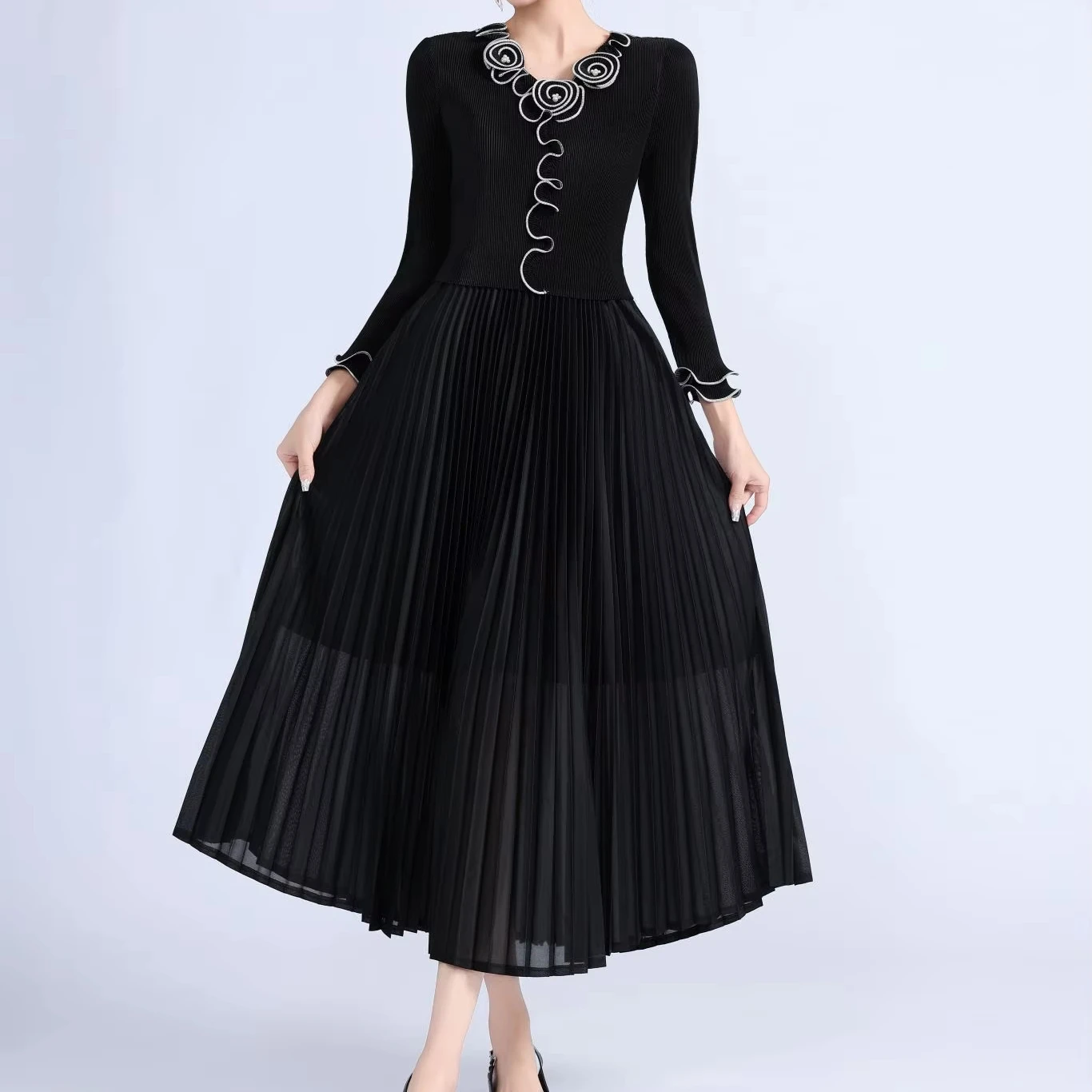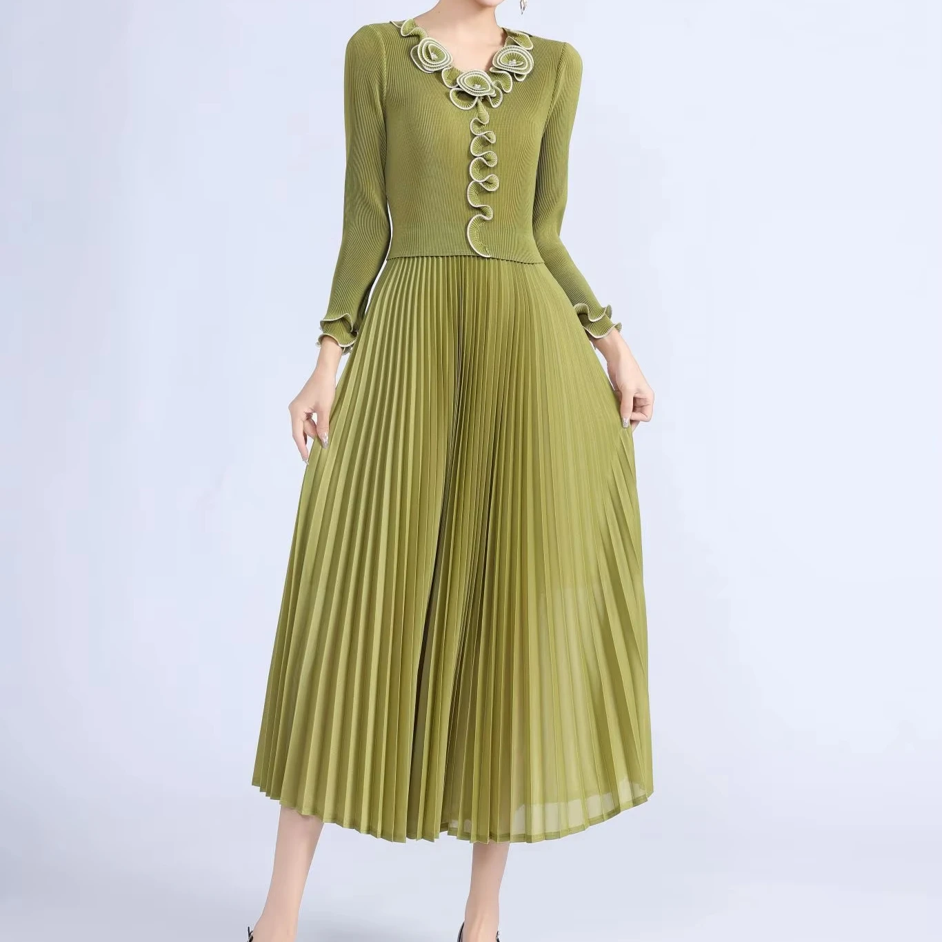 Factory Direct Sale 2025 Autumn New Women's Pleated Maxi Dress | Ruffled Collar Elegant Long-Sleeve Formal Gown