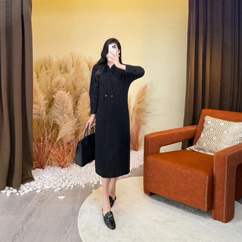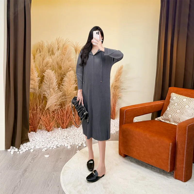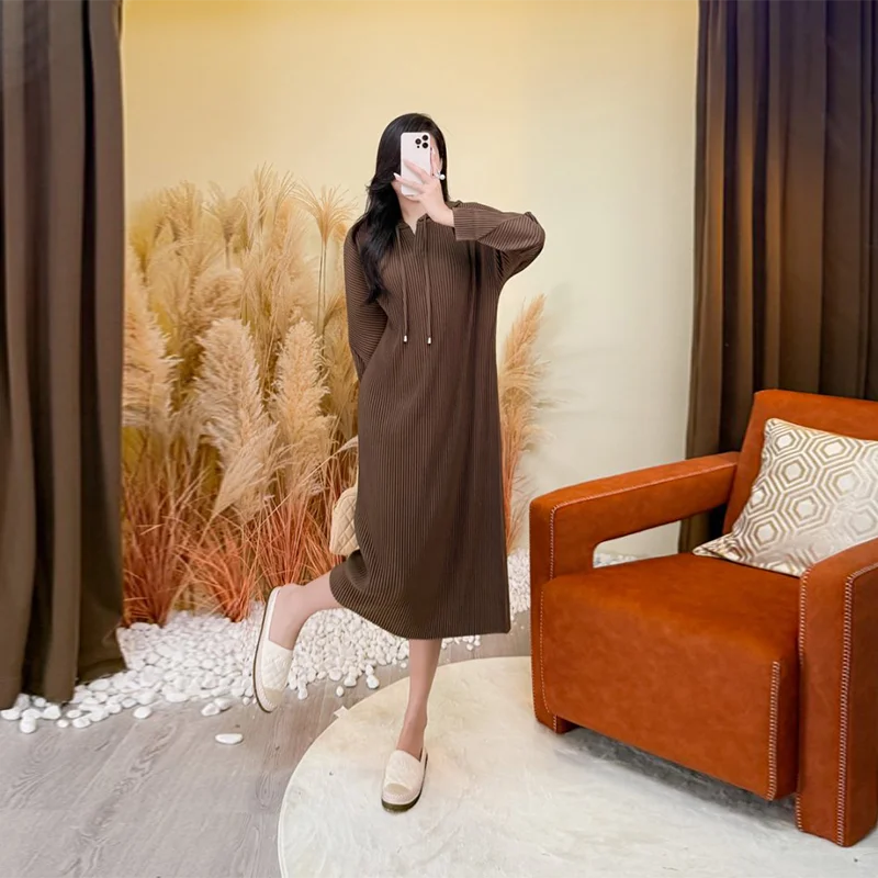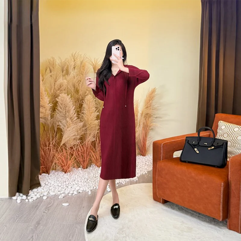 2025 Autumn New Solid Color Women's Hoodie Dress, Loose Long Sleeve Oversized Mid-Length Style