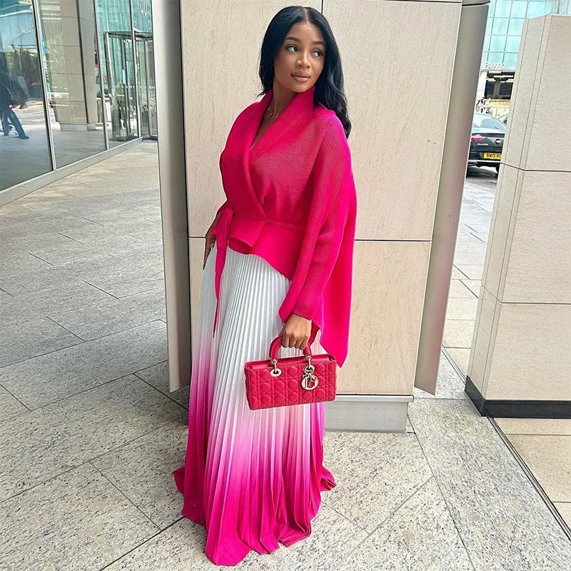 Miyake 2025 Casual Summer Top Two-Piece Skirt Suit Large Size Loose 1/4 Sleeve Quick Delivery Explosion-Style African Knitting
