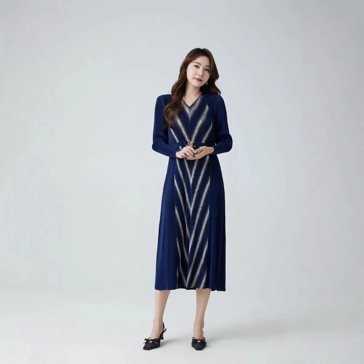 ZYHT 73902 Dark Green Blue Long Sleeve Simple Elegant Evening Dress Customize High End Women Clothing Manufacturer