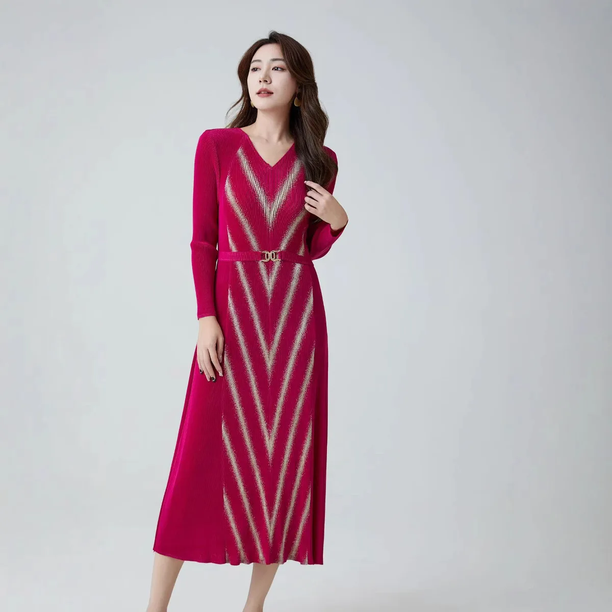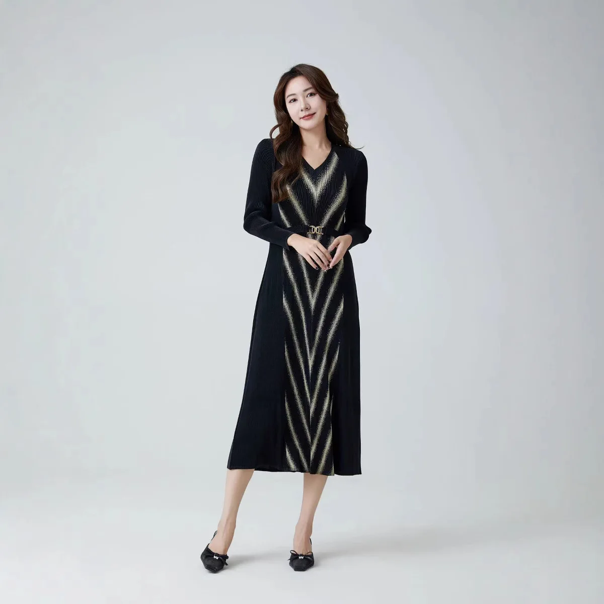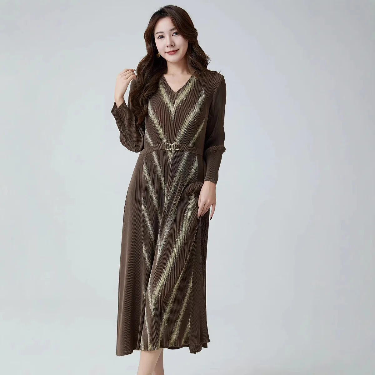 Factory Direct 2025 Spring New Fashion V-Neck Loose Slim Maxi Casual Style Chiffon Front Logo Washable Floor-Length Natural