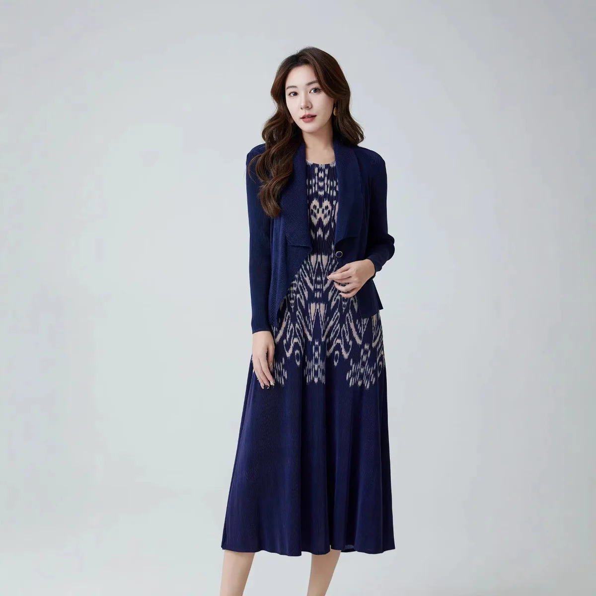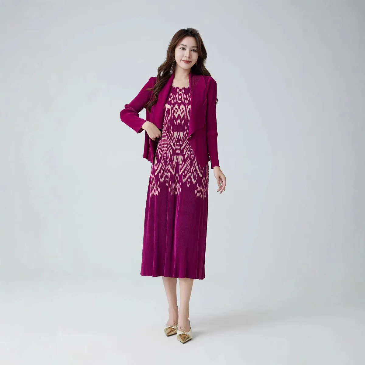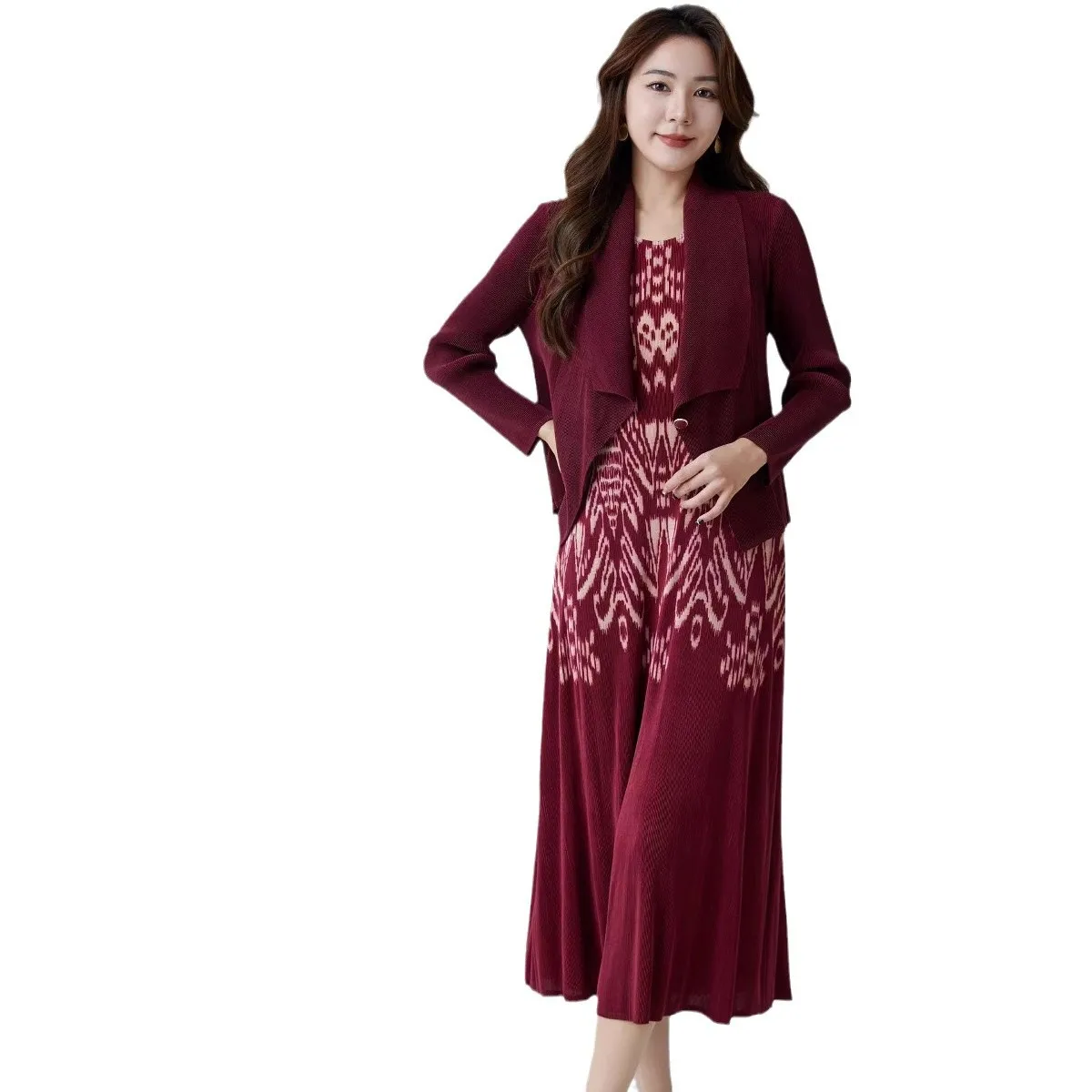 2025 Summer Collection Elegant High-End Casual Two-Piece Slim Suit Long Pleated Floral Print Top New Arrival Direct From Factory