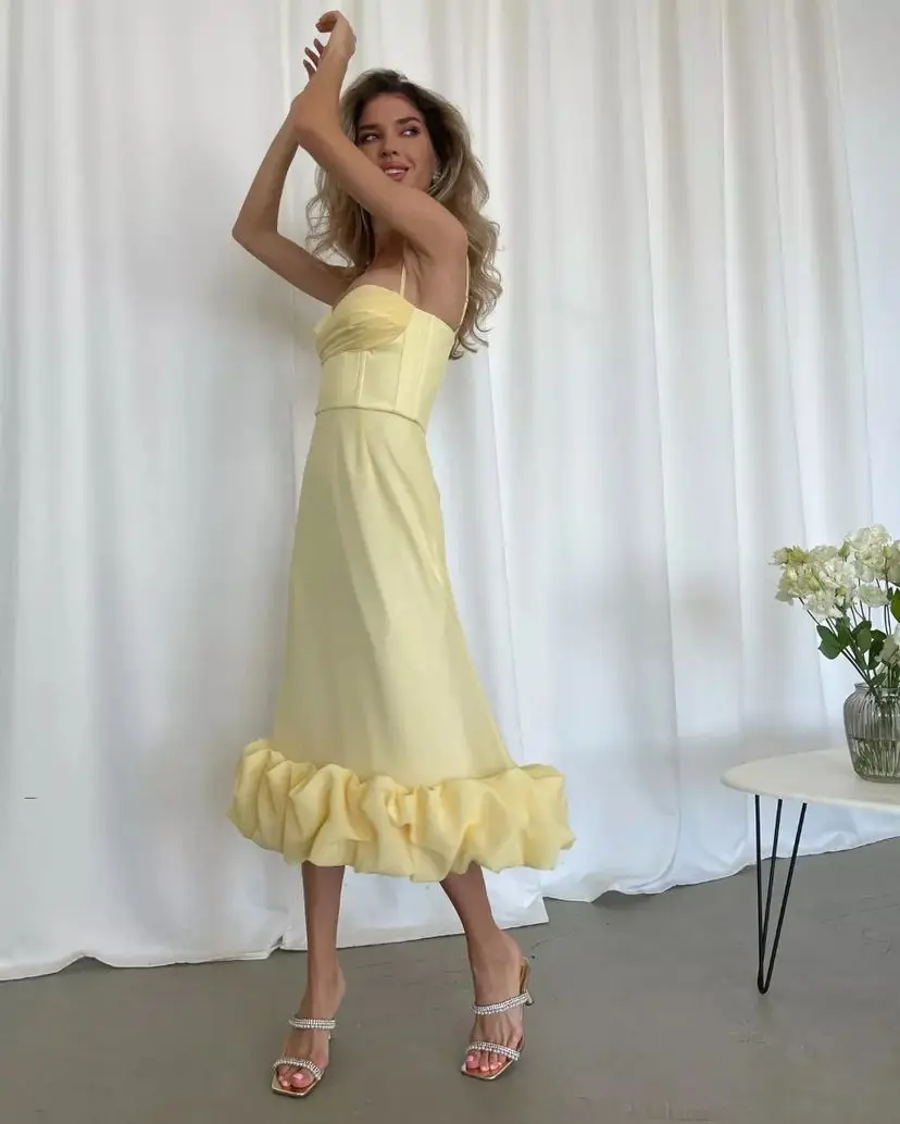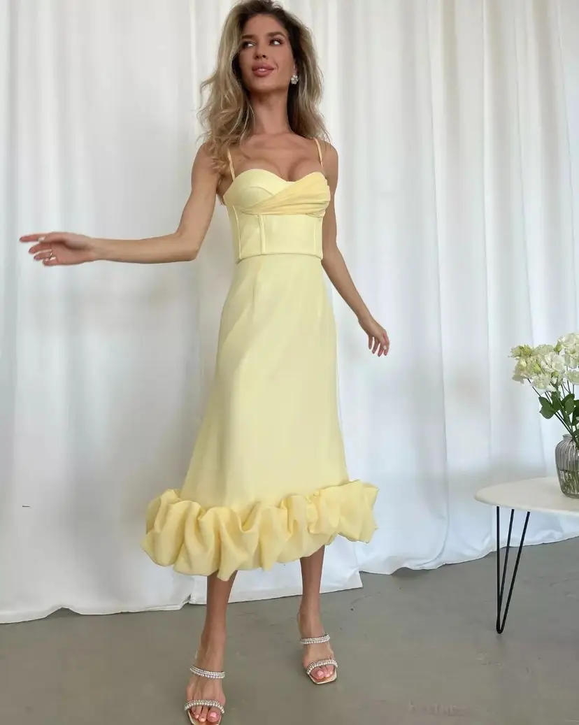 ZYHT 73571 Custom Elegant V-Neck Cape Sleeve Dresses Trendy Straight Yellow Maxi Party Gowns Modest Evening Dress for Women