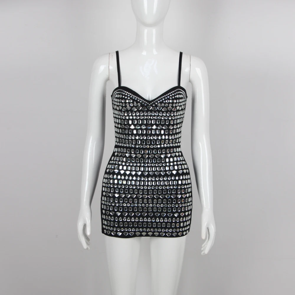 SB2328 Luxury Beaded Crystal Sleeveless Mini Prom Dress for Women Lady Elegant Rhinestone Bandage Bodycon Built-in Bra Polyester