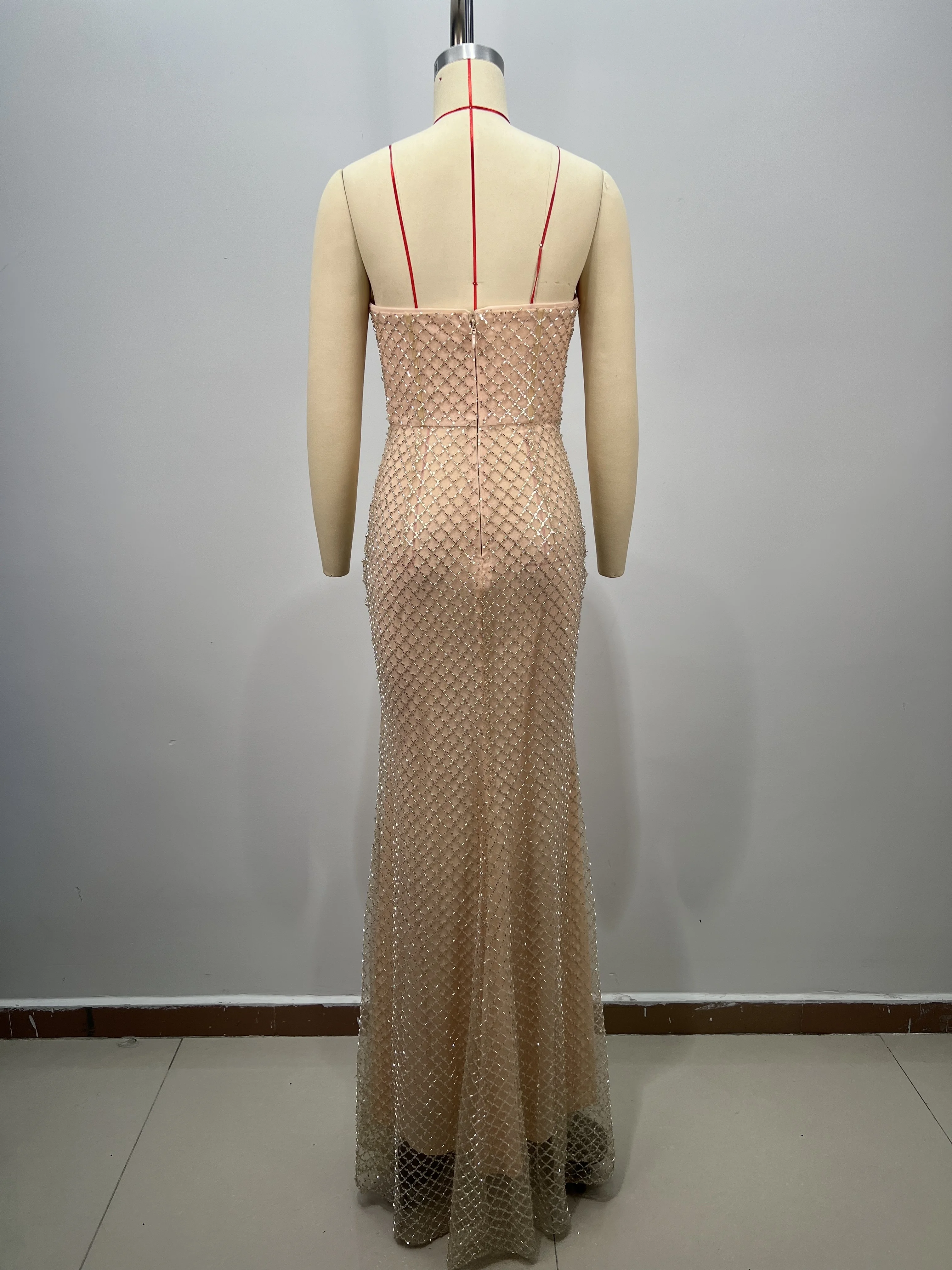 ED2826 Luxury Women Strapless Prom Dress Sexy Backless Sleeveless Beading Sequin Natural Waistline Breathable Party Style