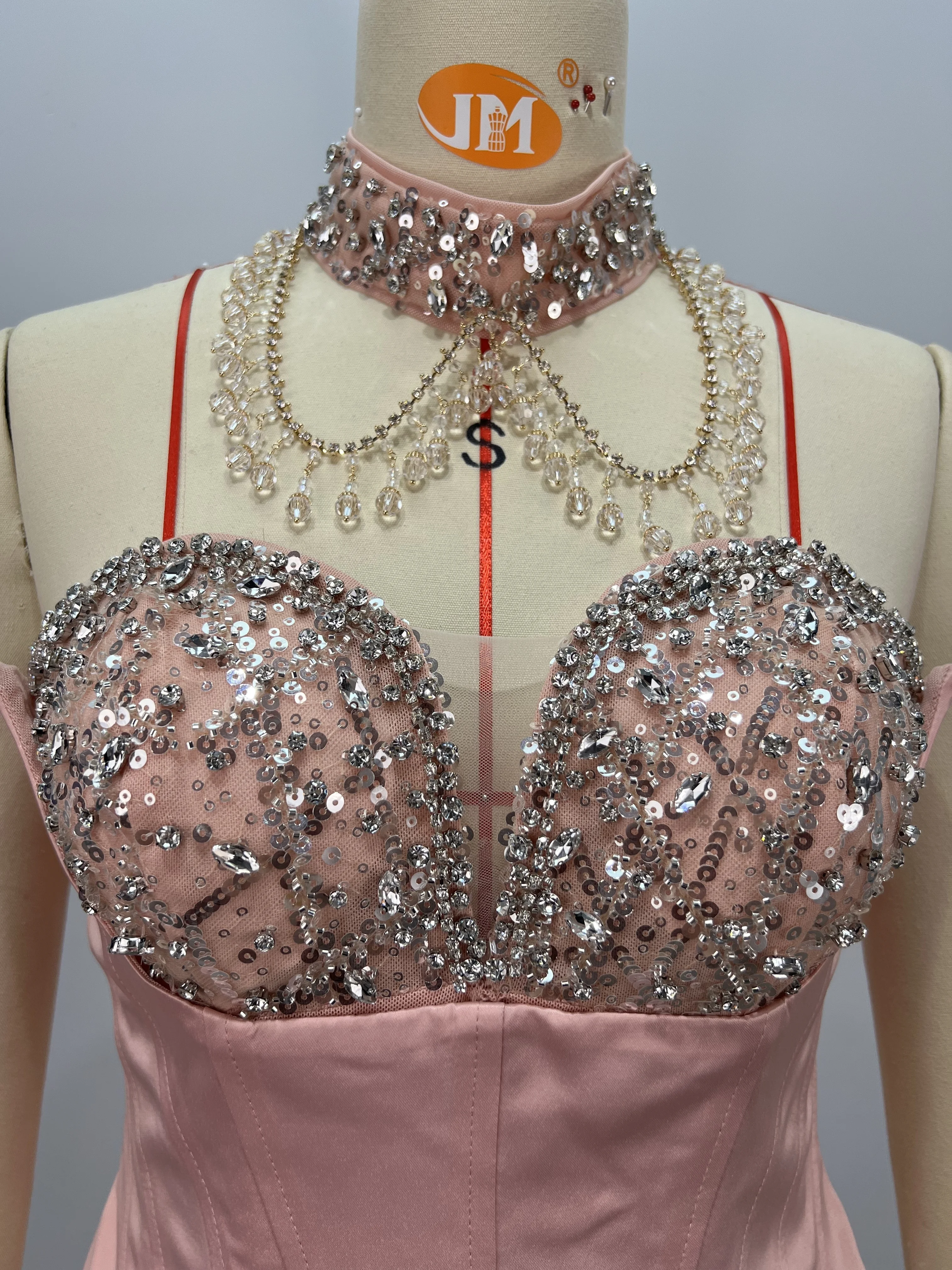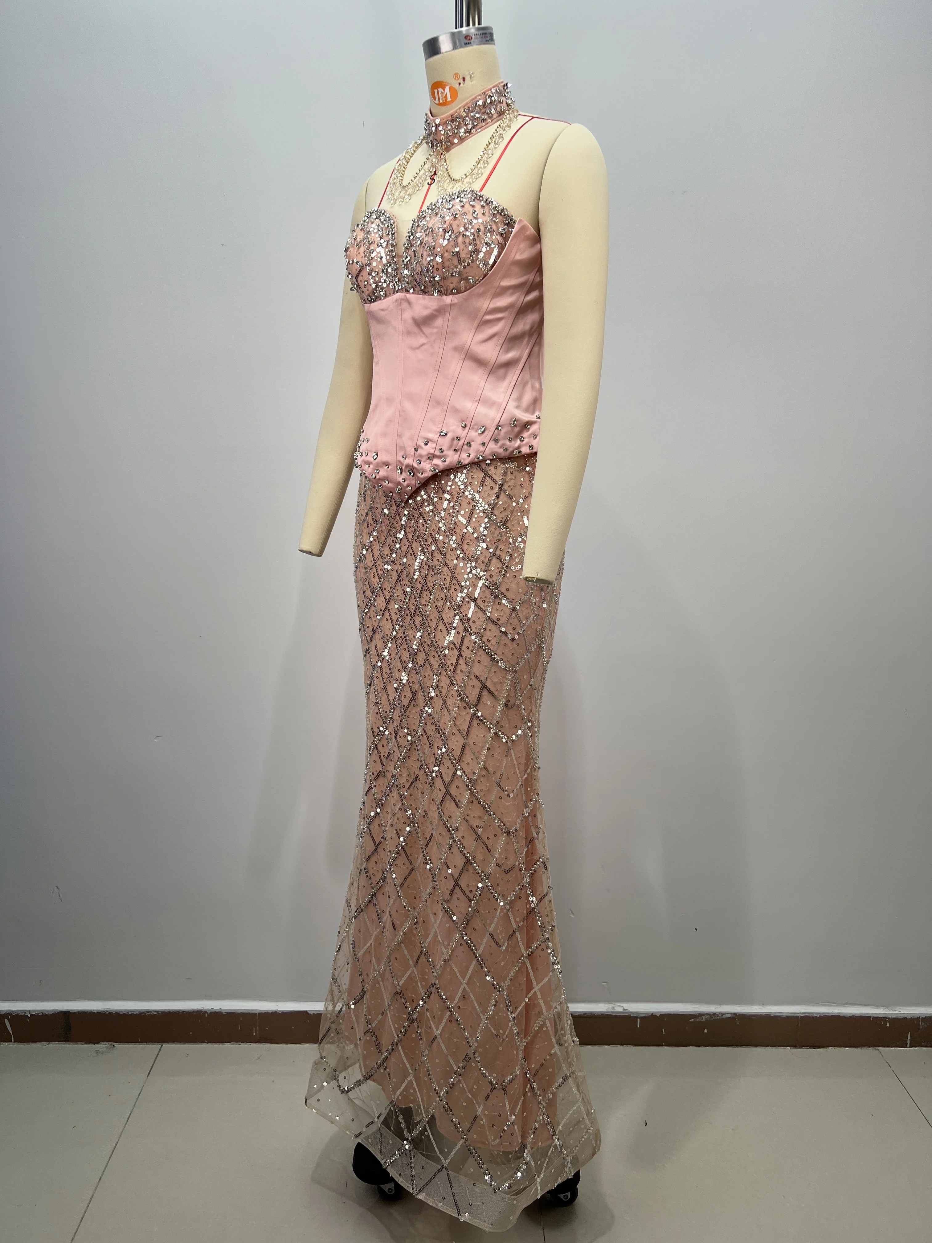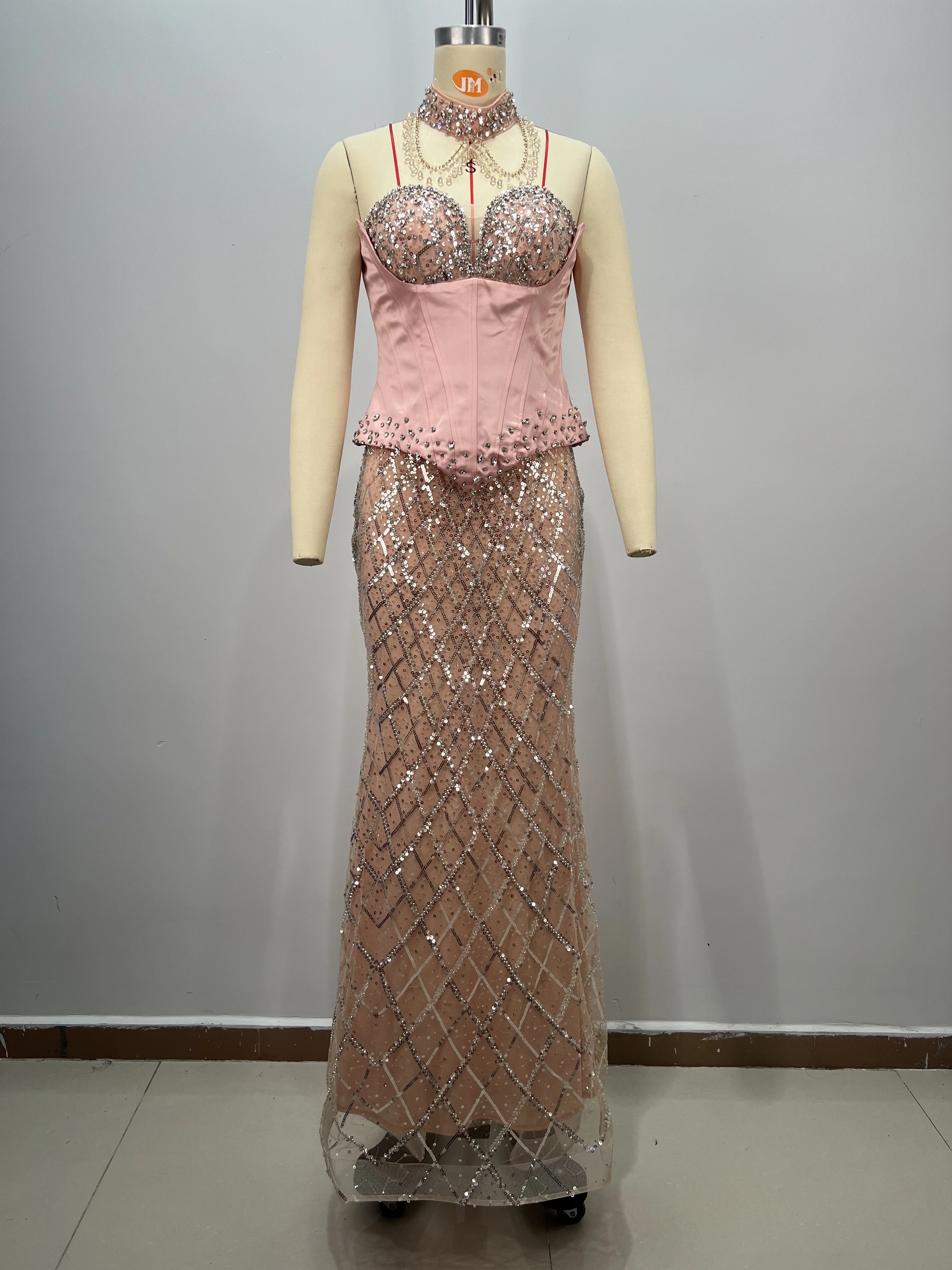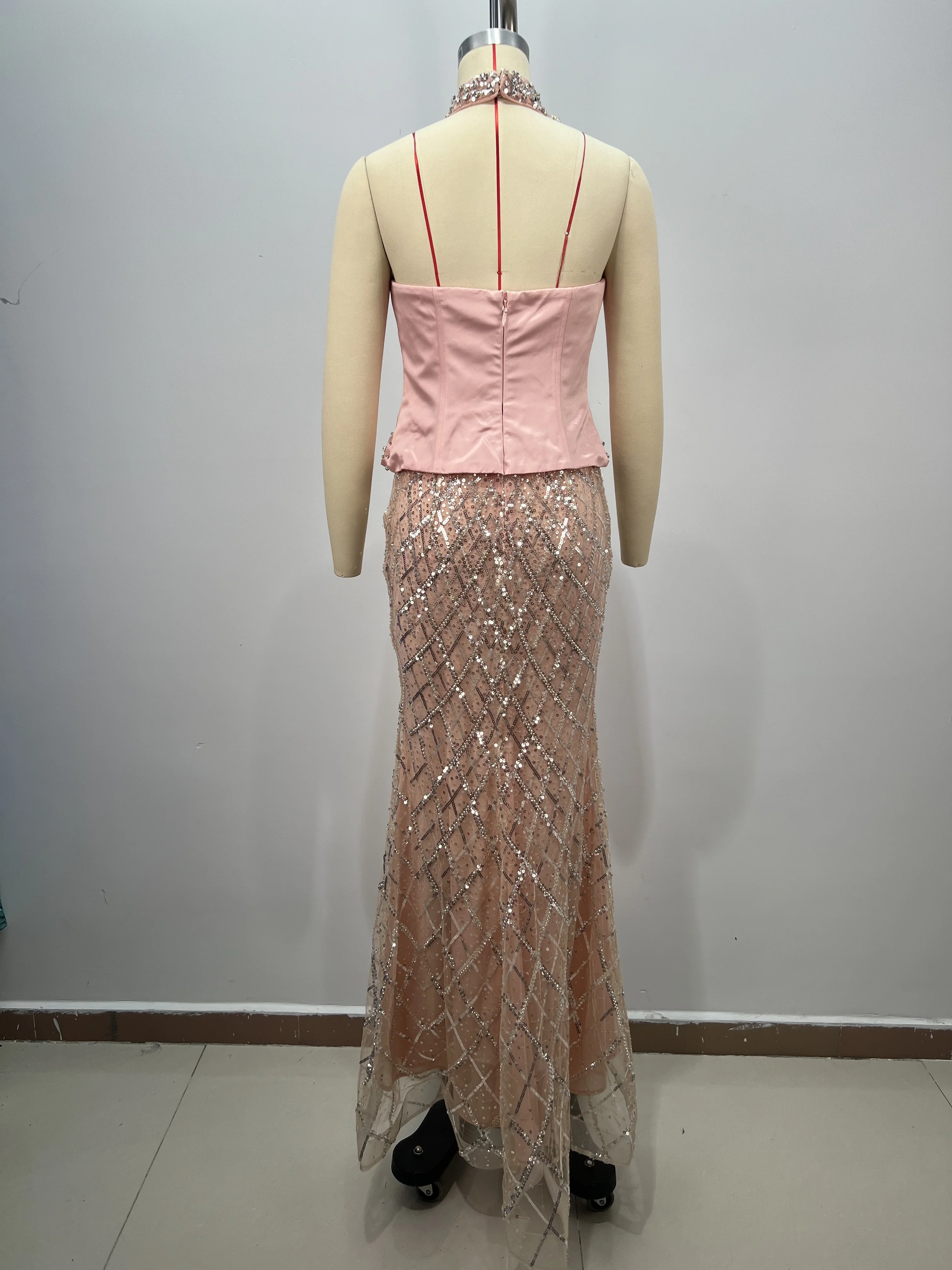 ED2827 Luxury Dresses Women Elegant Strapless Gown With Rhinestones Sequined Backless Sexy Maxi Dress with Choker