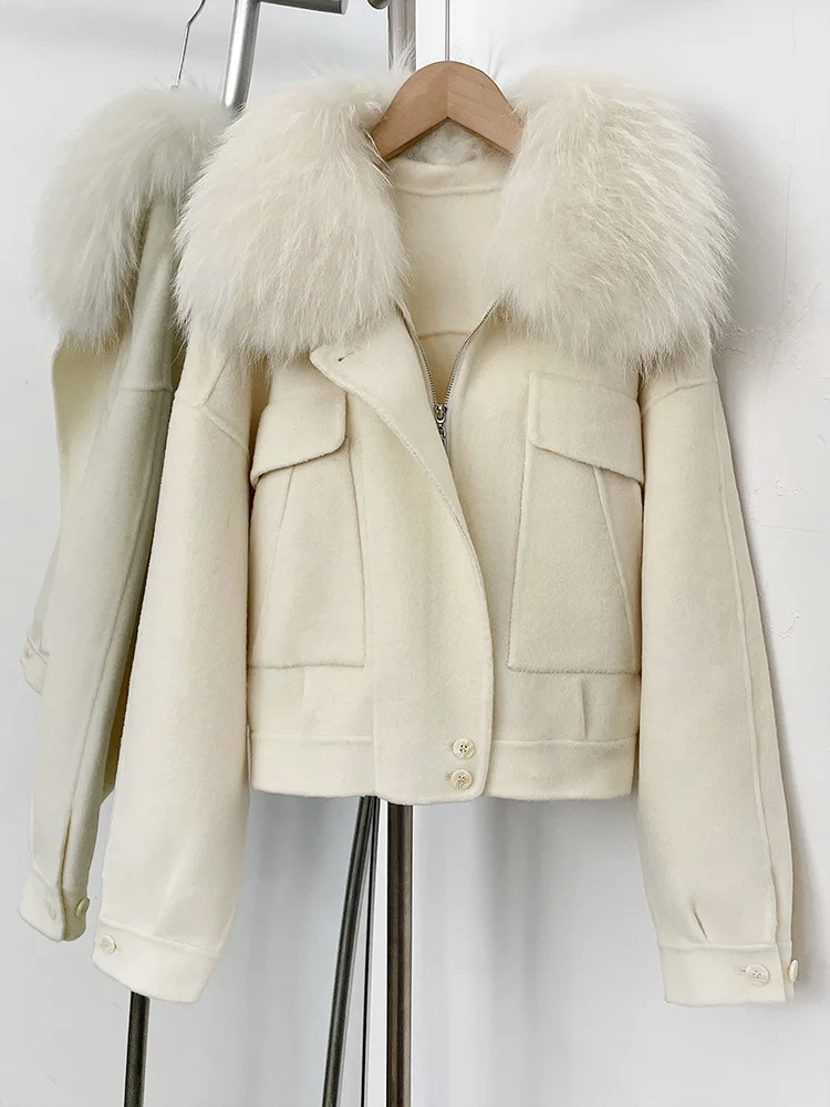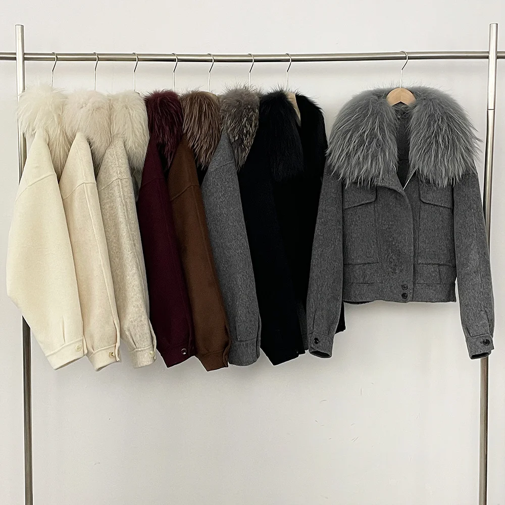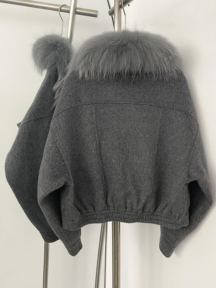 QC25001 New Arrival High Quality Breathable Plus Size Winter Casual Cashmere Wool Bomber Fur Jacket with Zipper Nonwoven
