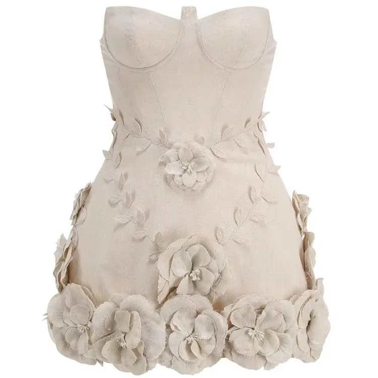 SB3047 Kimshein High Quality Woman Fancy Clothes Mini Sleeveless Dresses Women Sexy 3D Flowers Dress