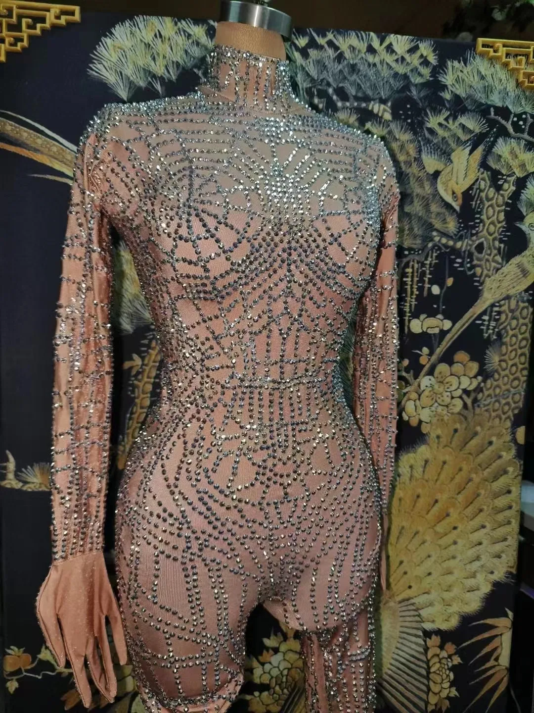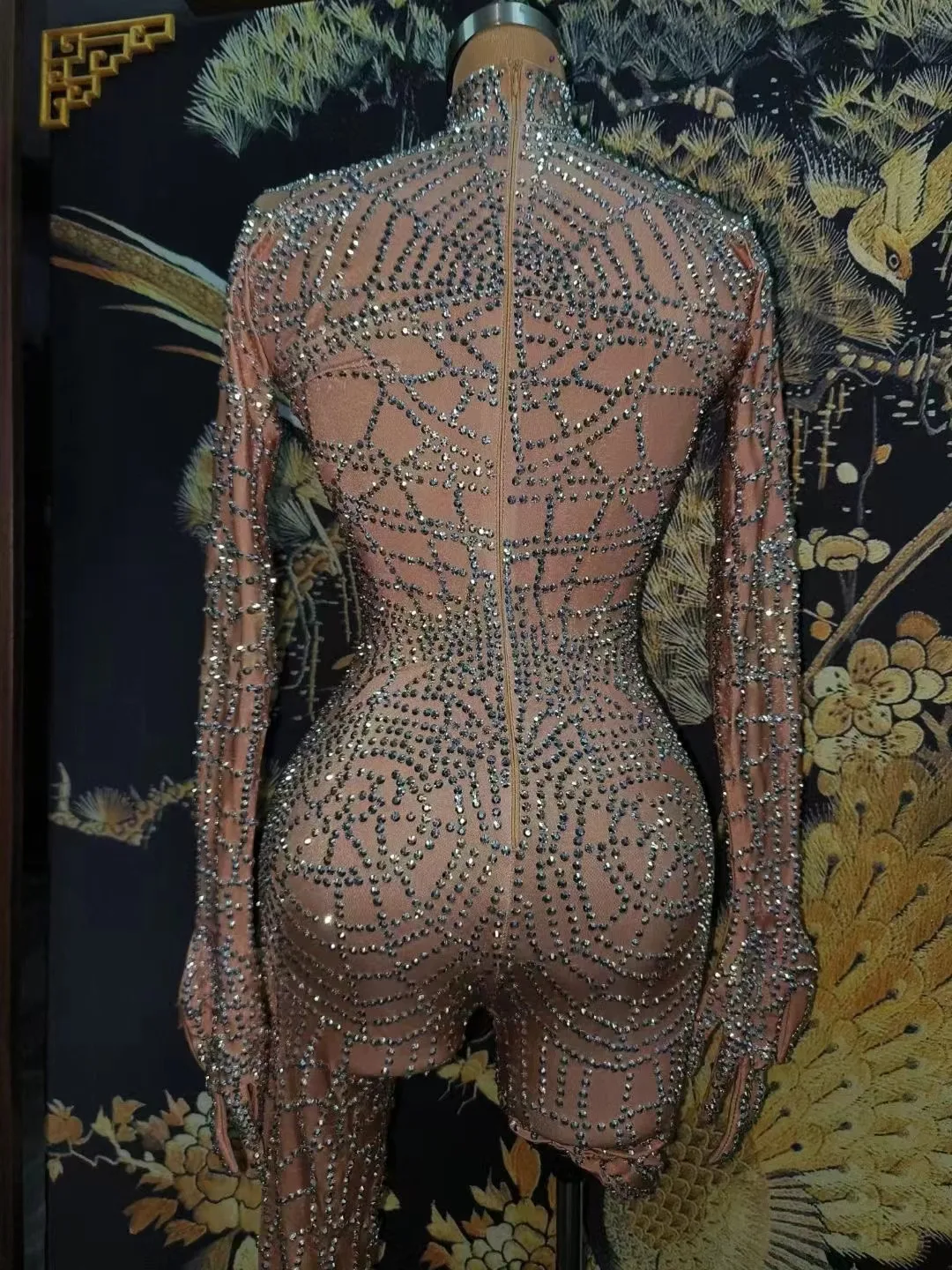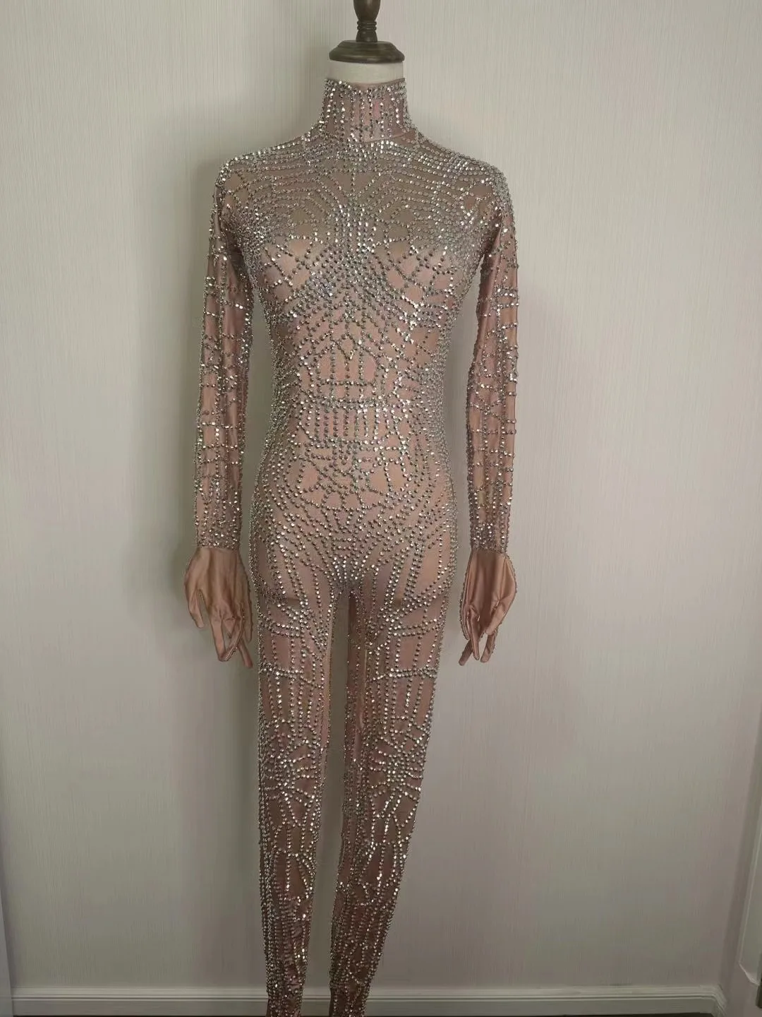 AD1719 New Arrival Rhinestone Mesh Jumpsuit Women Bodycon Jumpsuit for Women Sexy Club Outfits Summer