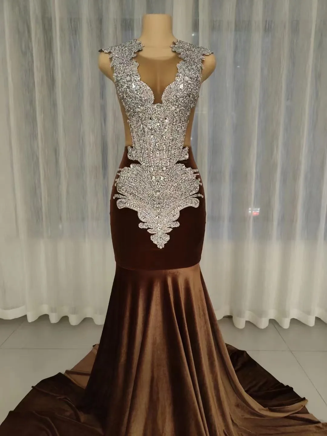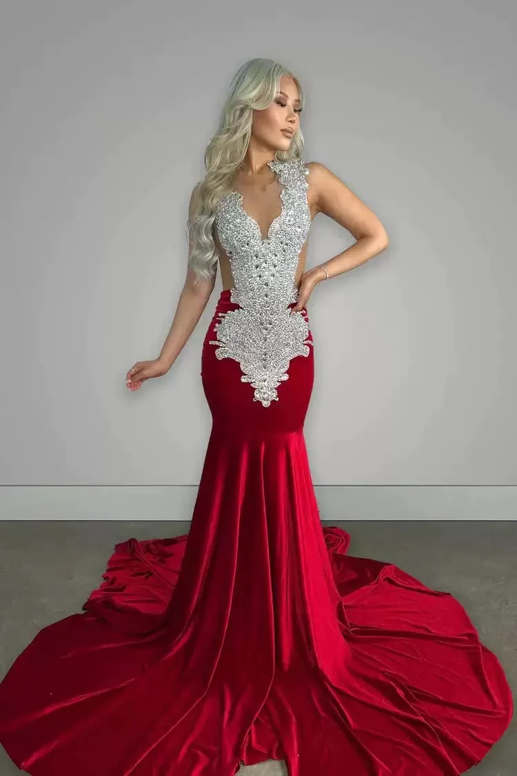 AD1707 High Quality Luxury Dresses Evening Dresses Elegant Velvet Diamond Dress Women Crystal