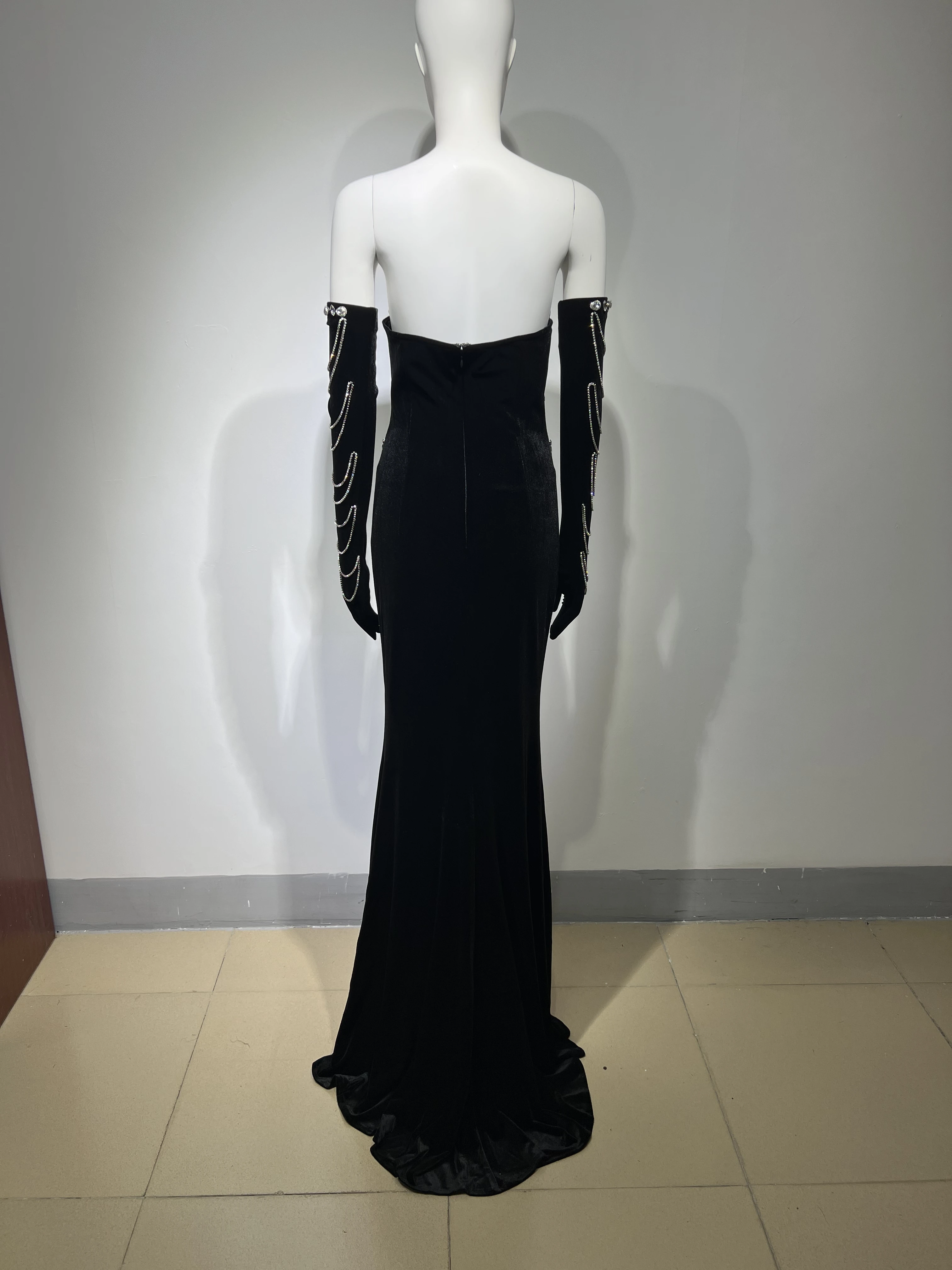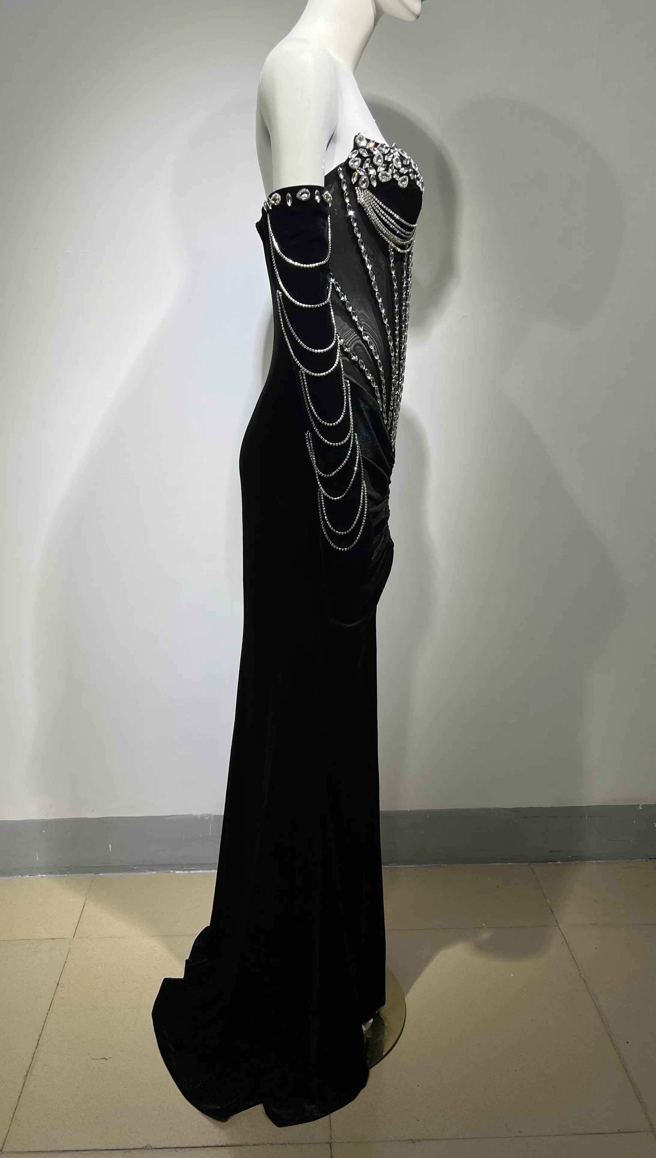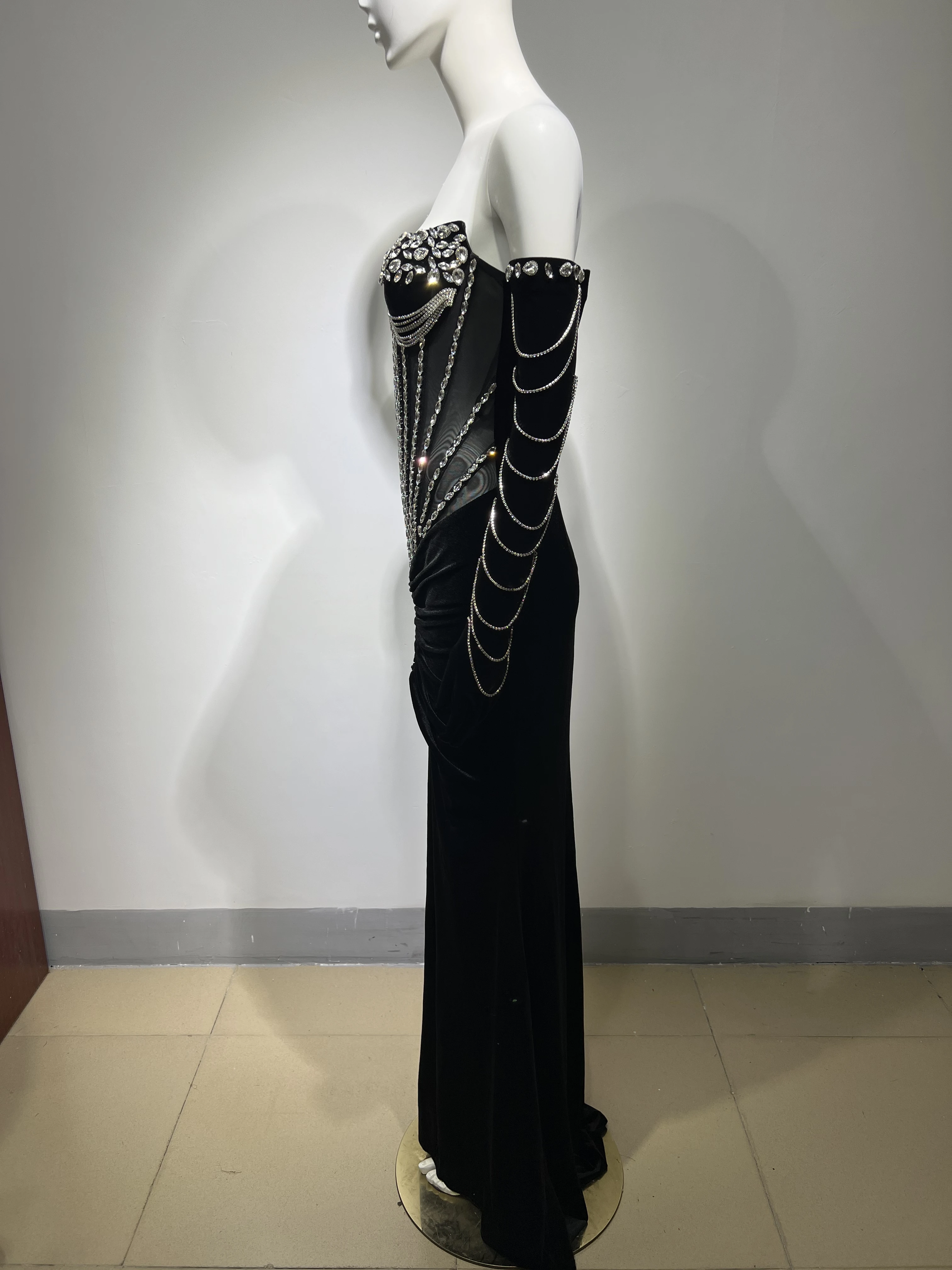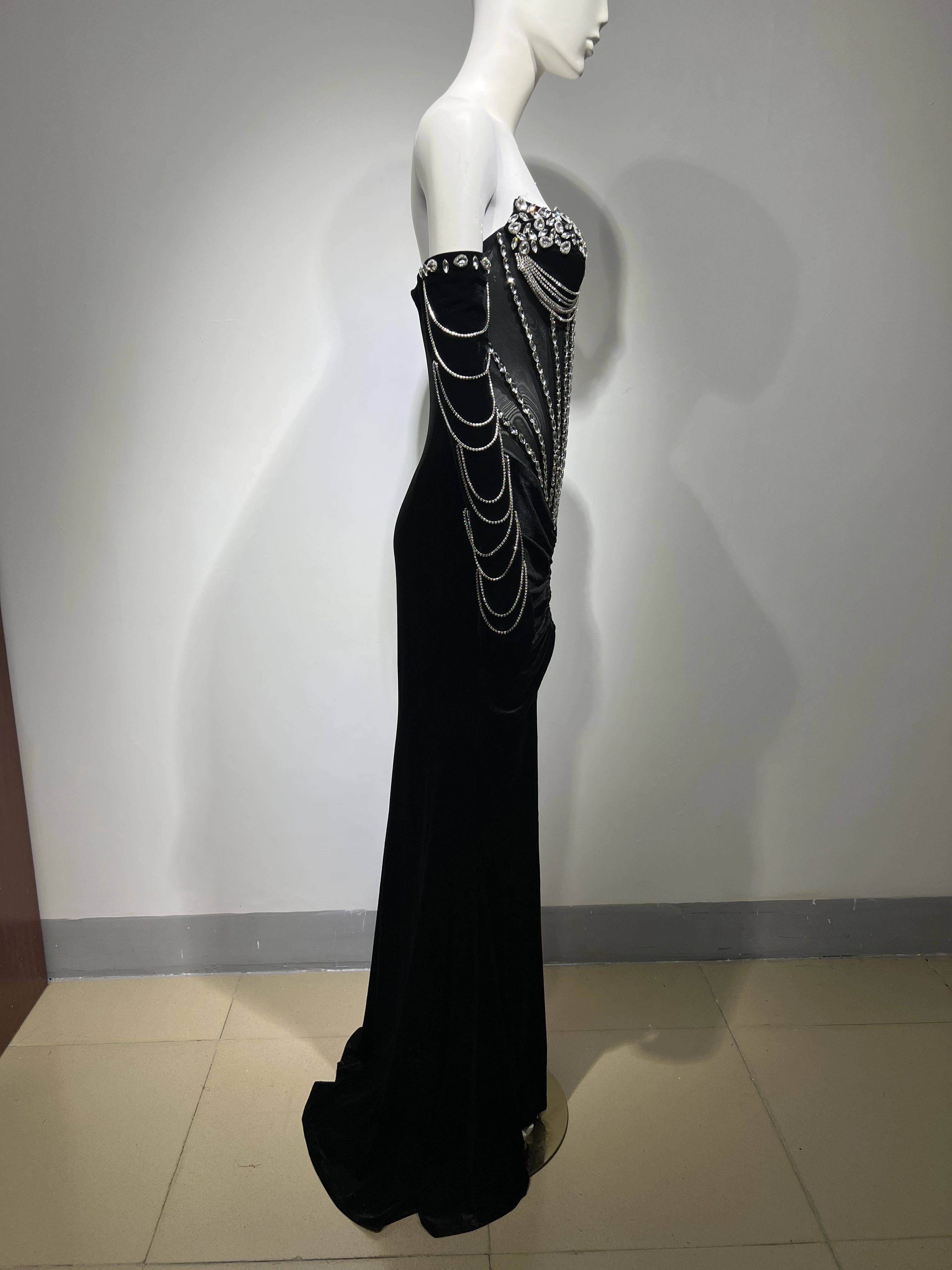 ED2467 New Arrival Luxury Dresses Women Crystal Long Sleeve Slinky Bodycon Club Chain Dress
