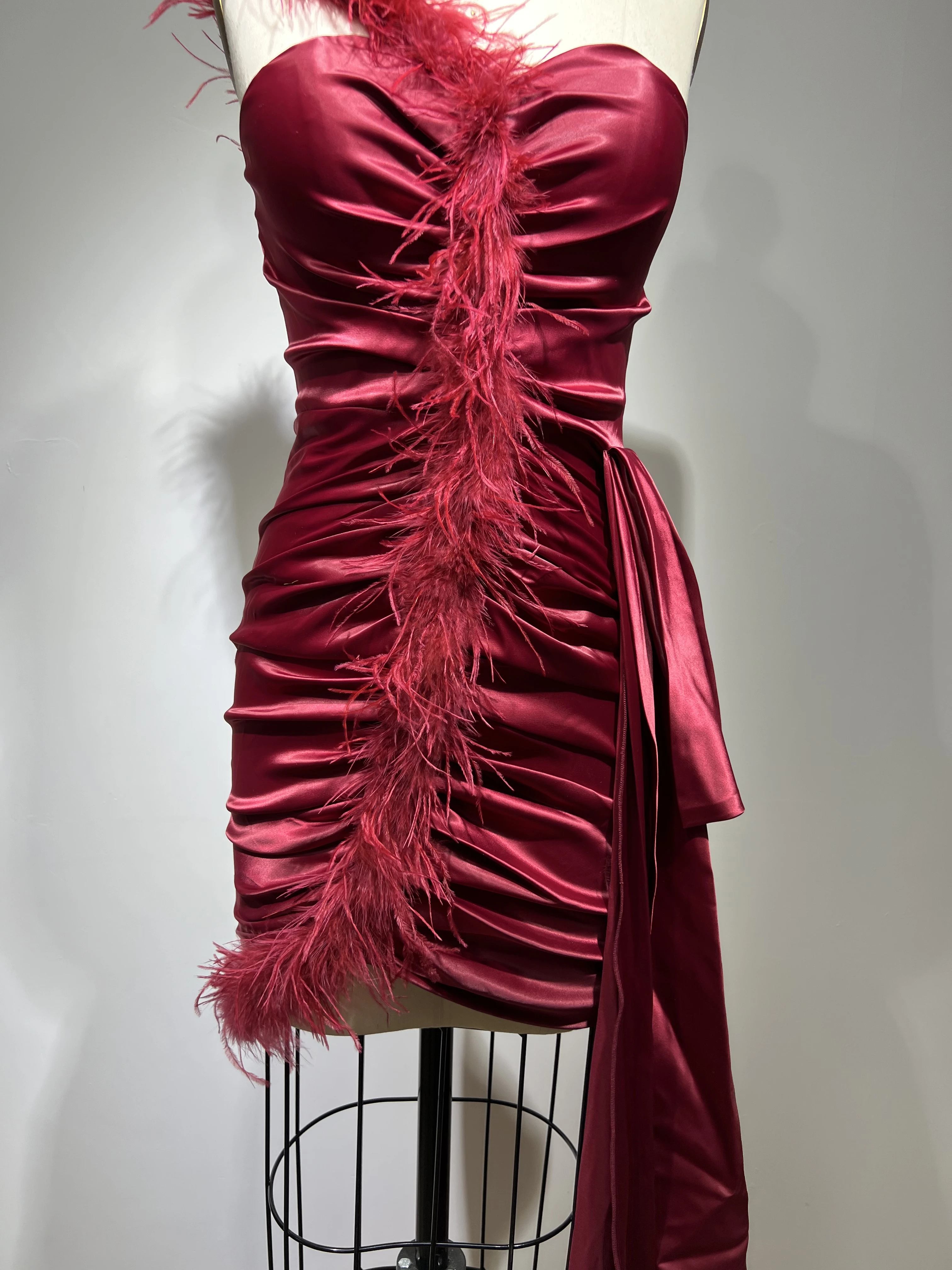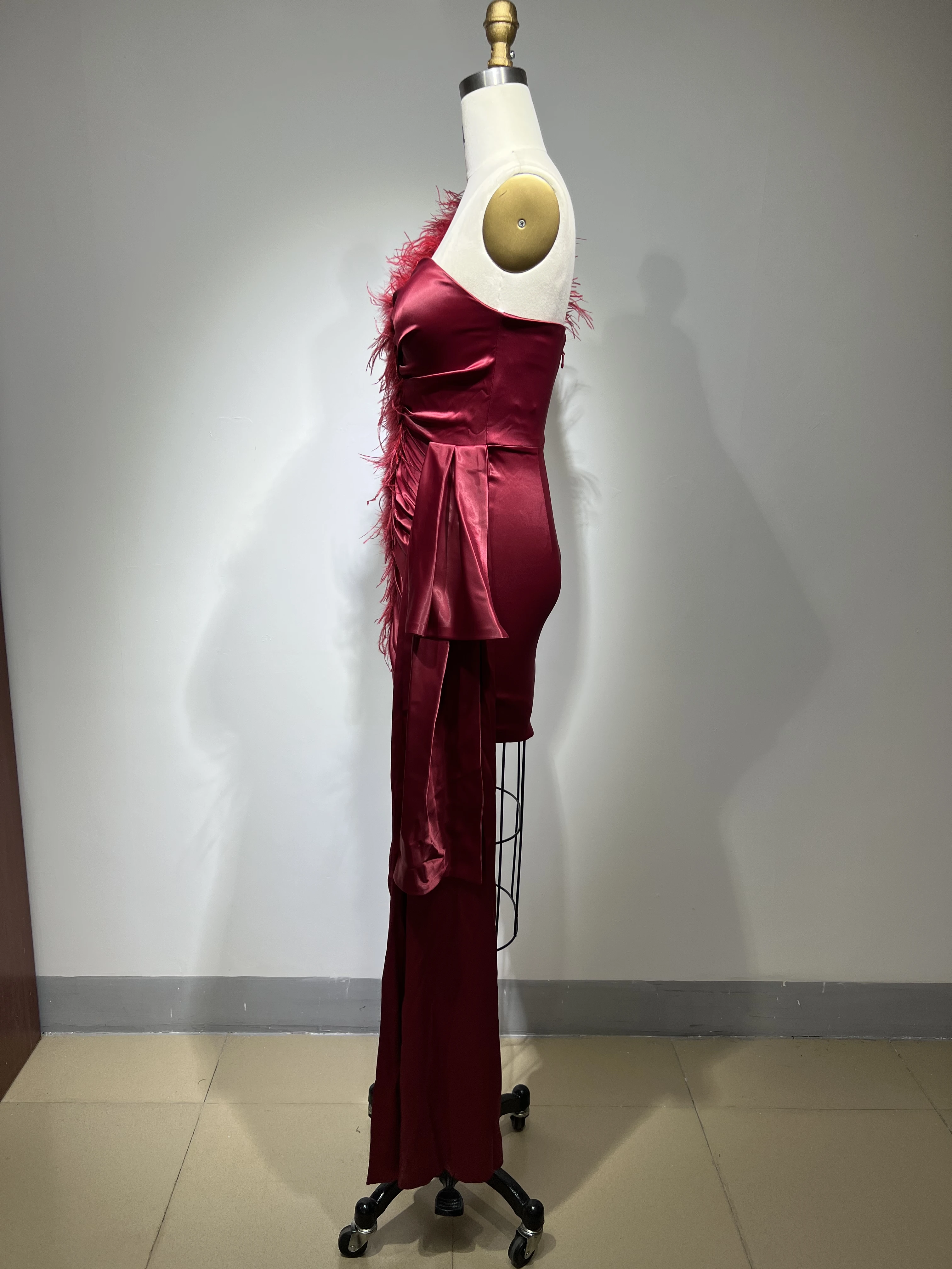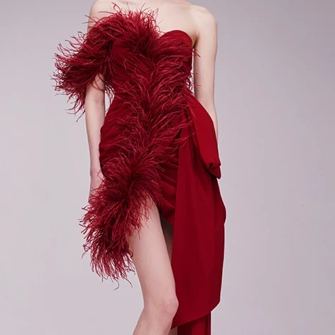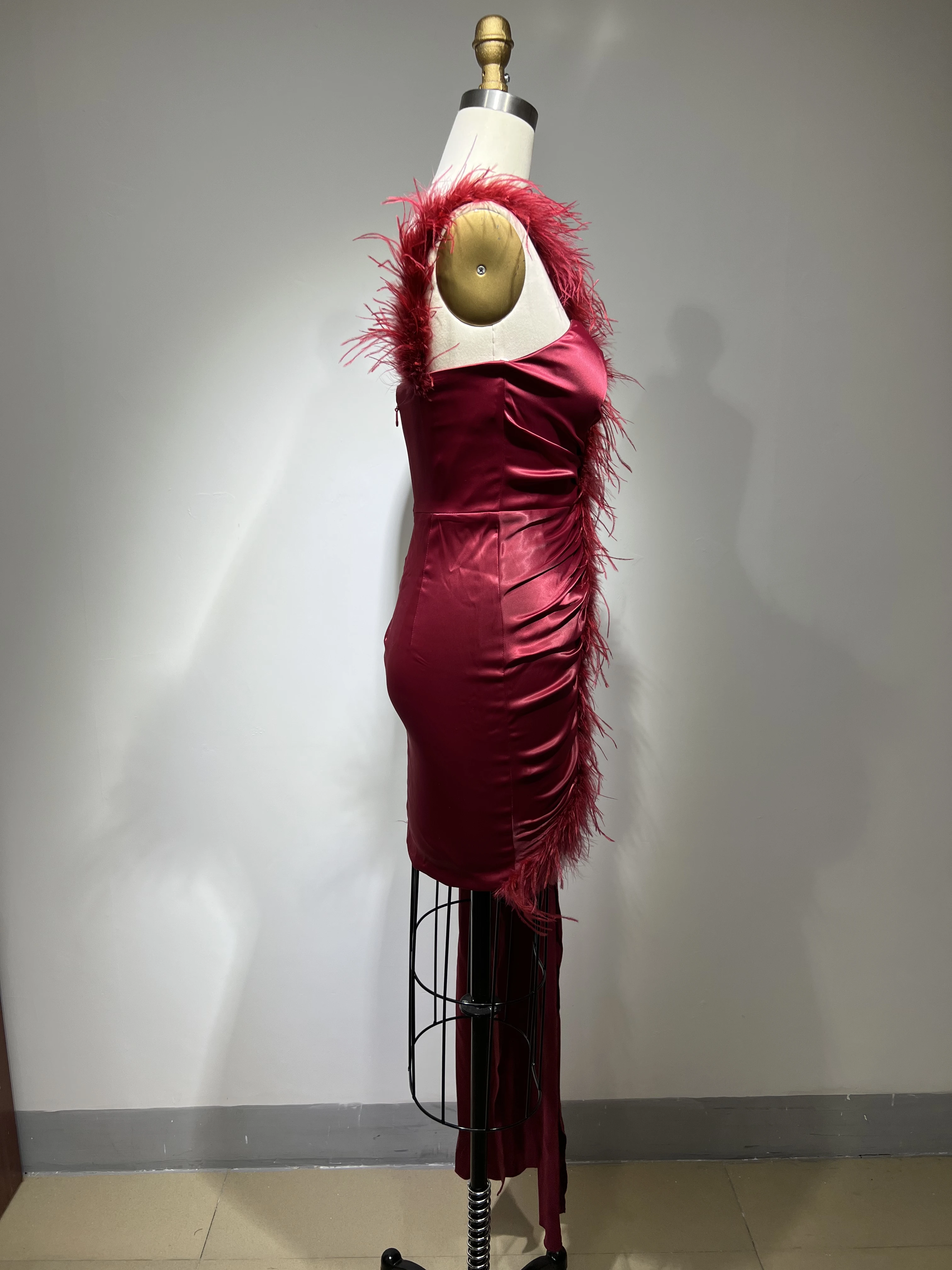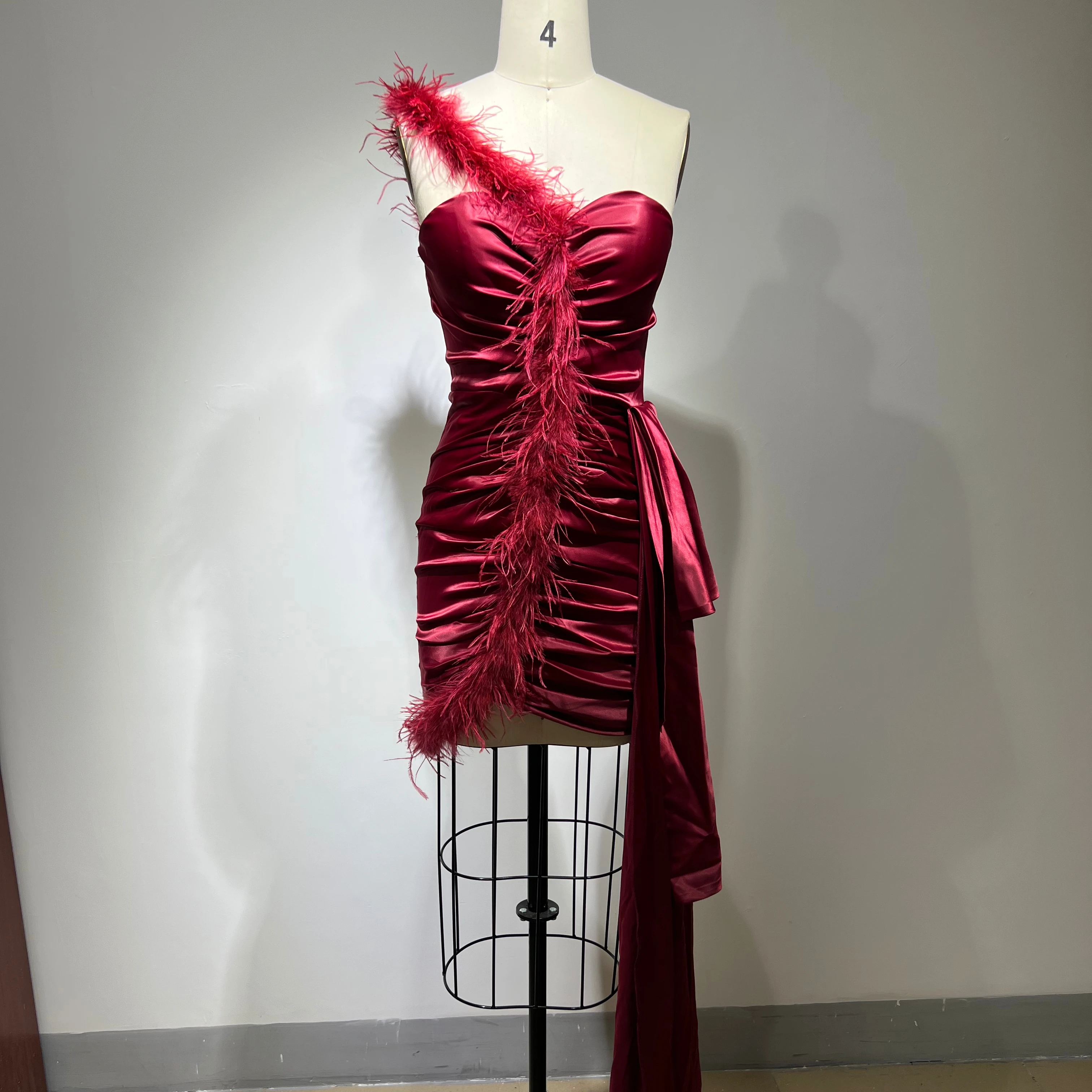 ED2476 Red Reception Dress Sexy Satin Dresses Women Elegant With Feathers for Women Party