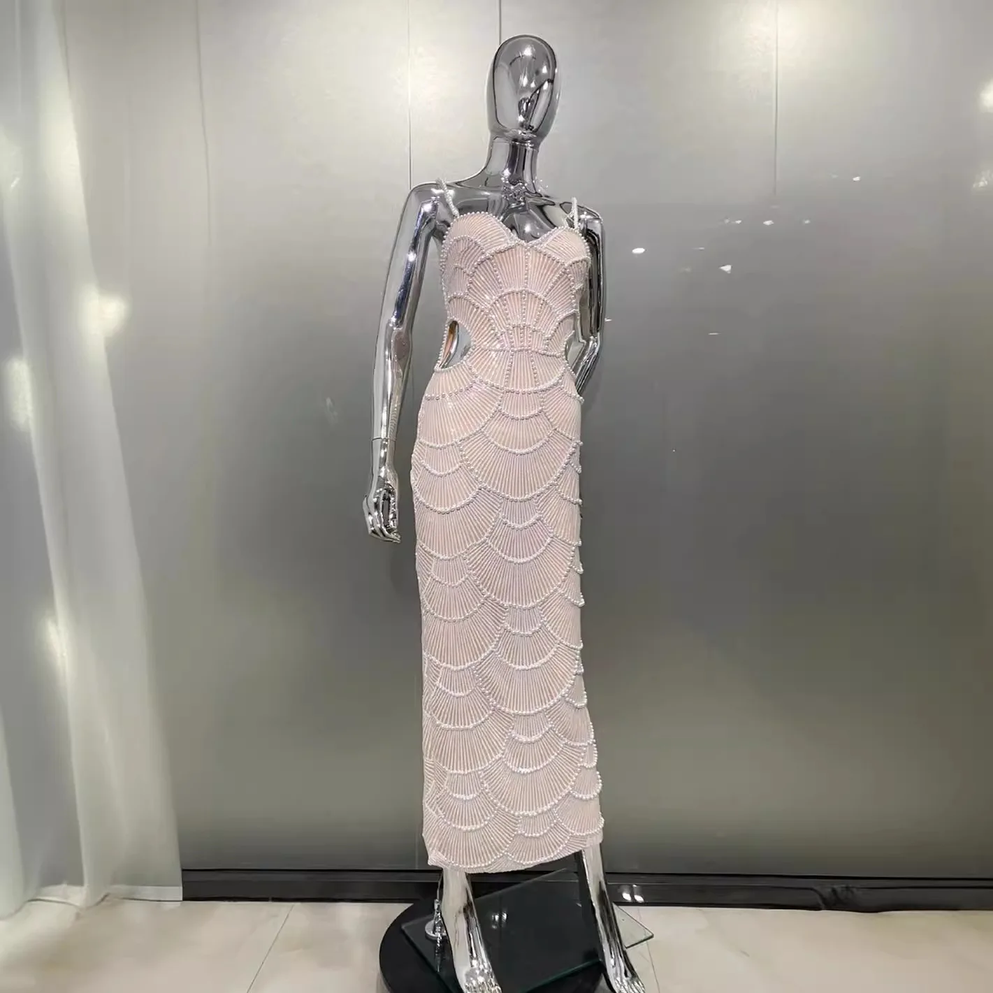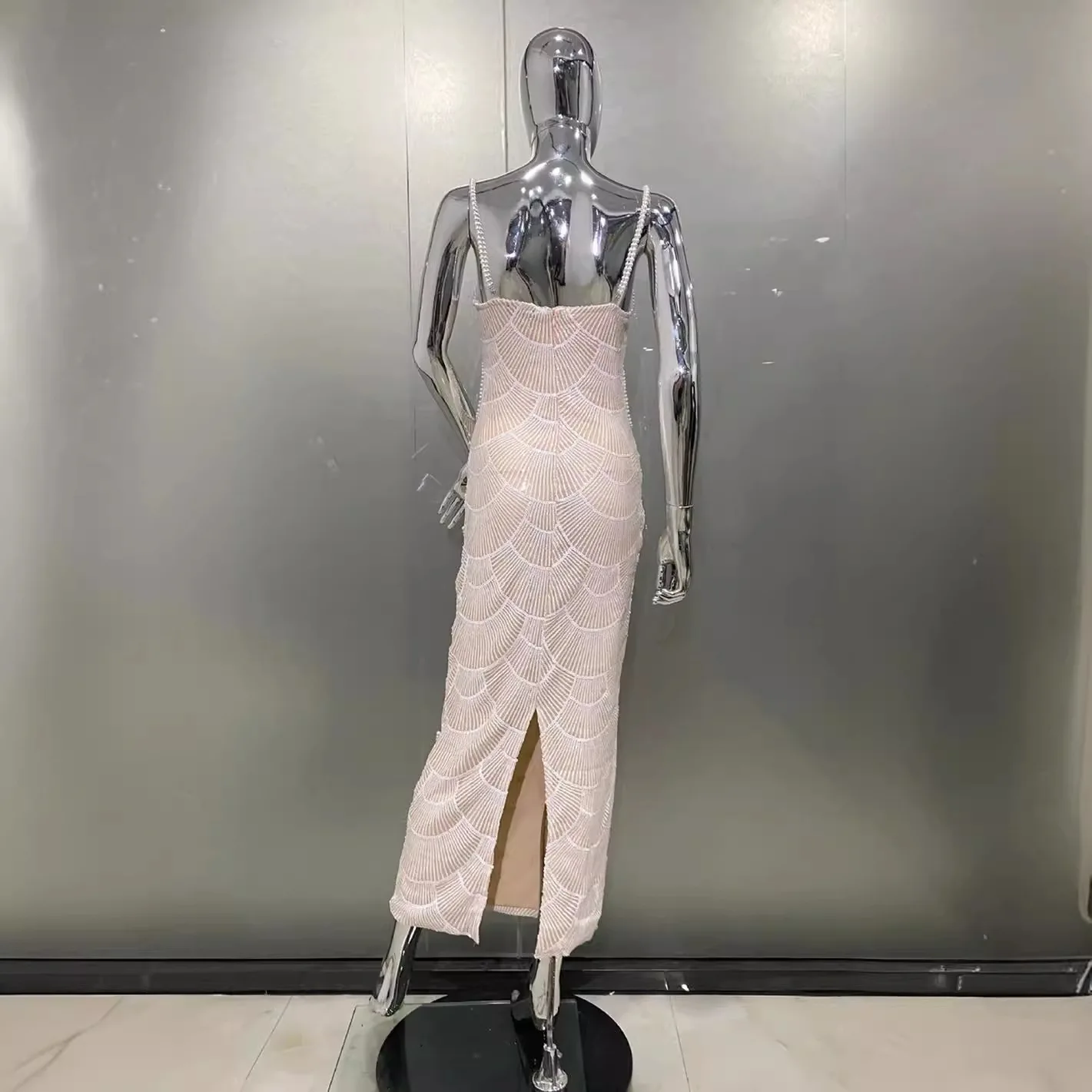 SB3008 Women Sexy Mesh Pearls Bodycon Dress Luxury Sleeveless Party Banquet Evening Dresses Women Lady Elegant