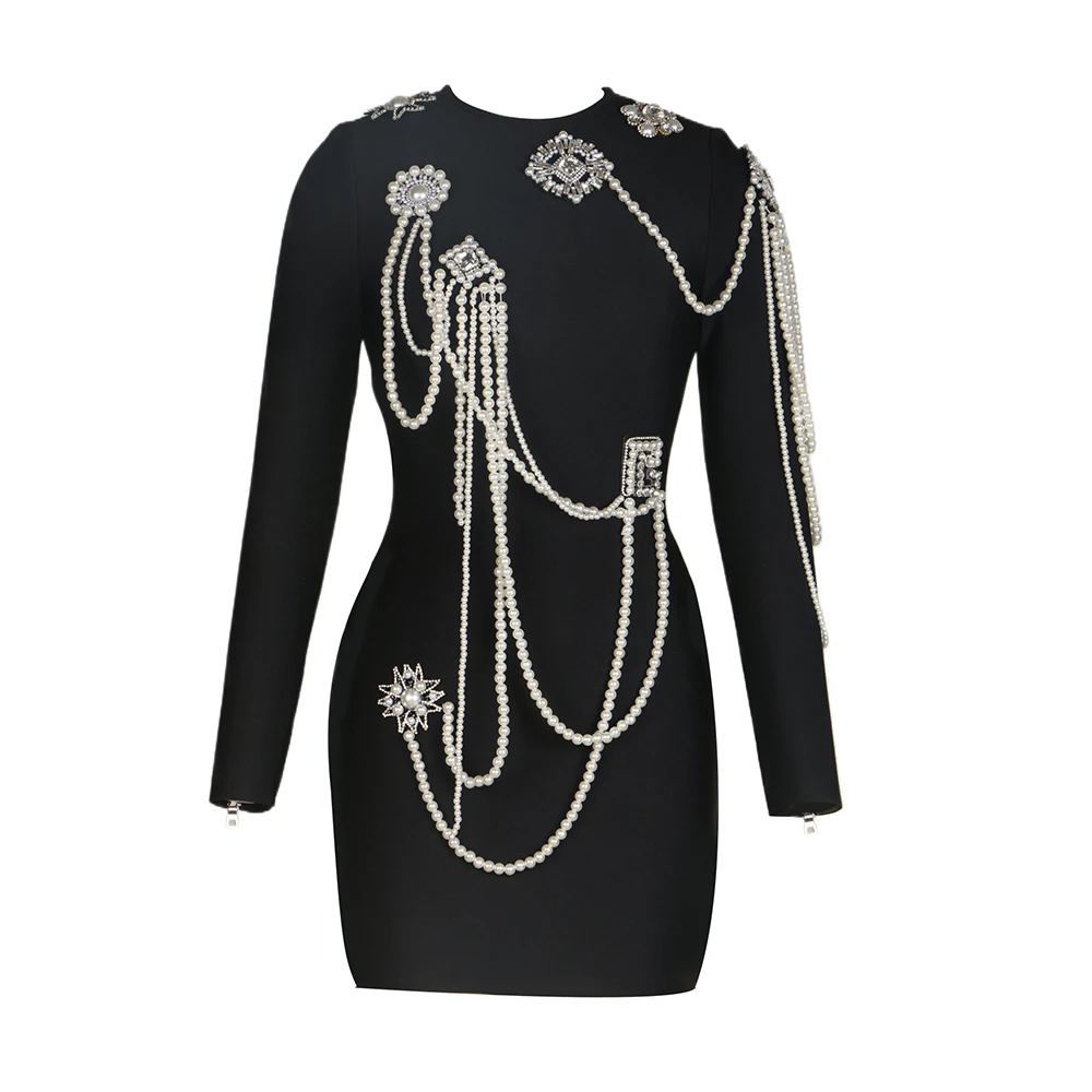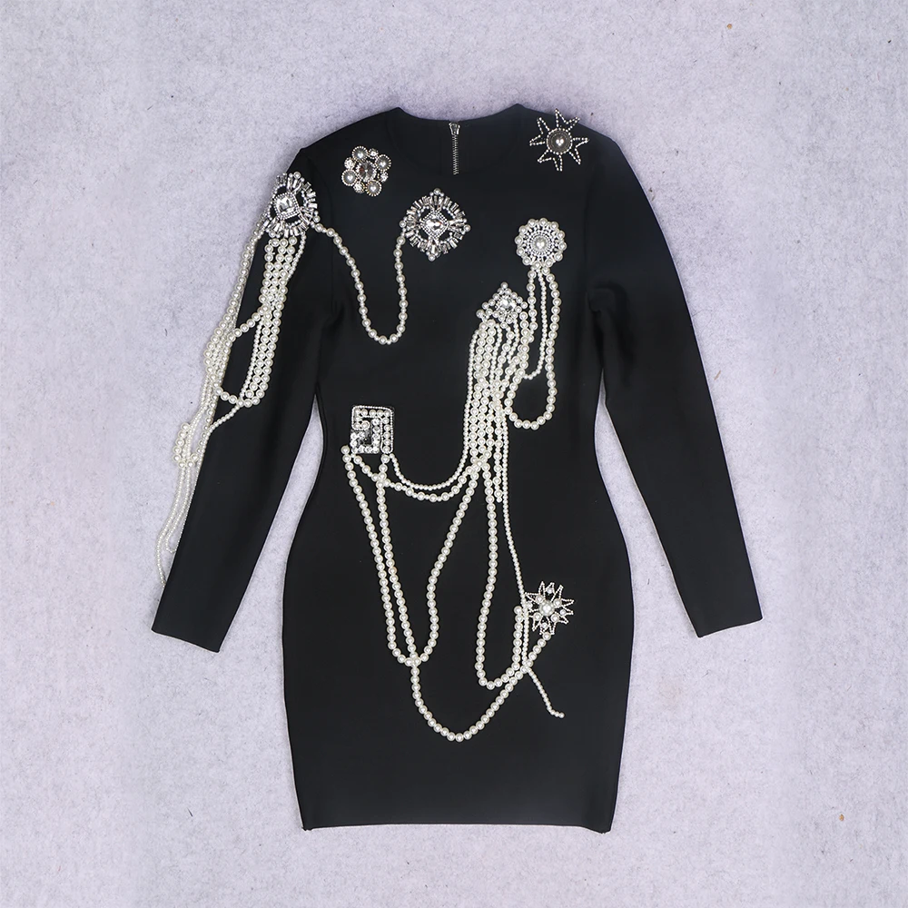 LS2212 2023 New Arrivals Sparkly Long Sleeves Pearls Beaded Bandage Dress for Women Birthday Party Evening Dresses