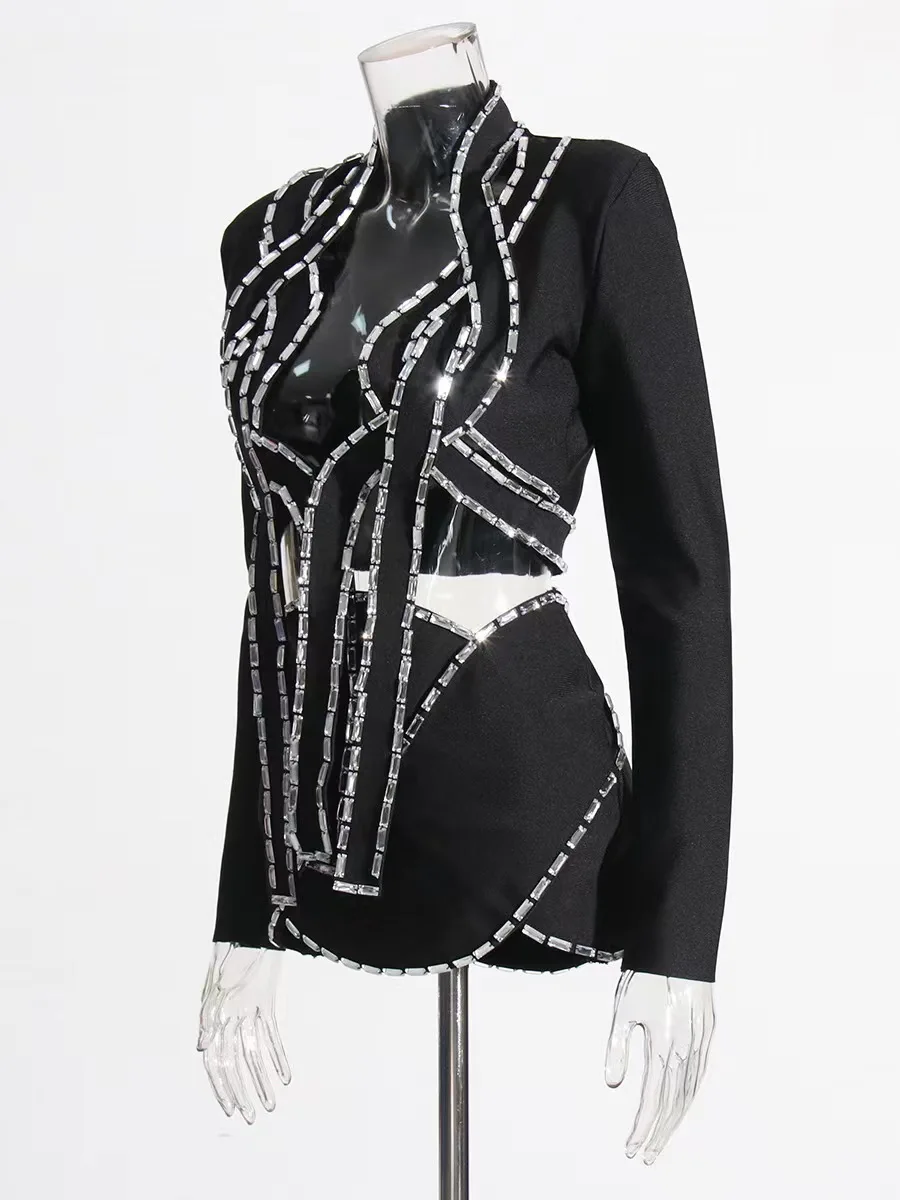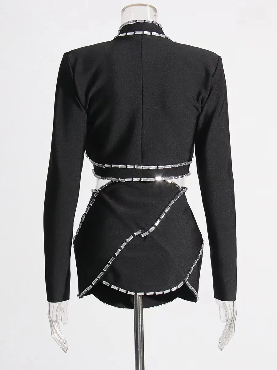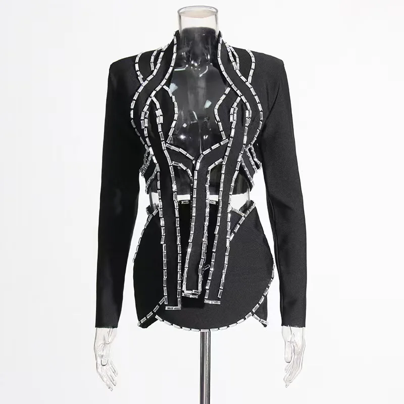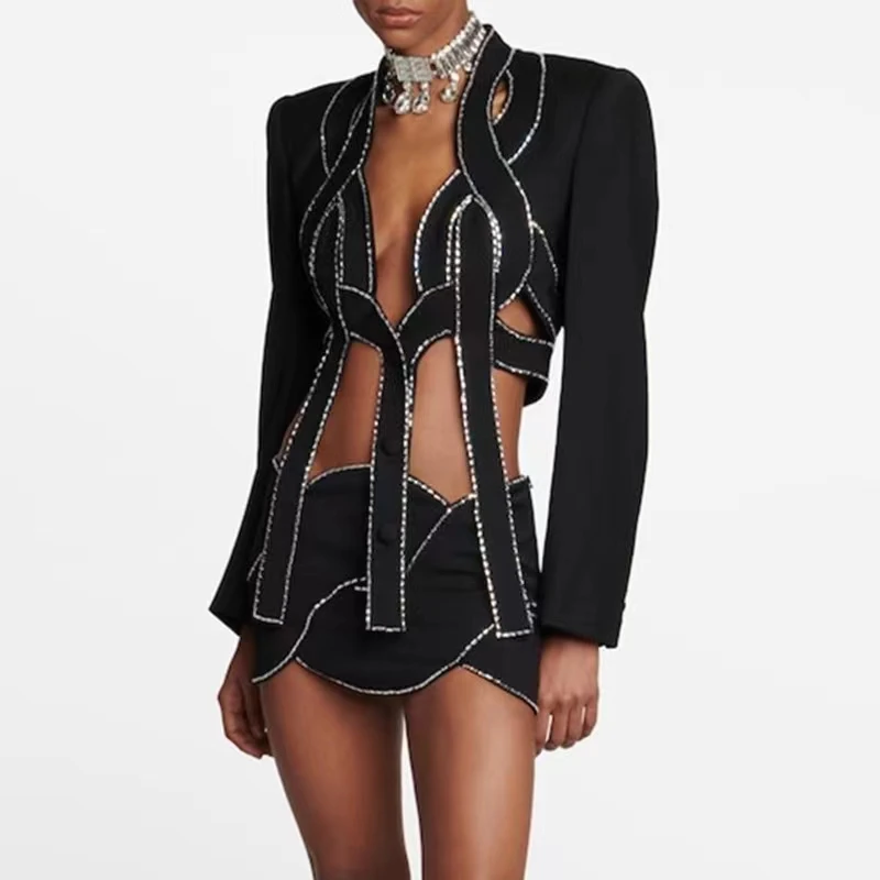 SR2290 Luxury Women Dresses Spring Autumn Crystal Two Pieces Set Female Blazer Sexy Black Evening Dressing Ladies Prom Dressing