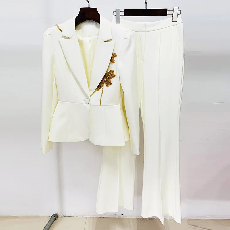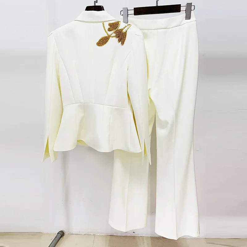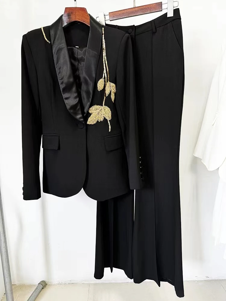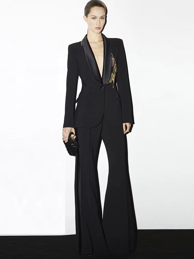 SR2285 Kimshein Hot Selling Fashion Women Clothing Long Beading Elegant Pants Set Women Two Piece Set
