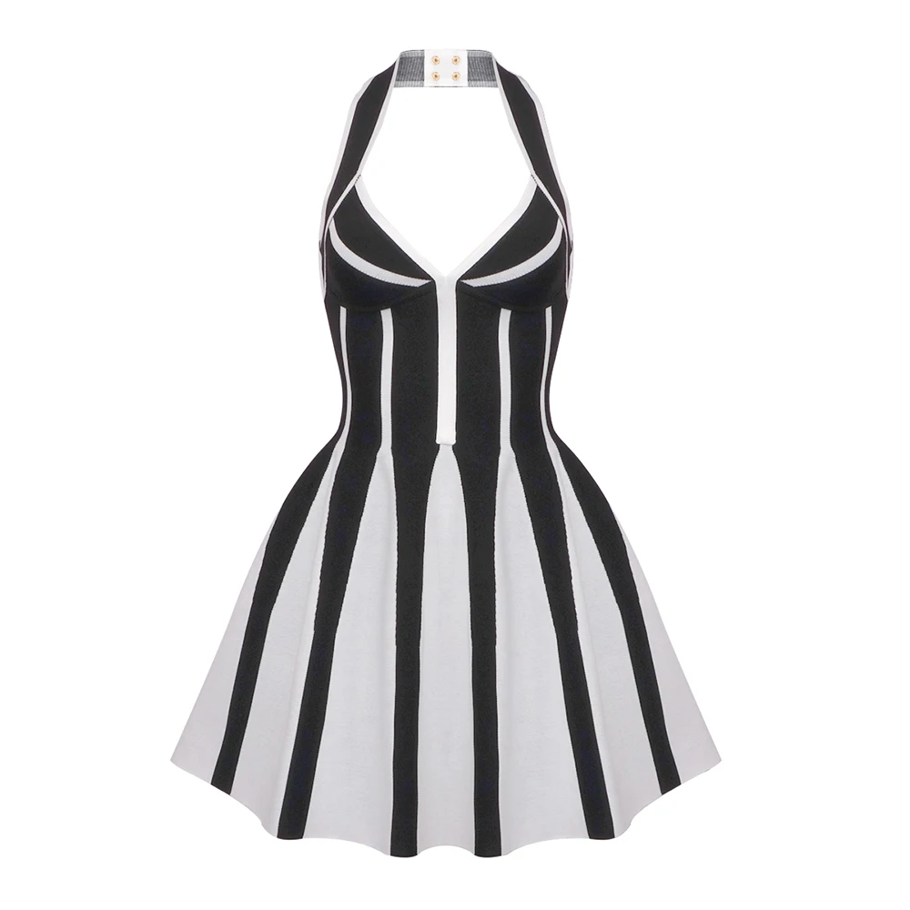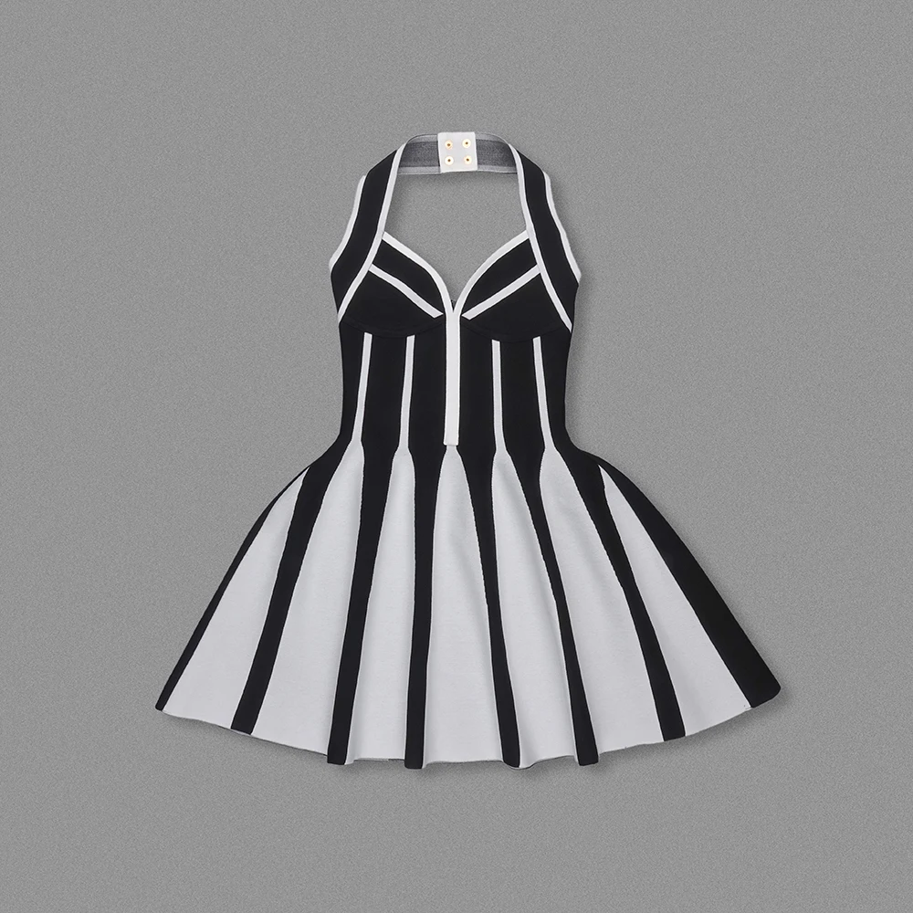 SB3240 Short Pleated Dress for Women Halter Neck Mini Dress Elegant Knitting Clothes Classy Ladies Bodycon Dresses