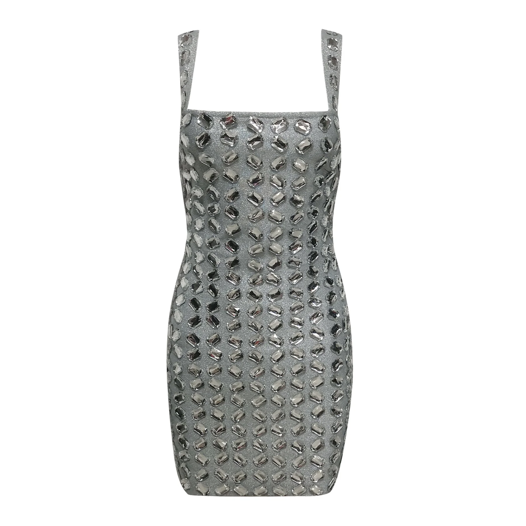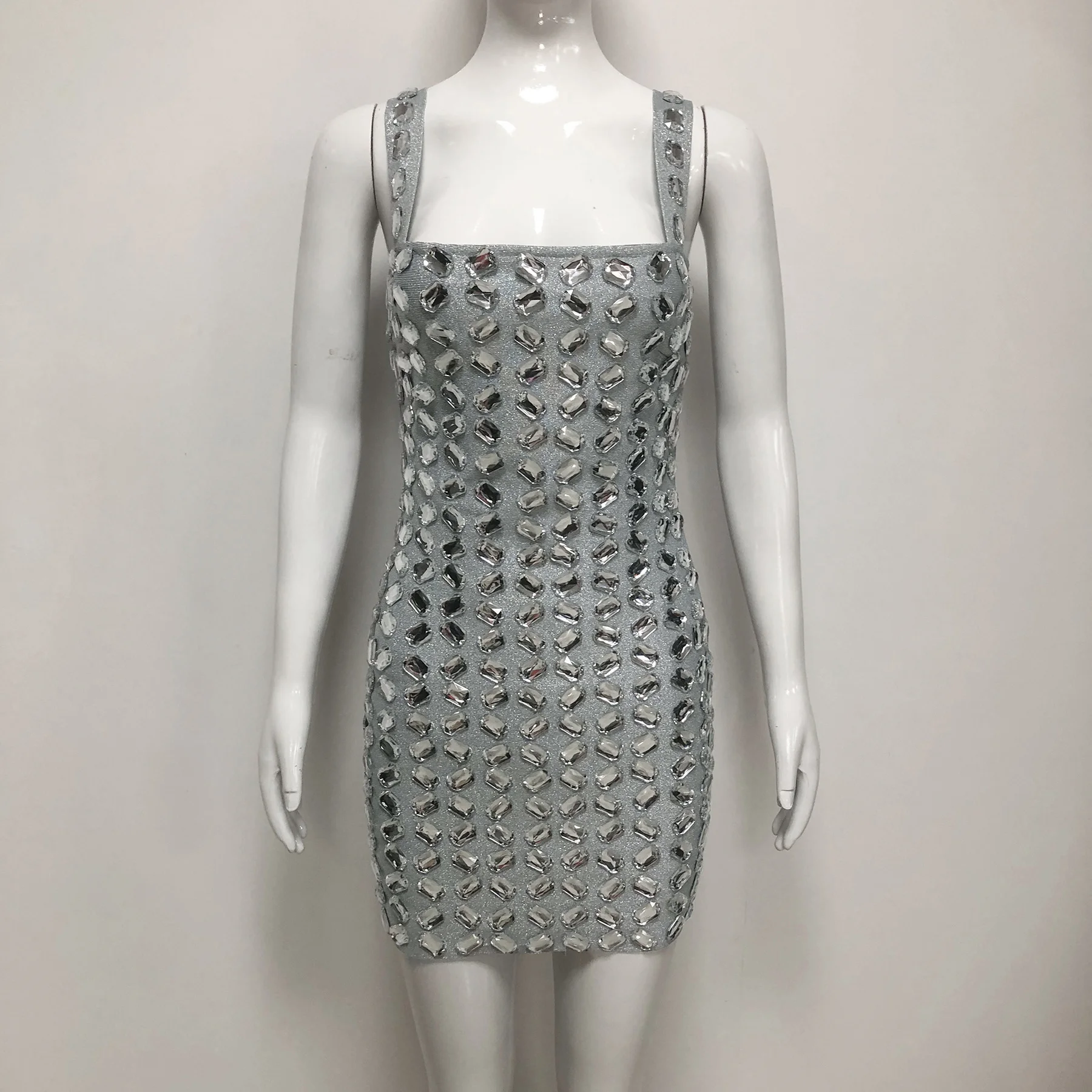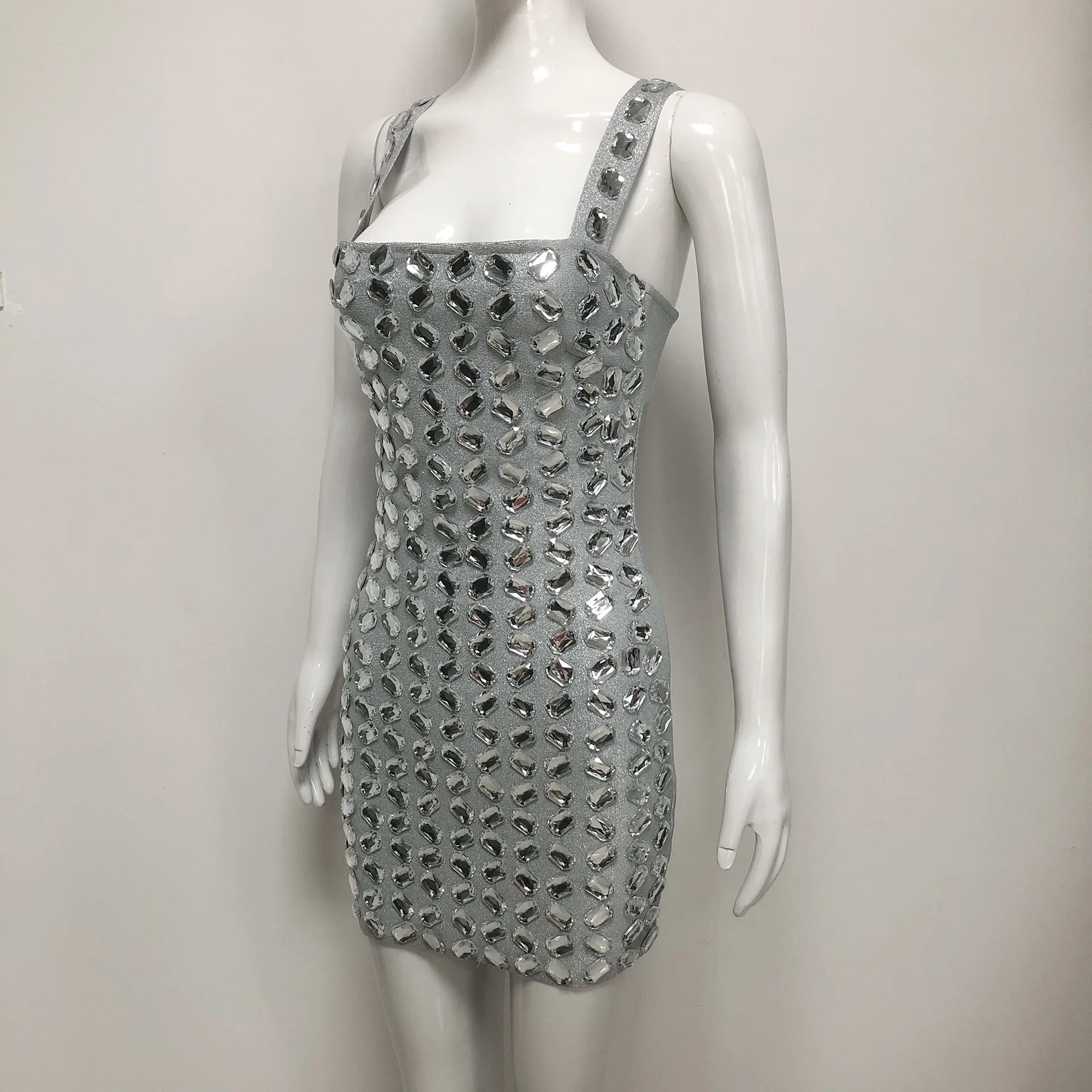 SB3709 New Fashion Sleeveless Women Dress Heavy Hand Rhinestone Bodycon Mini Dresses Club Party Bandage Dress