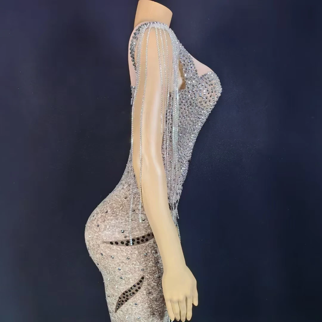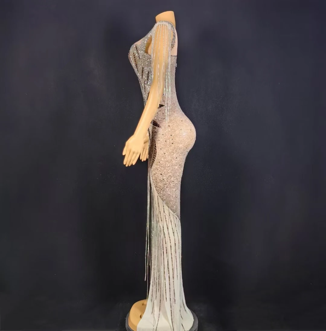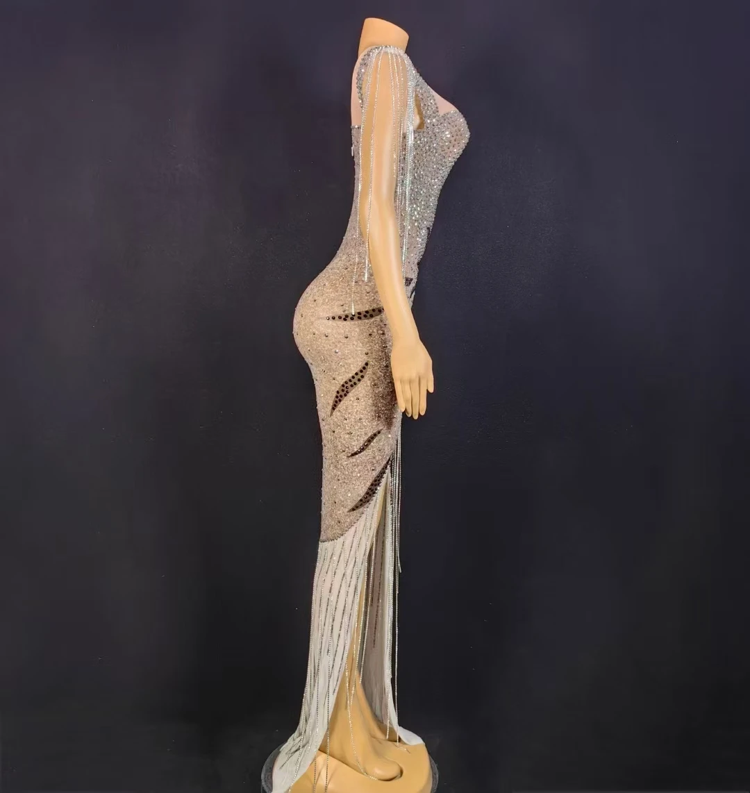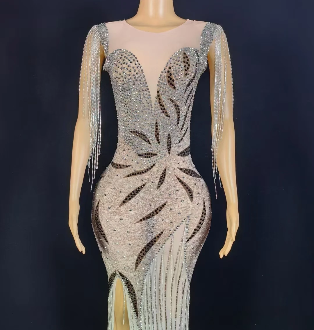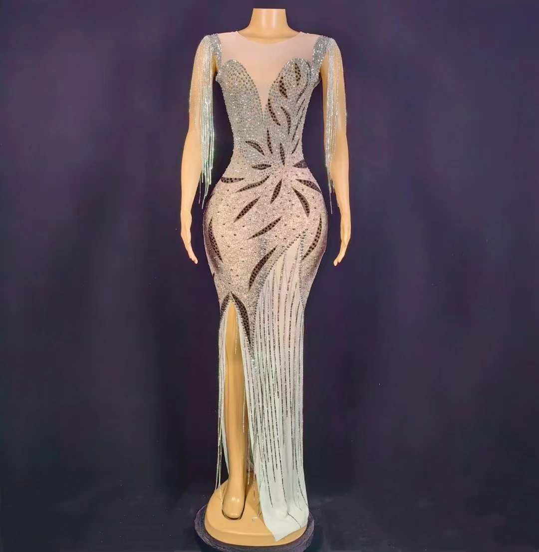 AD2355 New Arrivals Luxury Crystal Tassel Evening Dresses Sexy Night Handmade Women Dresses With High Slit
