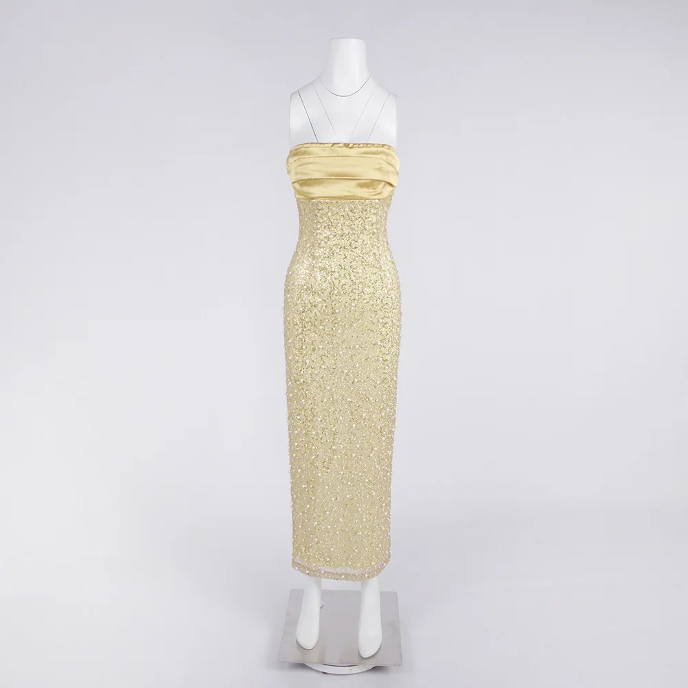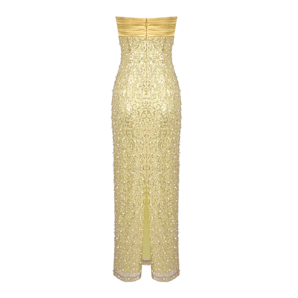 SB3449 Clubwear Bling Gold Sequin Dress Off Shoulder Sleeveless Maxi Dress With Pearls Bodycon Party Dresses