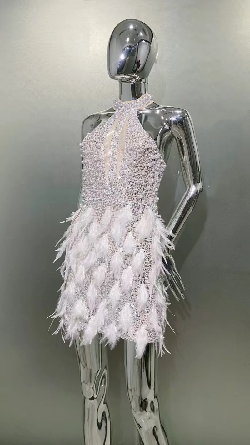ED2569 Elegant Dresses for Women Luxury Evening Dress With Feathers Sexy Sequin Dress for Cocktail Party