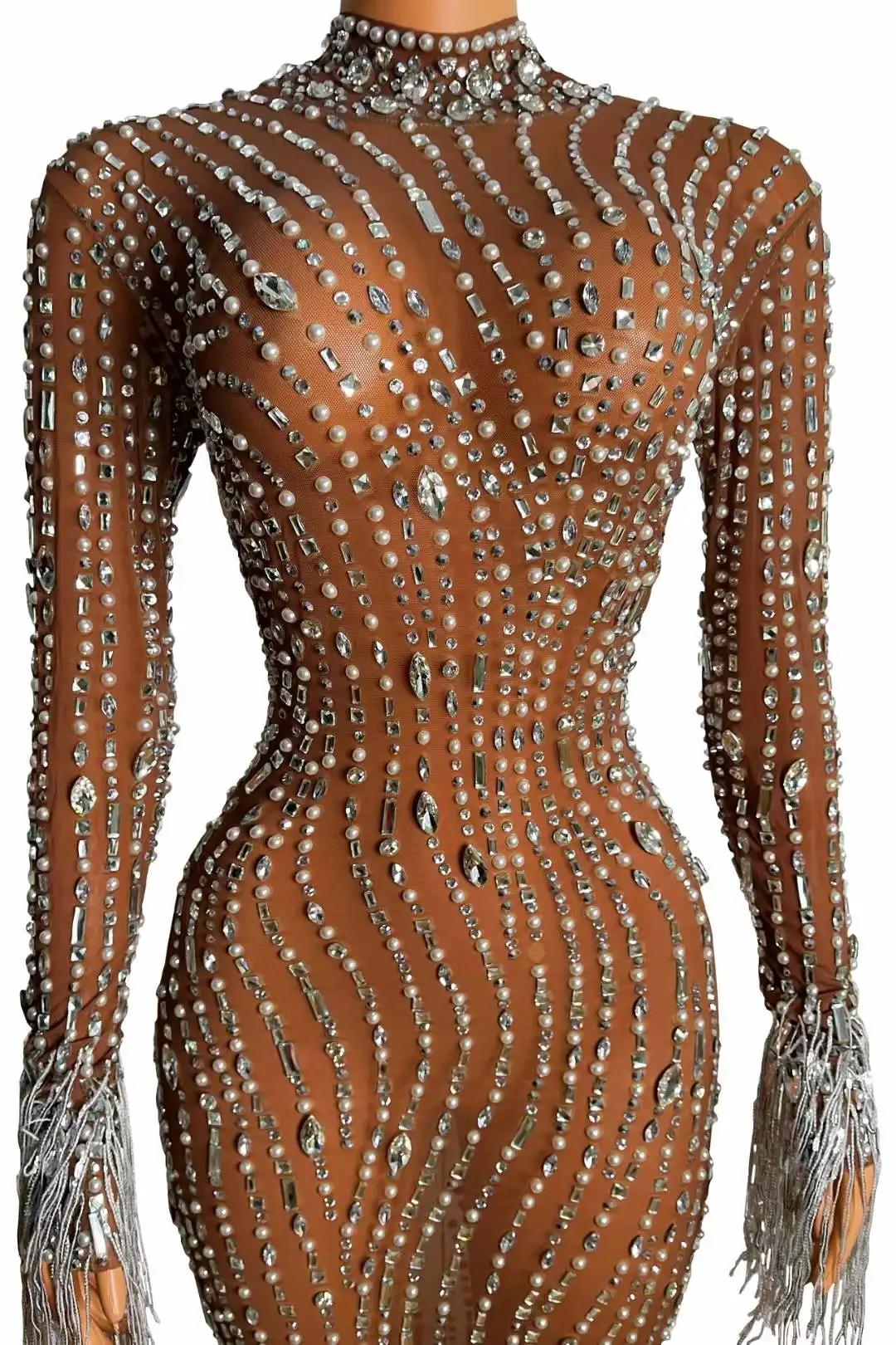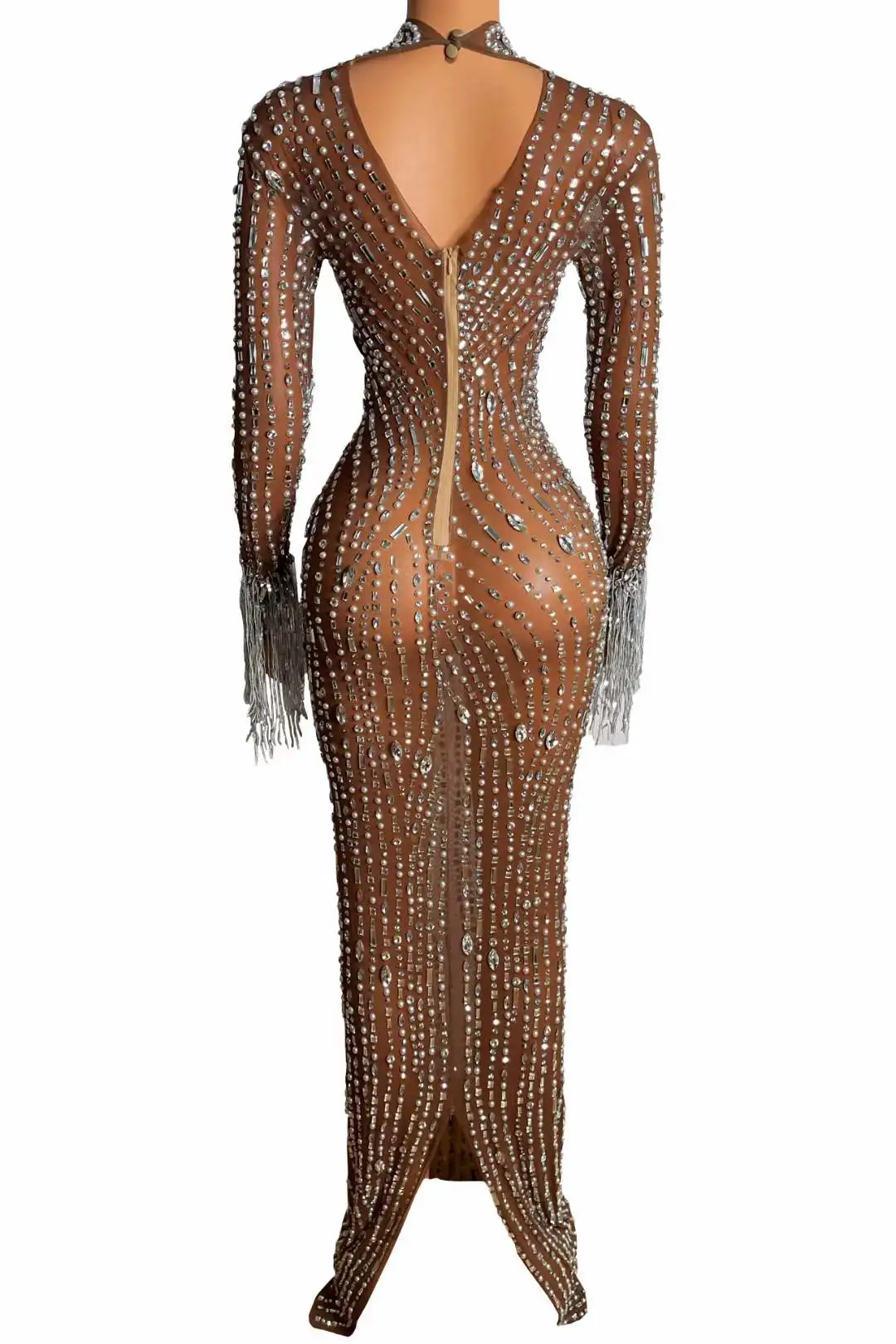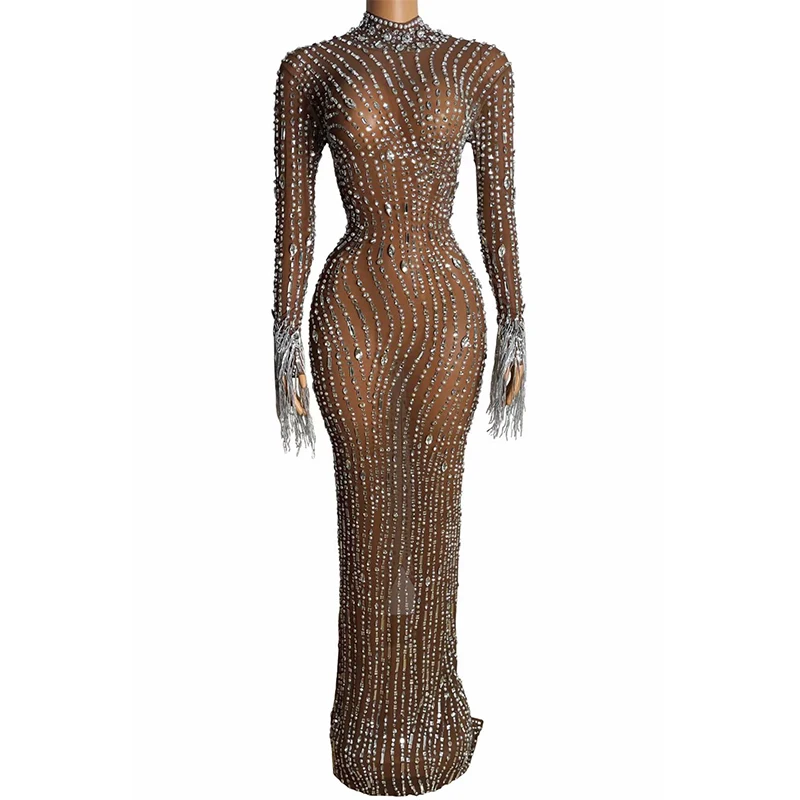 AD1130 Mermaid Silver or Grey Sparkly Gown Long Dresses Rhinestone Feather Luxury Casual Evening Dress Performance Wear