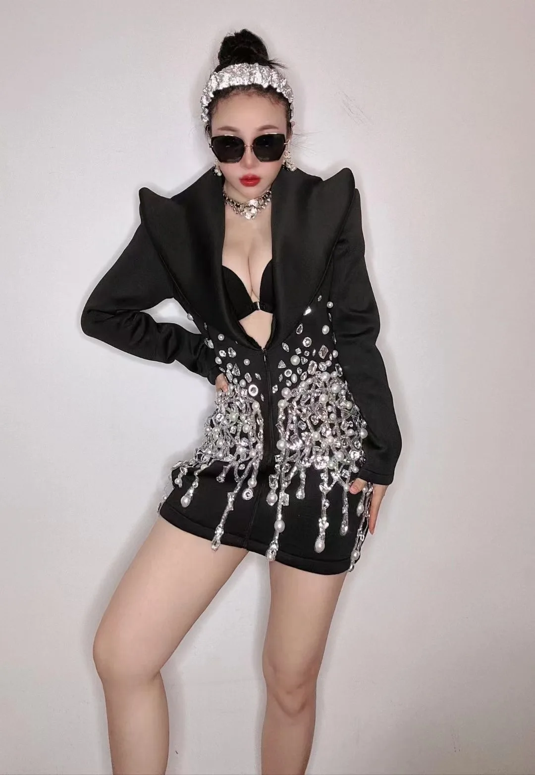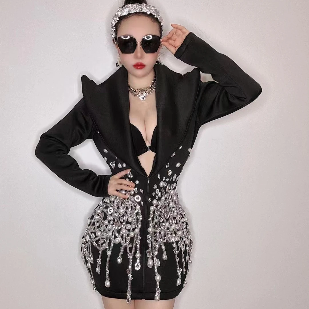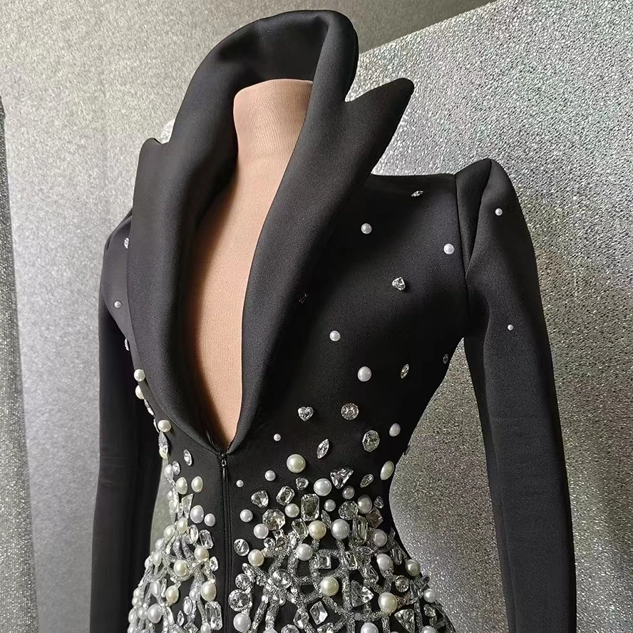 AD1596 Women Blazer Sequined Long Sleeve Costume Lady Suit Coat Luxurious Design Crystal Pearls Beaded Clothing