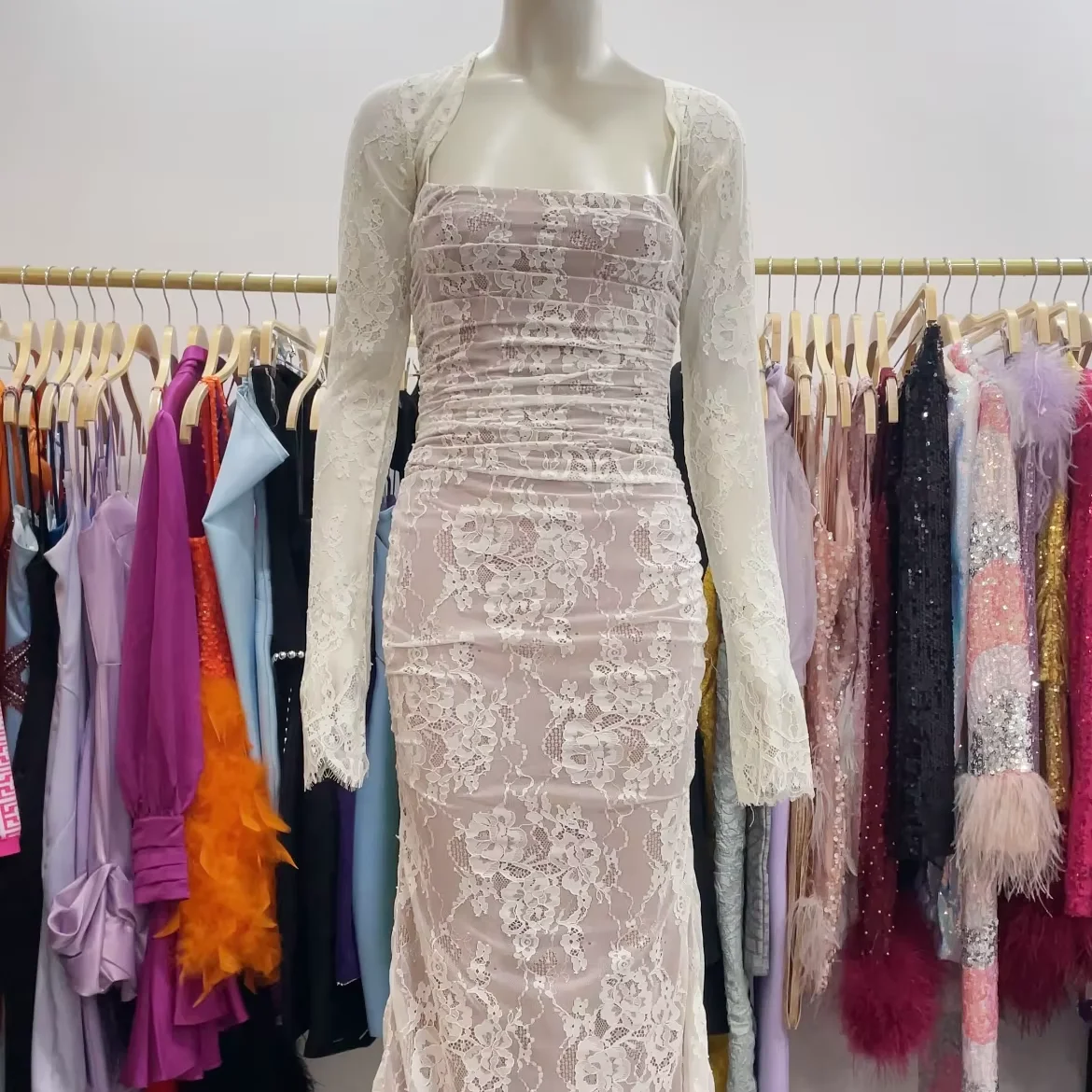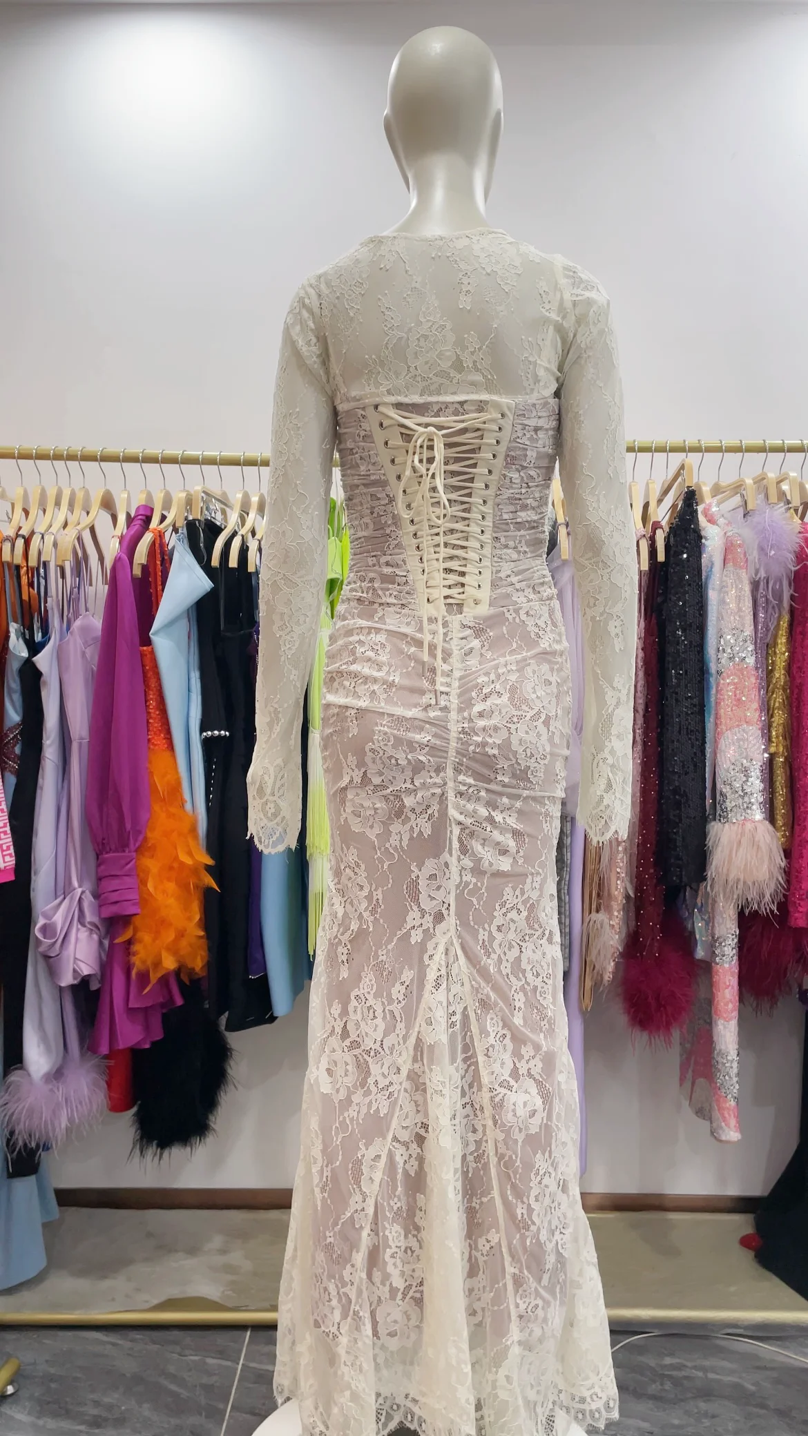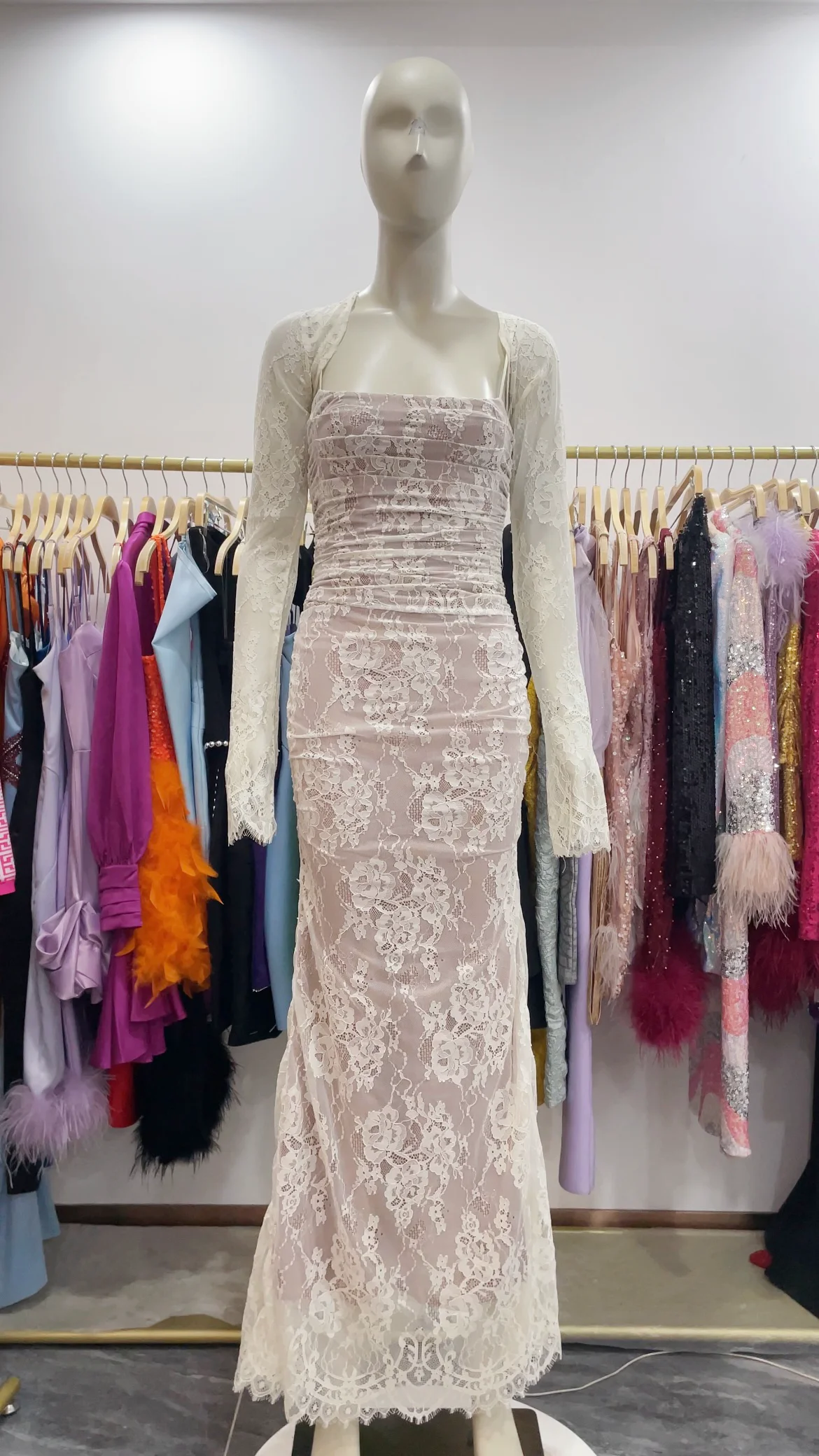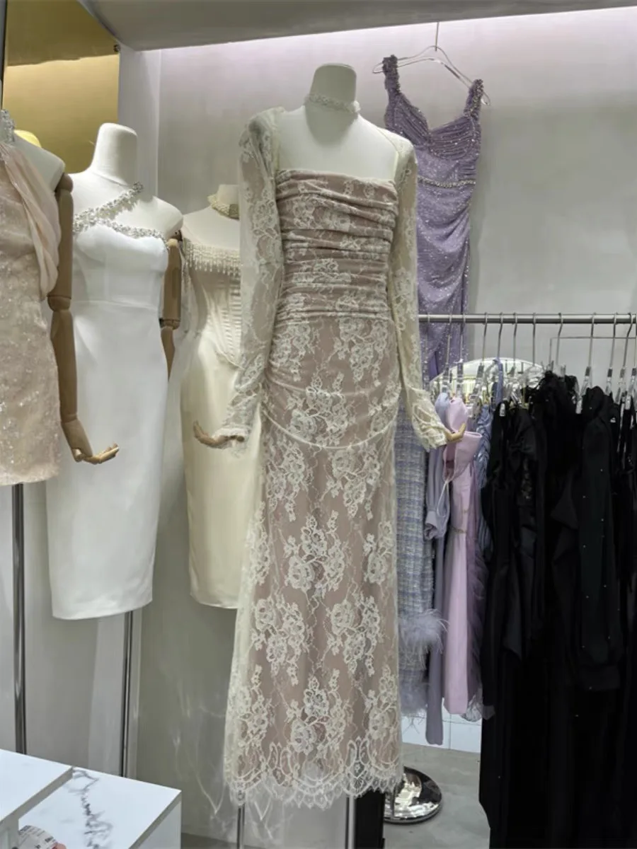 SB3110 Elegant Luxury Long Sleeve Two Pieces Dress Evening Prom Dress Bodycon Corset Fashion Maxi Lace Dress