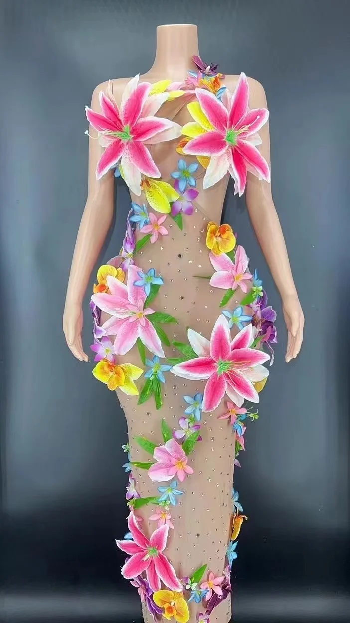 AD1139 Wholesale Clothing Vendor Flowers Beachwear Backless Sequins Transparent Dress Vestidos De Fiesta Mujer
