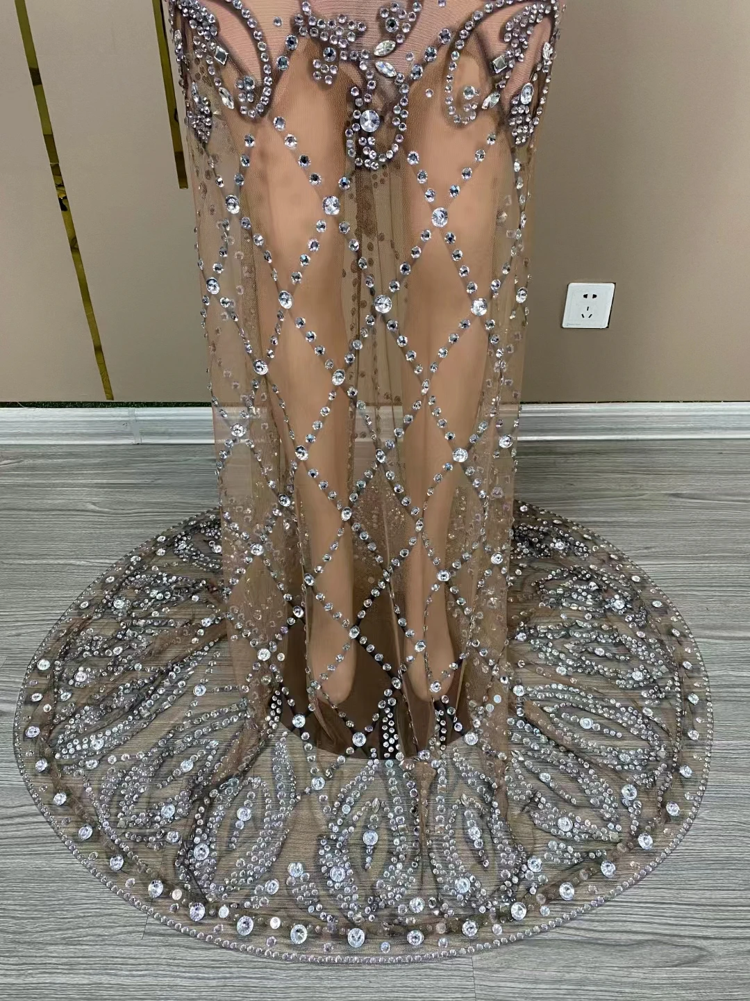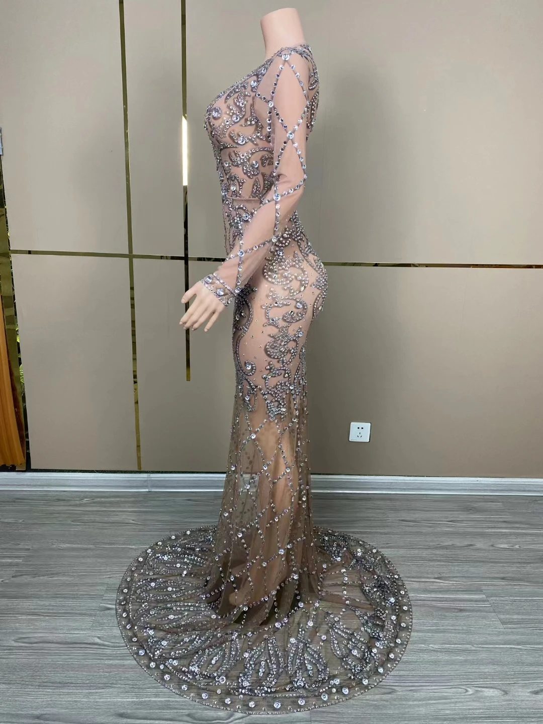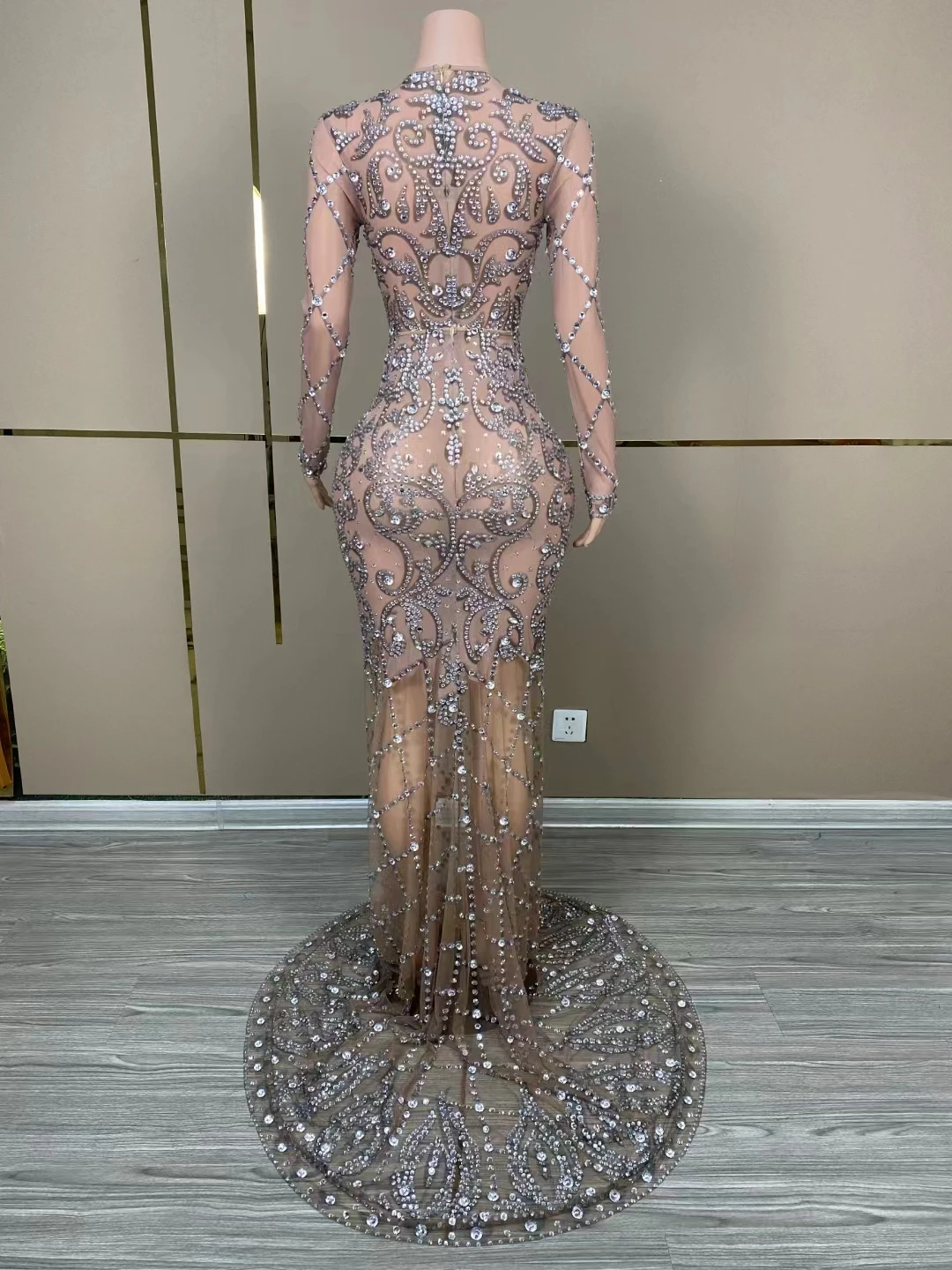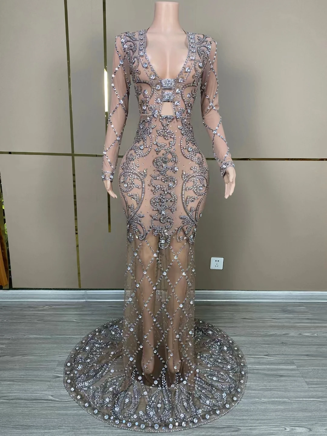 AD2042 Kimshein Fashion Trendy Women Clothing Long Sleeve Crystal Dress Women Rhinestone Sexy Dresses