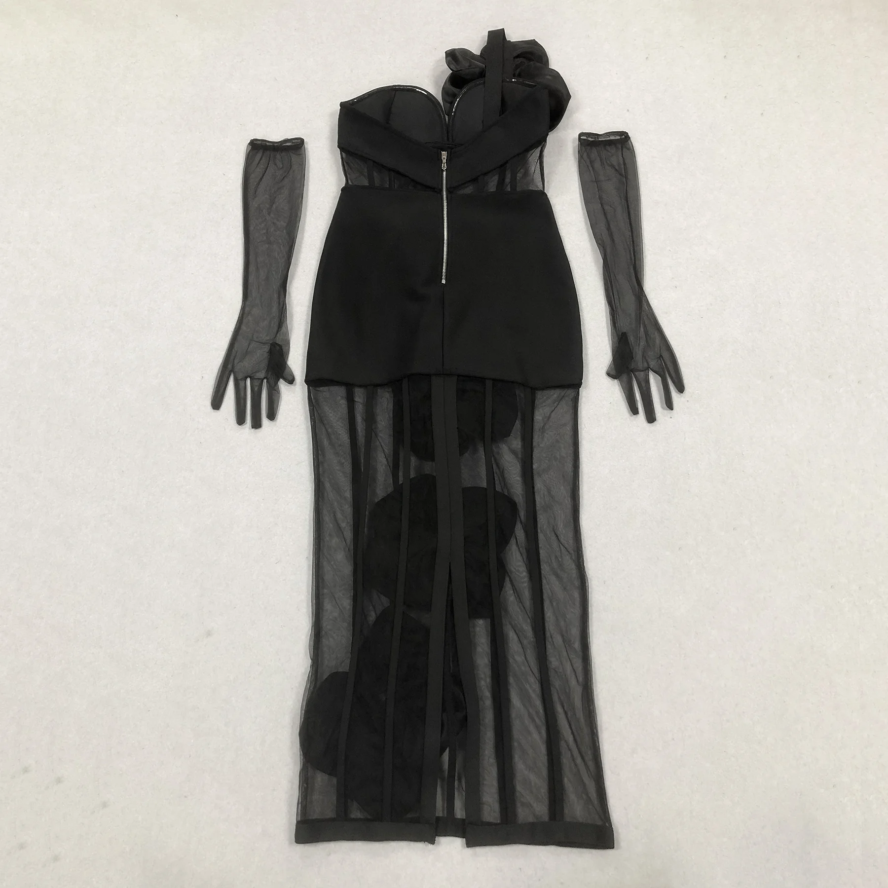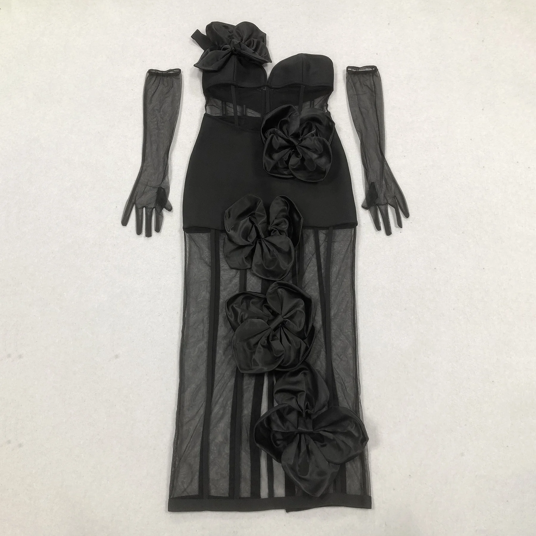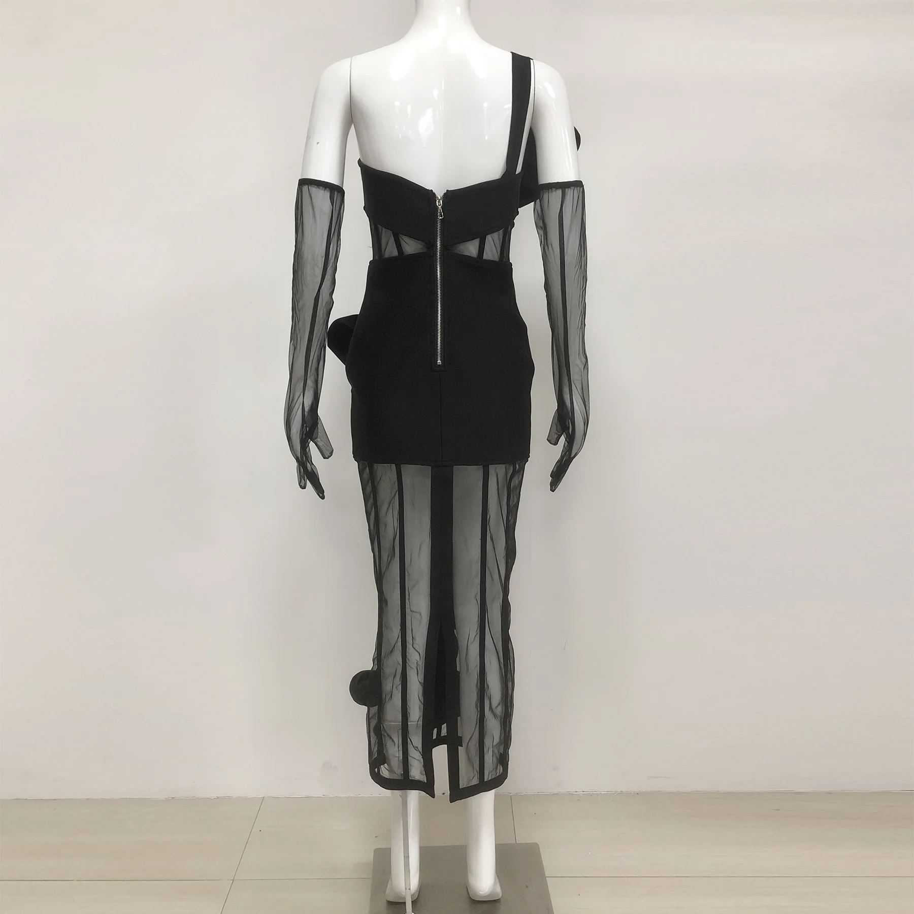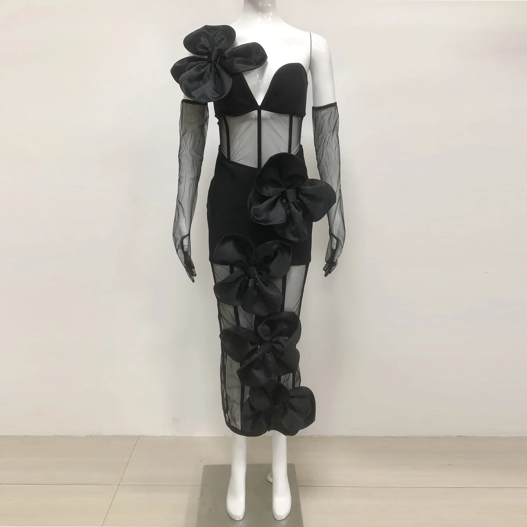 SB3432 Women's One Shoulder 3D Embroidered for Bandage Maxi Dress Sexy See-Through Empire Waistline Straight Party Club Evening