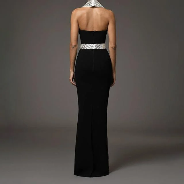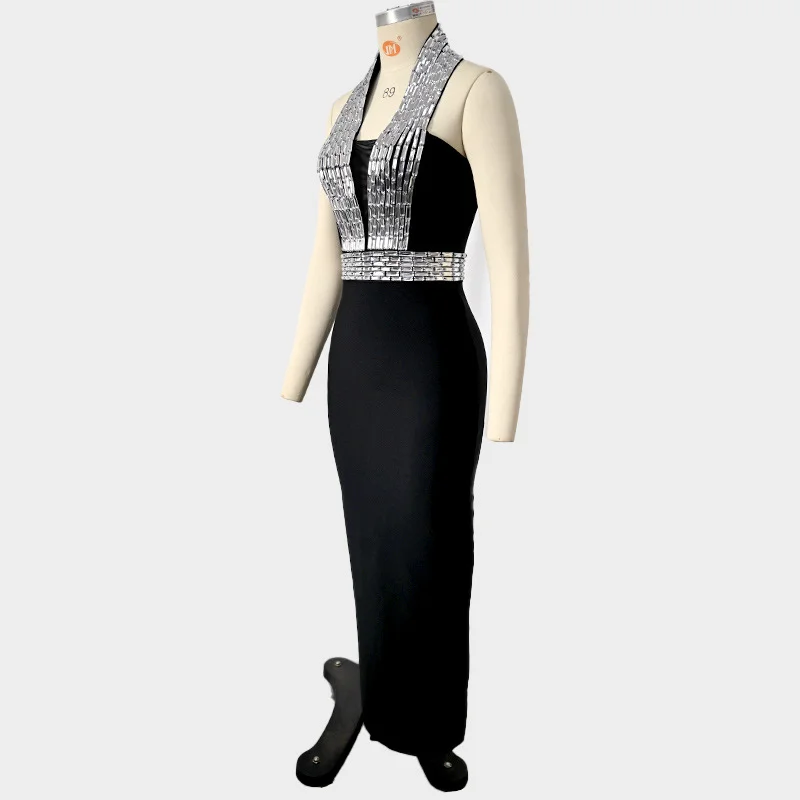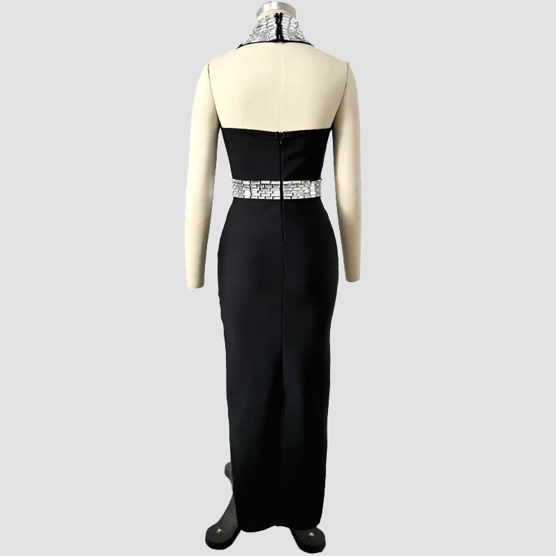 SB3684 Sexy Halter Diamonds Bandage Dress Elegant Bodycon Sleeveless Maxi Dress Evening Club Party Outfit for Women