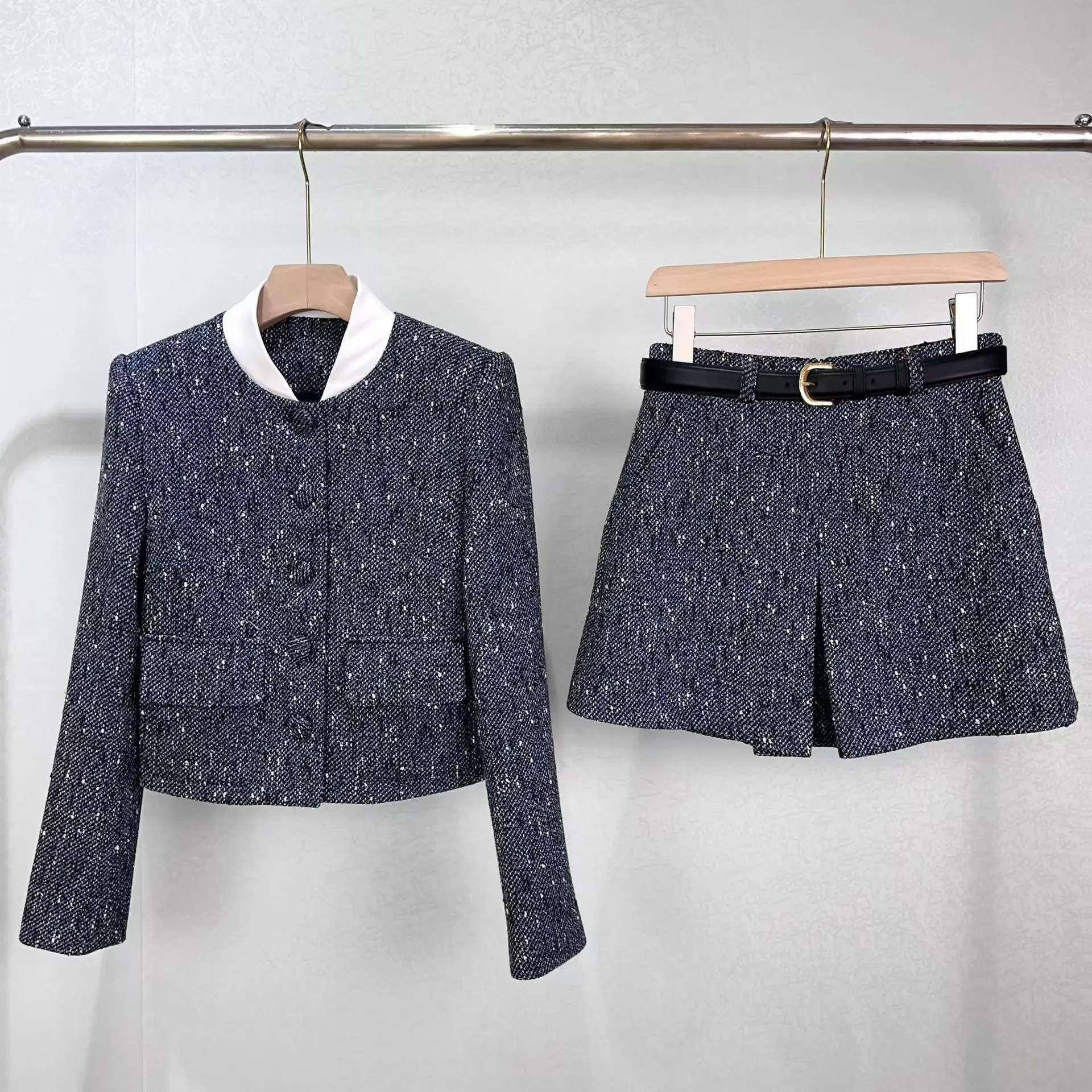 SR2381 Fashion Luxury Spring Autumn Skirts Set Women Long Sleeve Blazer Two Piece Sets Trend Party Wear