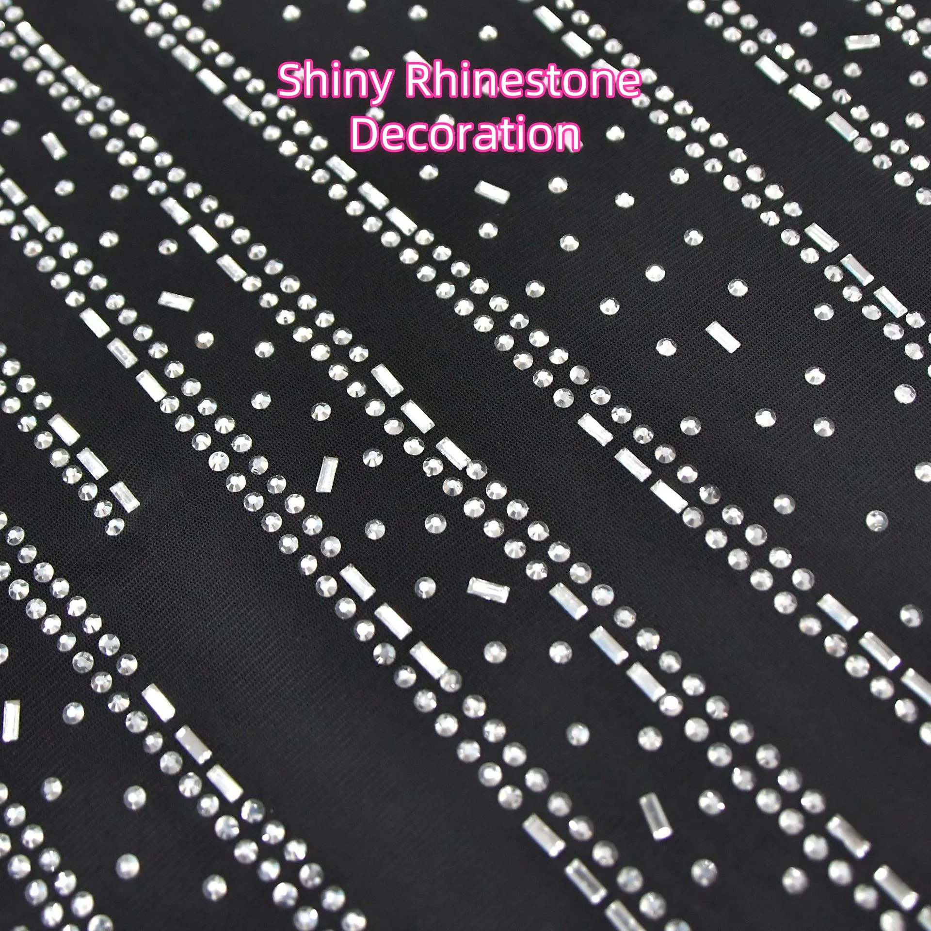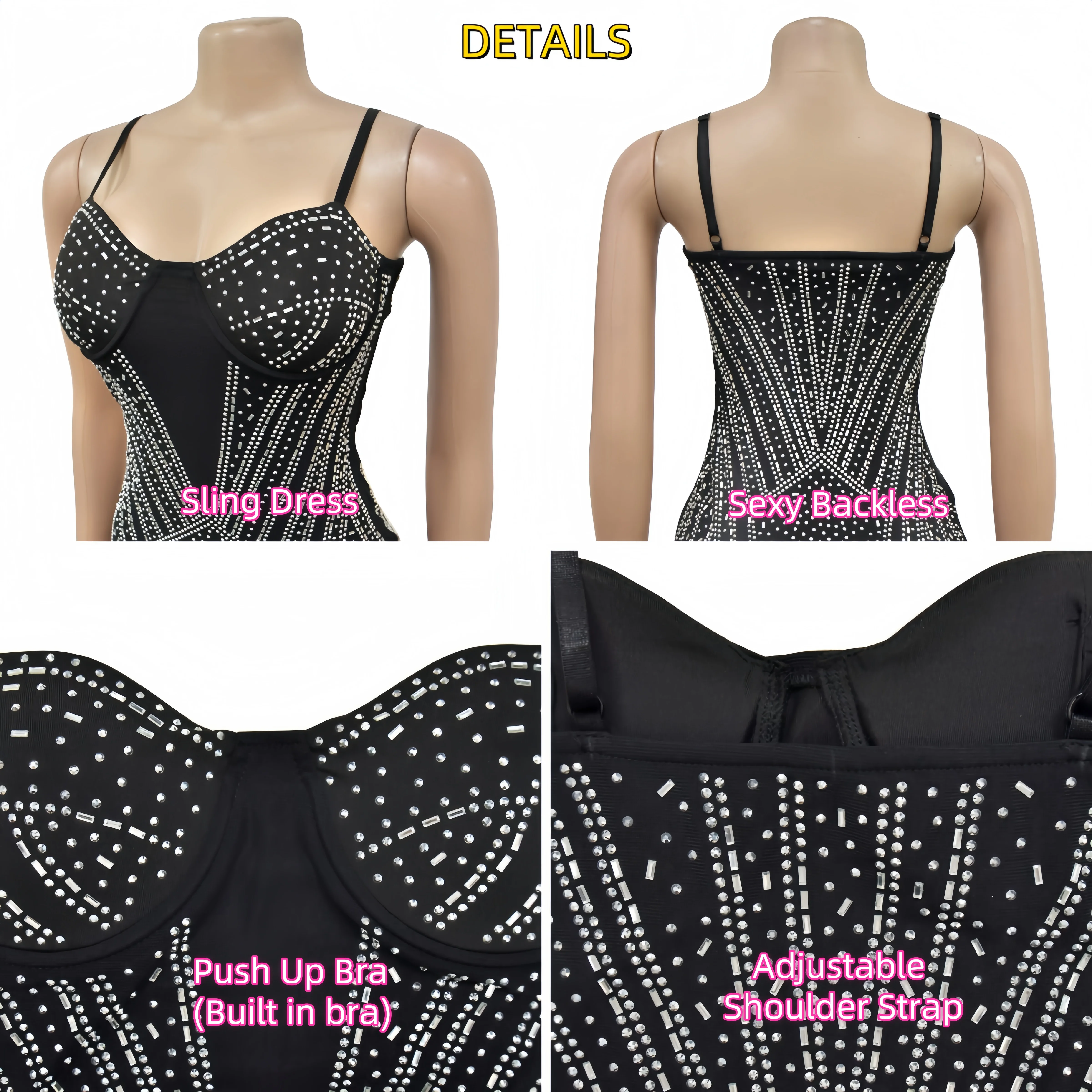Shiny Rhinestone Women Dress Spaghetti Strap Summer Mesh Lined Lady Evening Party Pencil Midi Dress