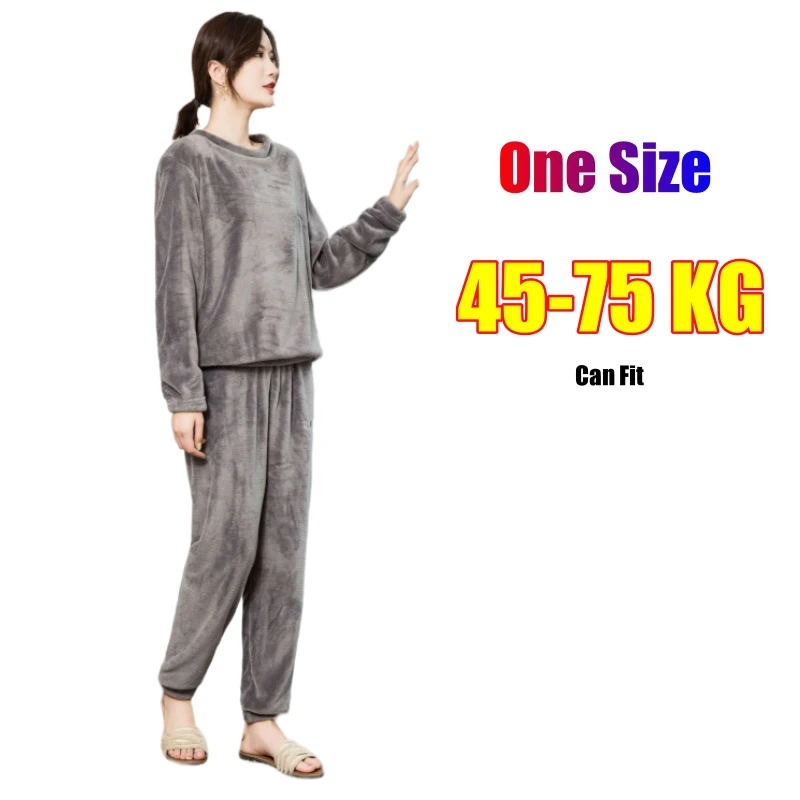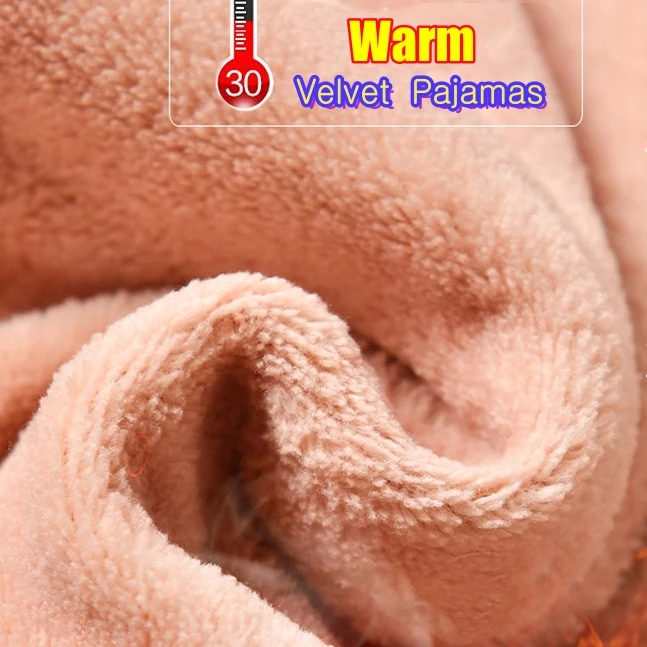 Women Autumn Winter Velvet Pajamas Long Sleeve O-neck Top + Elastic Waist Loose Pants Suit Lady Solid Warm Sleepwear