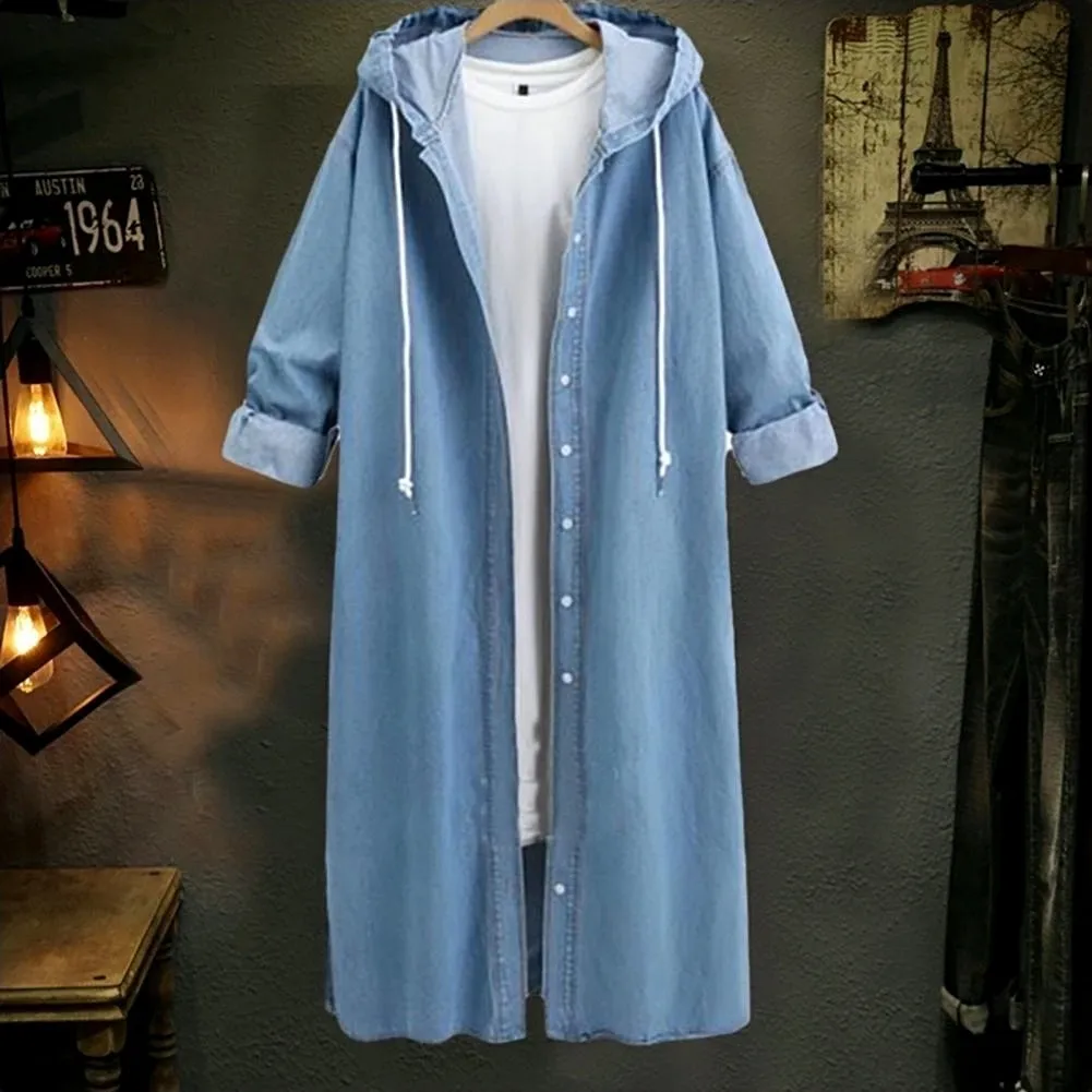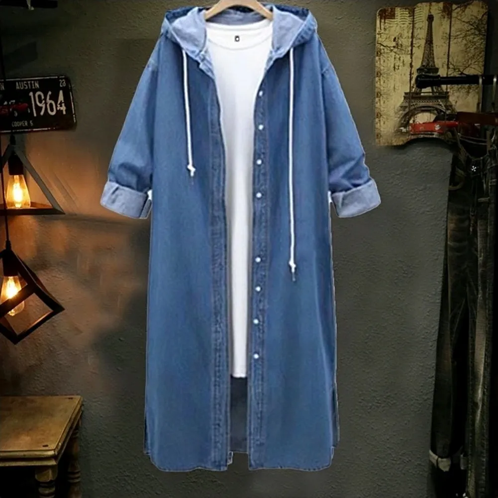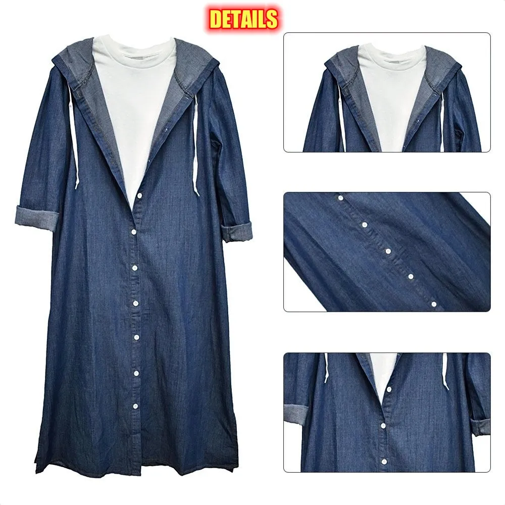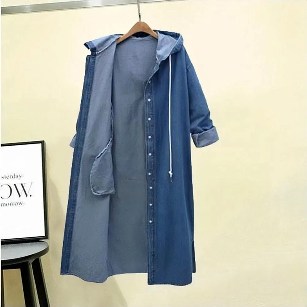 New Women Denim Long Coat Spring Autumn Single Breasted Hooded Casual Jacket