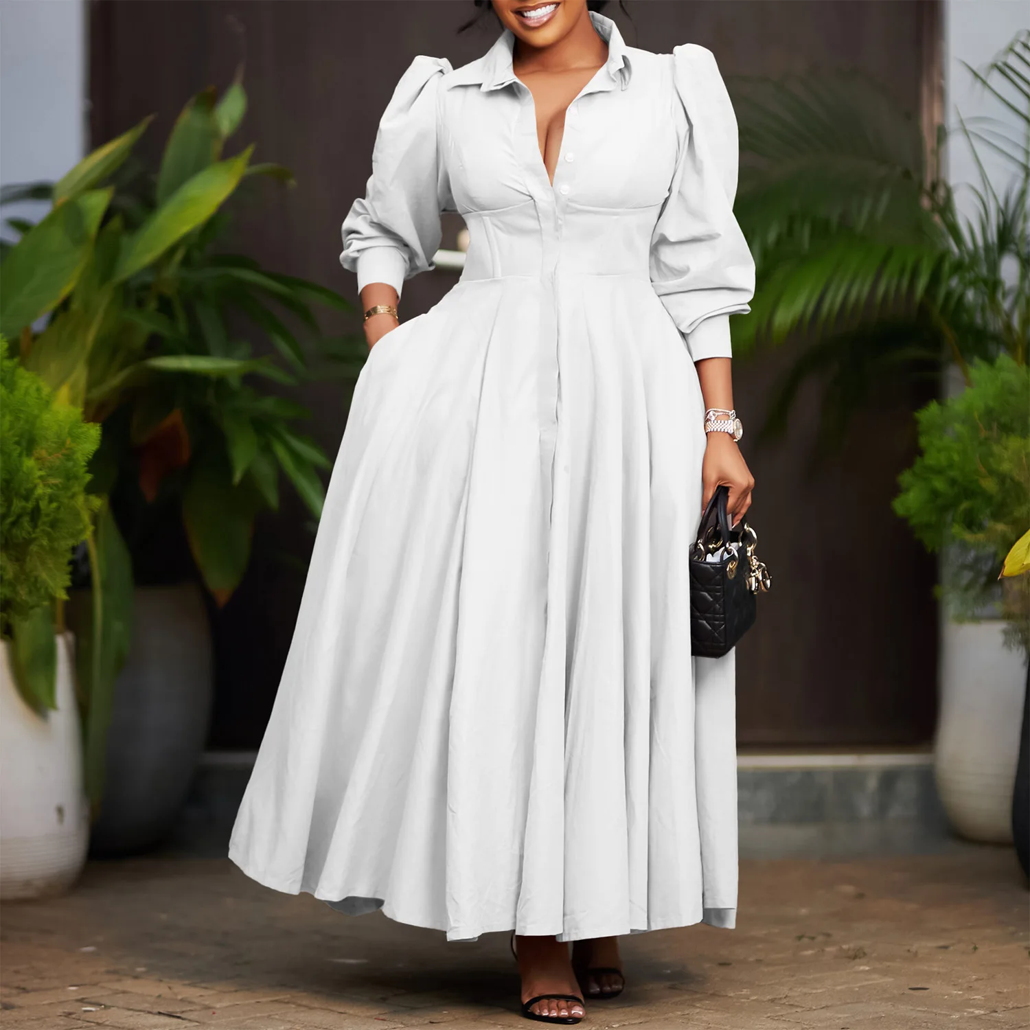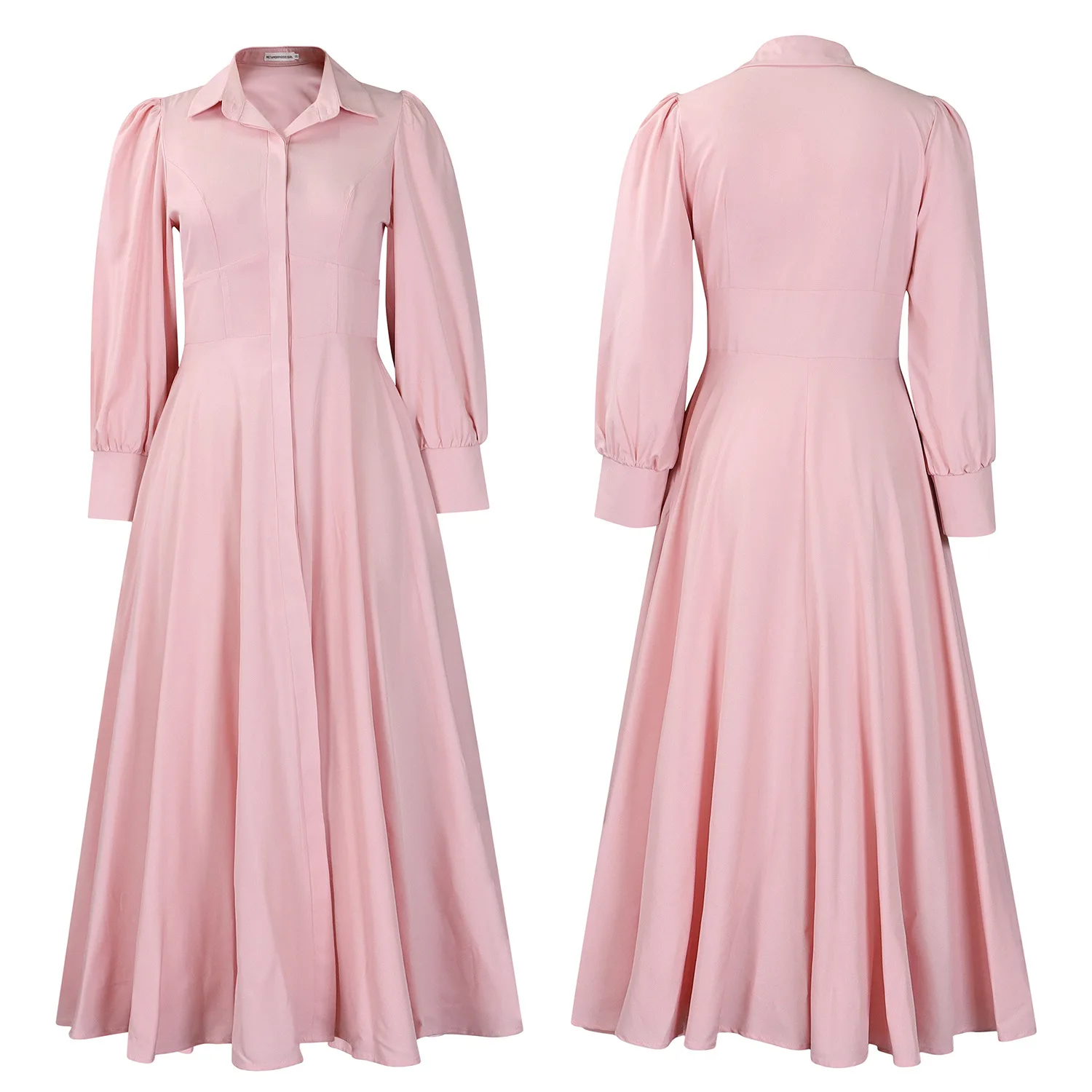 New Women Elegant Shirt Dress Long Sleeve Pocketed Lapel Collar Lady Spring Autumn Lady Casual Maxi Dresses
