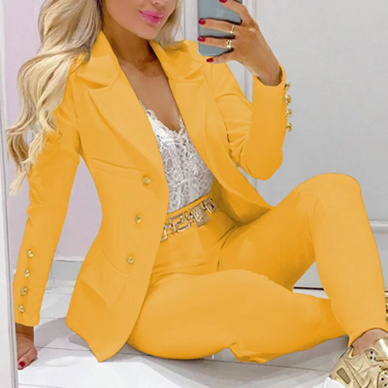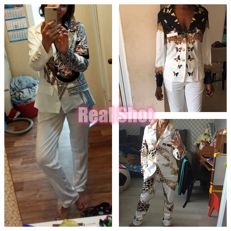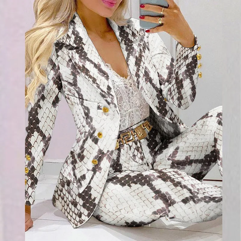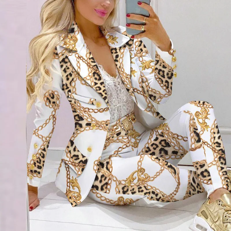 New Lady Formal Jacket & Trousers Suit Office Lady Outfits Autumn Two Pieces Set Women Fashion Print Blazer Top Pants Sets